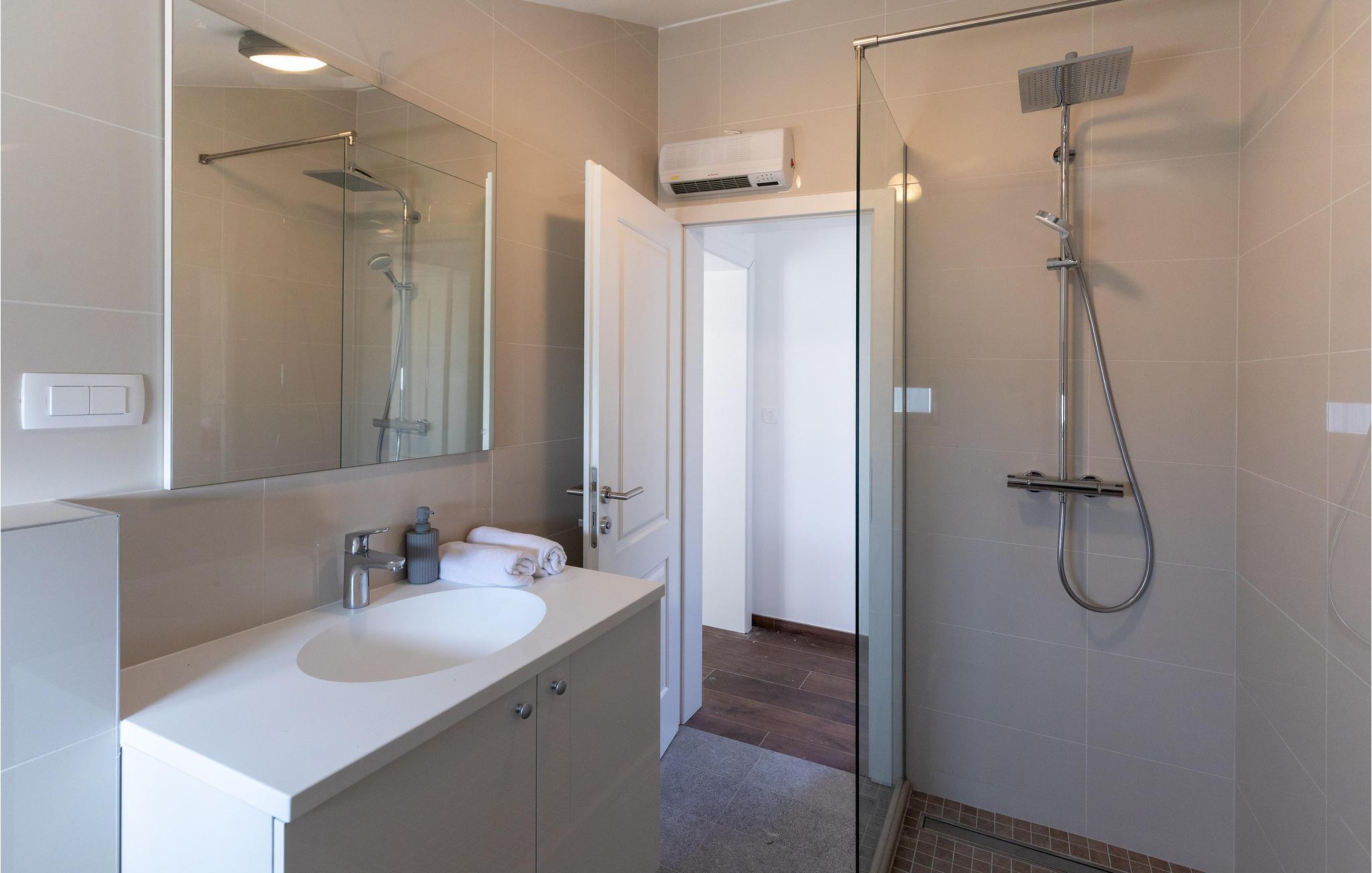 Das Haus befindet sich an einem Ort namens Kremena und erstreckt sich über insgesamt drei Etagen, die durch eine Innentreppe miteinander verbunden sind. Im Erdgeschoss, das mit der Terrasse und dem Pool verbunden ist, gibt es ein Wohnzimmer, Küche mit Esszimmer, WC und einen Fitnessraum. Im ersten Stock gibt es zwei Schlafzimmer, jedes mit eigenem Bad, zwei Schlafzimmer und ein gemeinschaftlich genutztes Bad befinden sich im zweiten Stock.