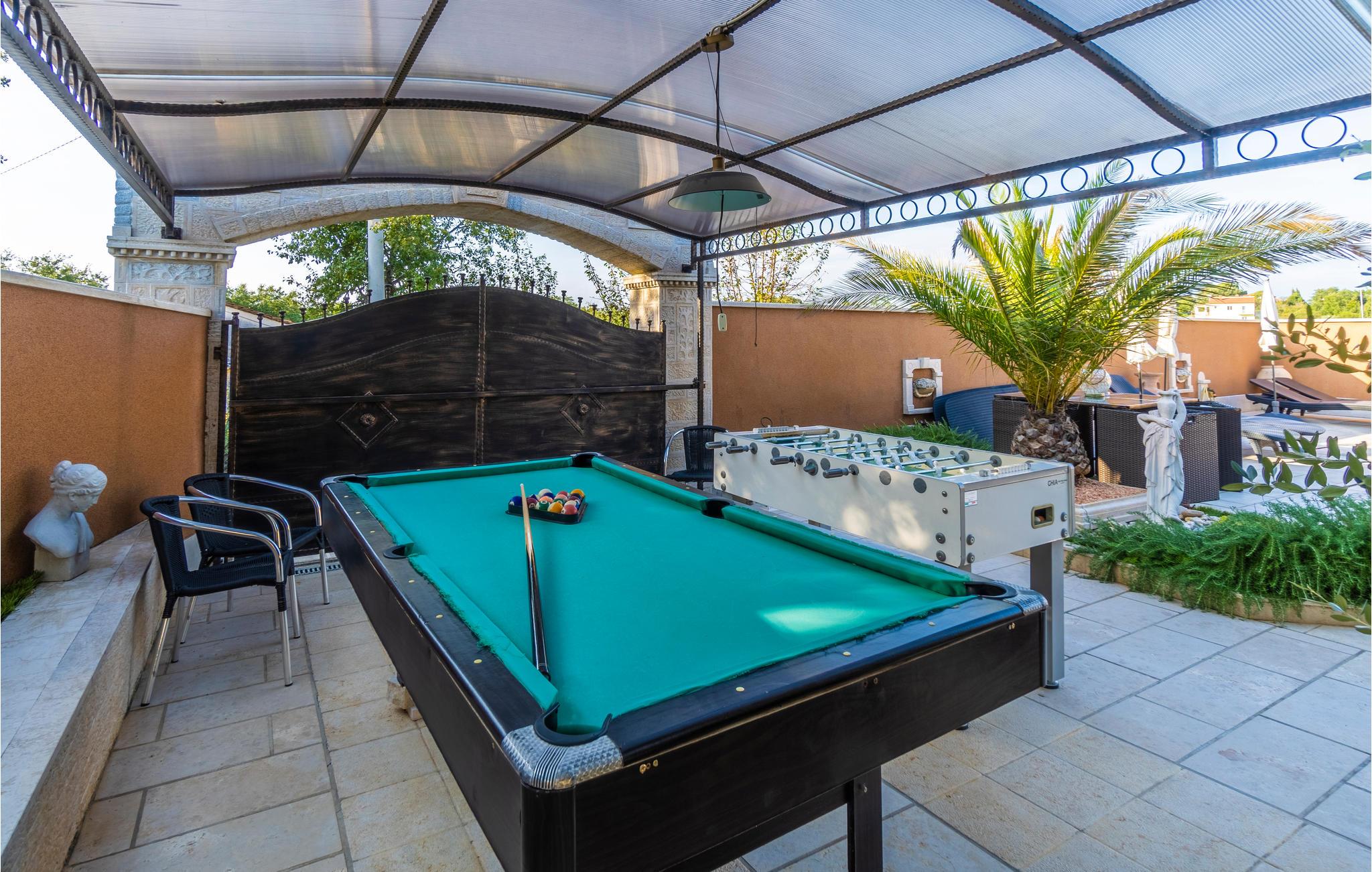 Willkommen zu einem Urlaub in diesen charmanten Ferienwohnungen in Kosinožici, das ca. 3 km entfernt im Landesinneren hinter Porec liegt. CIE654 und CIE827 sind im Erdgeschoss eines Familienhauses verteilt, während sich CIE496 im 1. Stock eines anderen Familienhauses befindet. Die Inneneinrichtung bietet jeden nötigen Komfort für den Urlaub. Der attraktive Außenbereich ist ein begehrter Platz um sich zu sonnen, ein erfrischendes Bad im gemeinsamen Pool zu nehmen oder bei einem herzhaften Grillessen auf der Terrasse den Abend ausklingen zu lassen. Auf dem Grundstück wohnt der Eigentümer, er vermietet eine weitere Ferienwohnung, mit den Gästen dieser Wohnung teilen Sie sich den Pool. Das beliebte Porec ist in 5 Autominuten erreichbar und bietet eine Fülle an Unterhaltungsmöglichkeiten sowie gute Restaurants. Zur gemeinsamen Nutzung stehen Billiard und Tischfußball zur Verfügung.