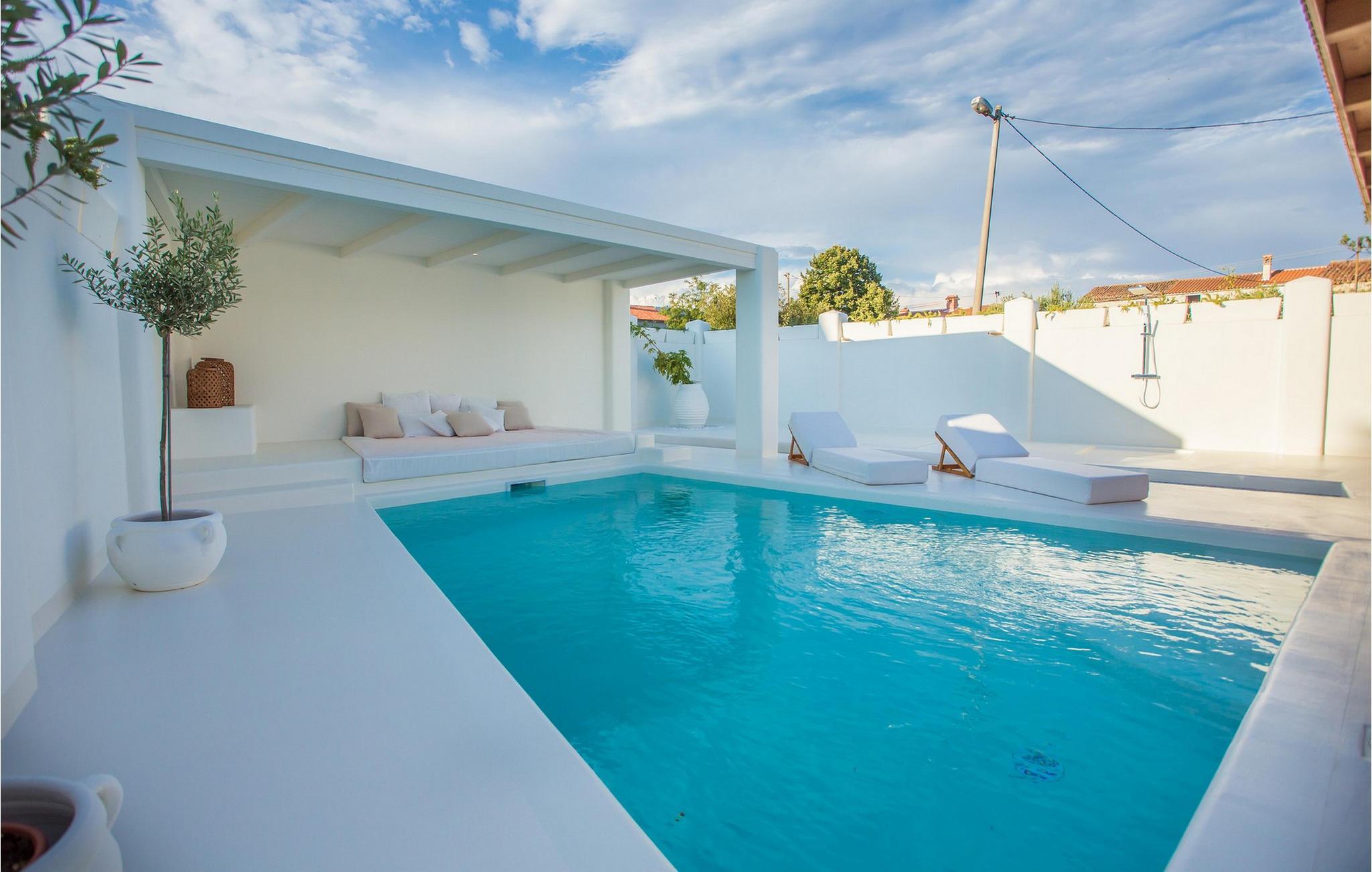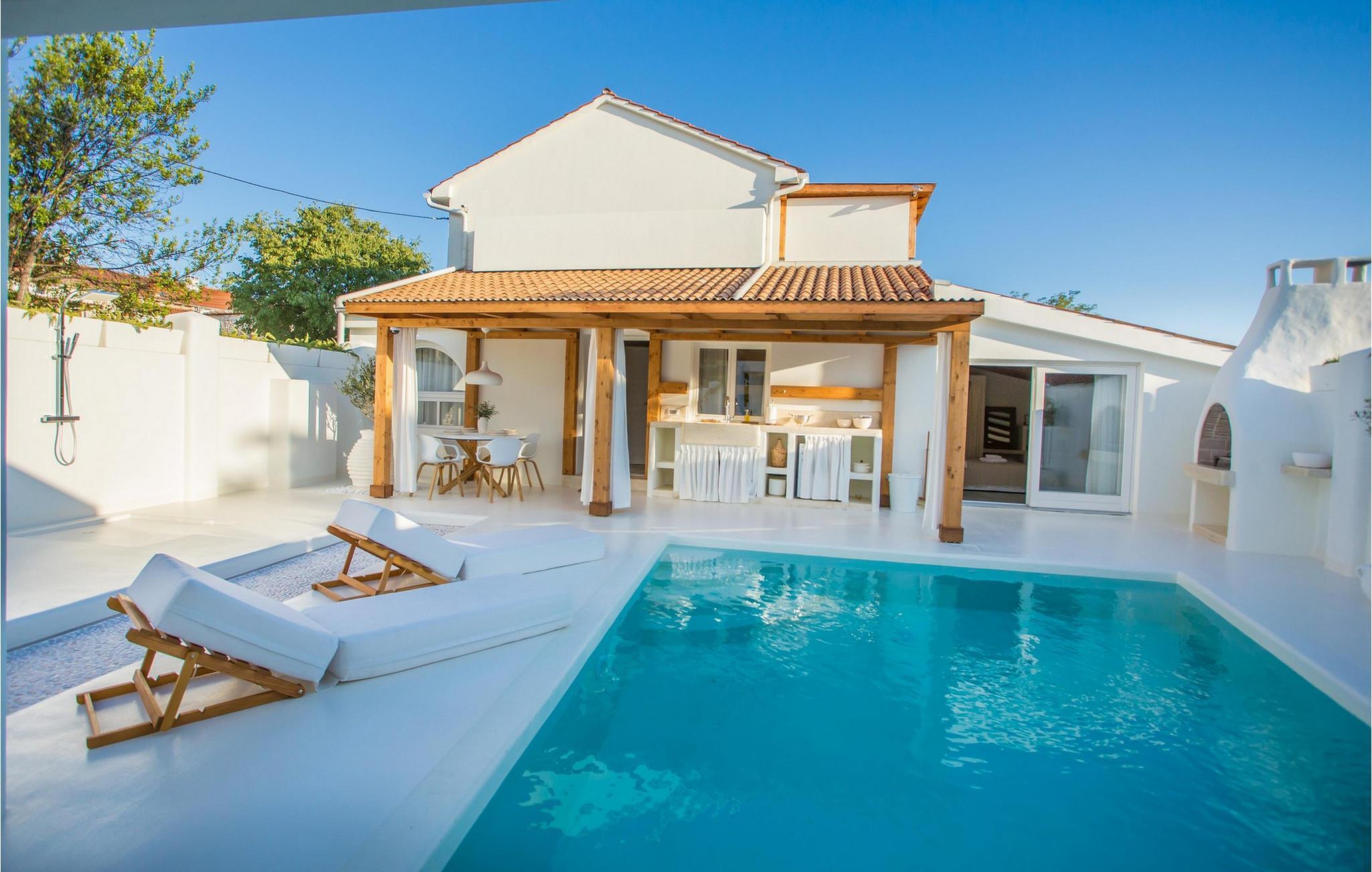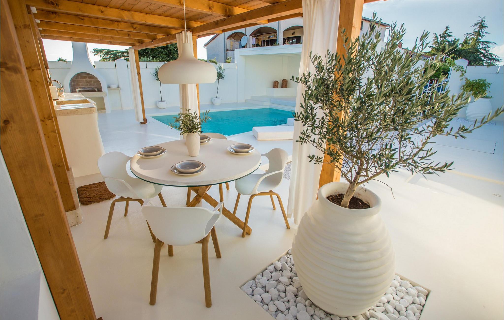 Die Villa San Biagio Heart befindet sich in Istrien, in der wunderschönen Stadt Porec, die Sie mit ihrem touristischen und gastronomischen Angebot begeistern wird. In dieser Villa werden Sie neue Energie tanken und sich dank des wunderschön dekorierten Innenraums wie ein König fühlen. Wenn Sie schon lange planen, dem hektischen Alltag zu entfliehen, ist jetzt die richtige Gelegenheit dazu und erfreuen Sie sich und Ihre Lieben mit einem Traumurlaub! Die Villa San Biagio Heart wurde 2022 im rustikalen Baustil erbaut und einige moderne Ergänzungen werden jeden Besucher begeistern! Die Villa bietet Platz für maximal 4 Personen, denen 62 m2 Wohnfläche zur Verfügung stehen. Sie werden bequem in 2 Schlafzimmern mit Doppelbetten untergebracht und es gibt auch ein normales Badezimmer mit Duschkabine. Das Schlafzimmer führt direkt auf die Außenterrasse, wo Sie im 27 m² großen und 1,4 m tiefen Pool schwimmen können. Am Pool stehen Liegestühle bereit und Sie können den Abend in geselliger Runde am überdachten Esstisch im Freien mit 4 Sitzplätzen verbringen. Sie können auch die Sommerküche im Freien nutzen und müssen Ihr Essen nicht in der Küche in der Villa zubereiten, sondern können Ihre Kochkünste auf dem Holzkohle- oder Holzgrill im Freien unter Beweis stellen. Gefallen wird Ihnen auch der spezielle Loungebereich zum Sitzen und Entspannen, der sich ebenfalls neben dem Pool befindet und über eine Außendusche verfügt. Im Erdgeschoss befindet sich eine moderne Küche, die mit allem ausgestattet ist, was Sie zum Zubereiten von Mahlzeiten benötigen, und direkt neben der Küche befindet sich ein Esszimmer mit einem Esstisch für 4 Personen. Zu den weiteren Einrichtungen, die Ihnen zur Verfügung stehen, gehören eine separate Toilette, eine Waschmaschine und ein Bügeleisen. Der Hof der Villa ist umzäunt und es gibt 1 Parkplatz draußen. Istrien war schon immer eine gute Wahl, um einen Jahresurlaub zu verbringen, und davon werden Sie dank des hervorragenden gastronomischen Angebots überzeugt sein, außerdem gibt es hier viele kulturelle und historische Sehenswürdigkeiten wie die Euphrasius-Basilika. Auch Städte wie Rovinj (35 km) und Pula (60 km) liegen in der Nähe, die ebenfalls einen Besuch wert sind. Wir glauben, dass Sie eine schöne Erfahrung machen und wundervolle Erinnerungen an Istrien und die Villa San Biagio Heart mitnehmen werden. *Neben der Villa San Biagio Heart befindet sich die Schwestervilla San Biago Star. Beide Villen werden als separate Einheiten vermietet, können aber auch als Villenkomplex gemietet werden, wenn eine größere Gruppe von Gästen (maximal 8) anwesend ist.