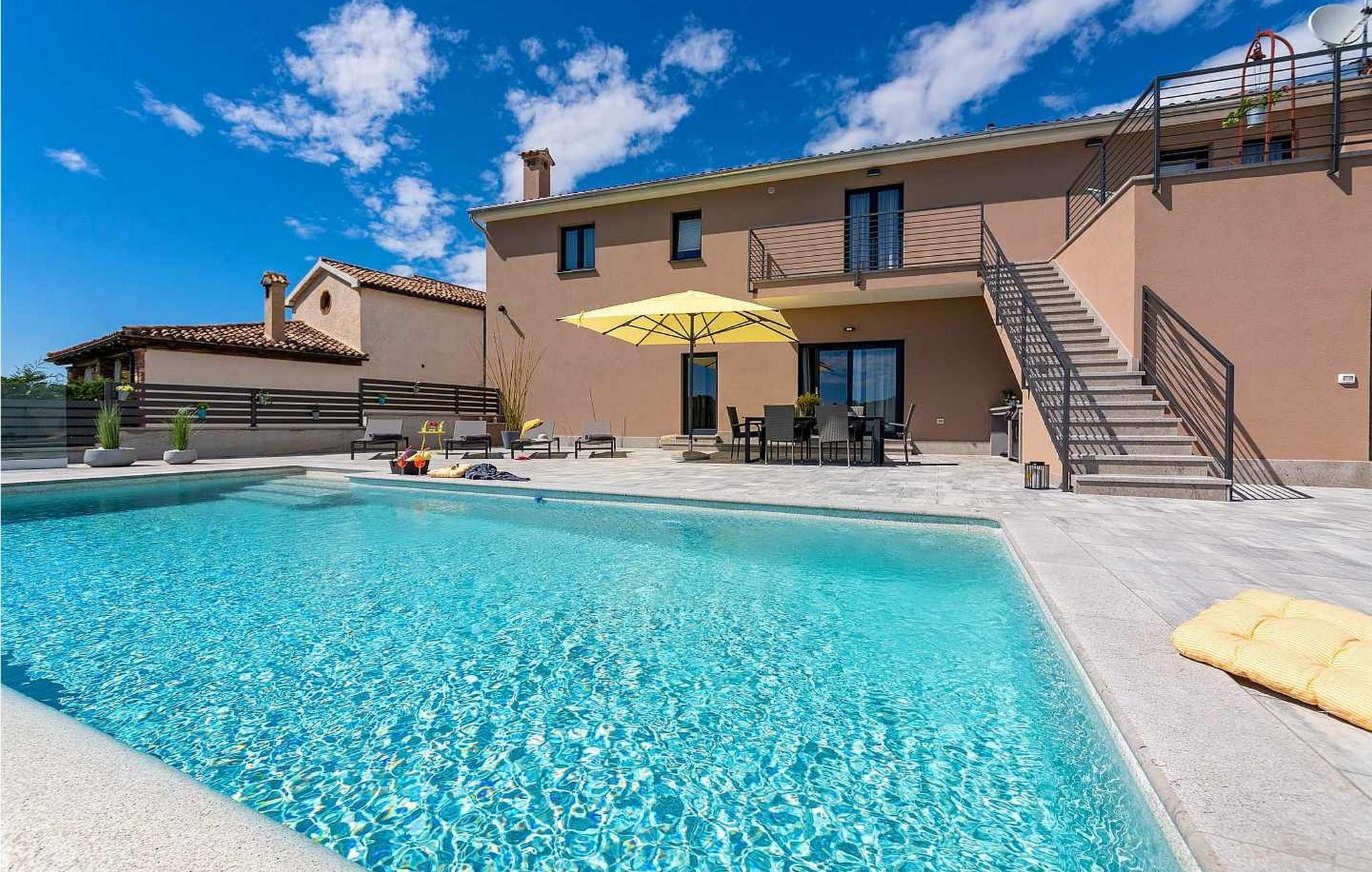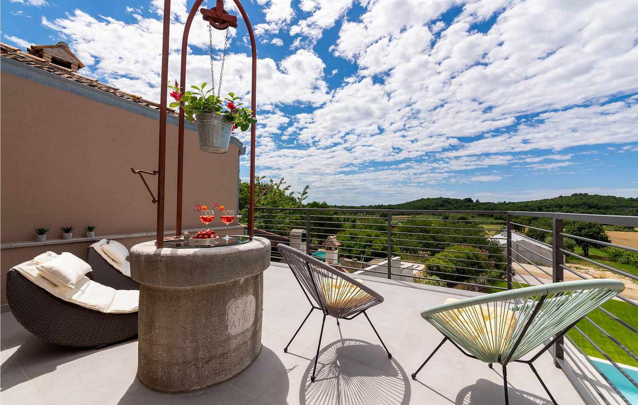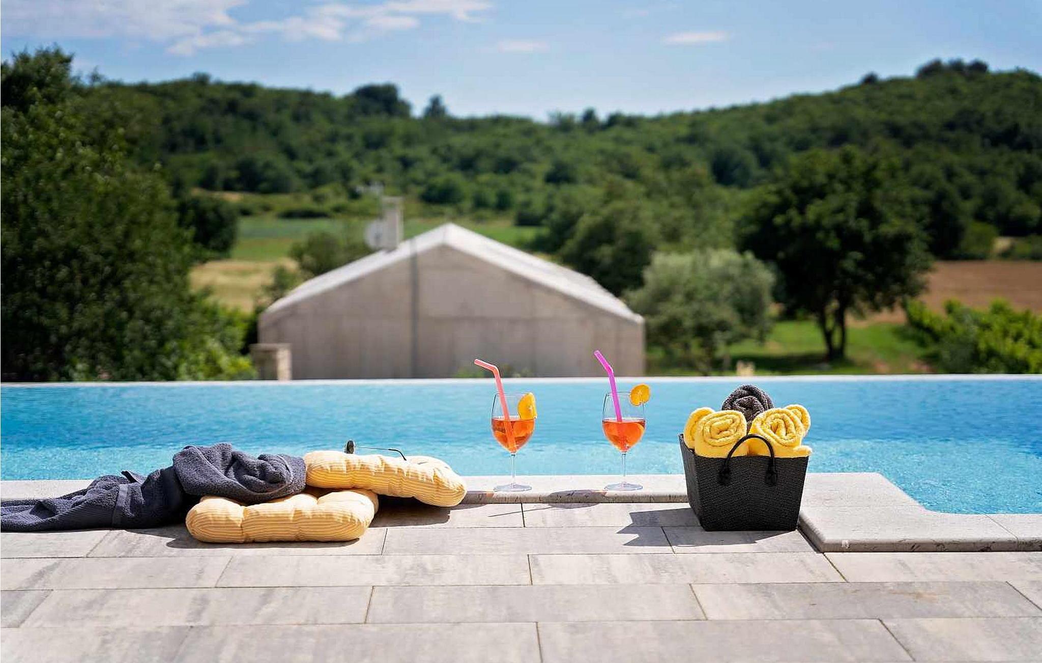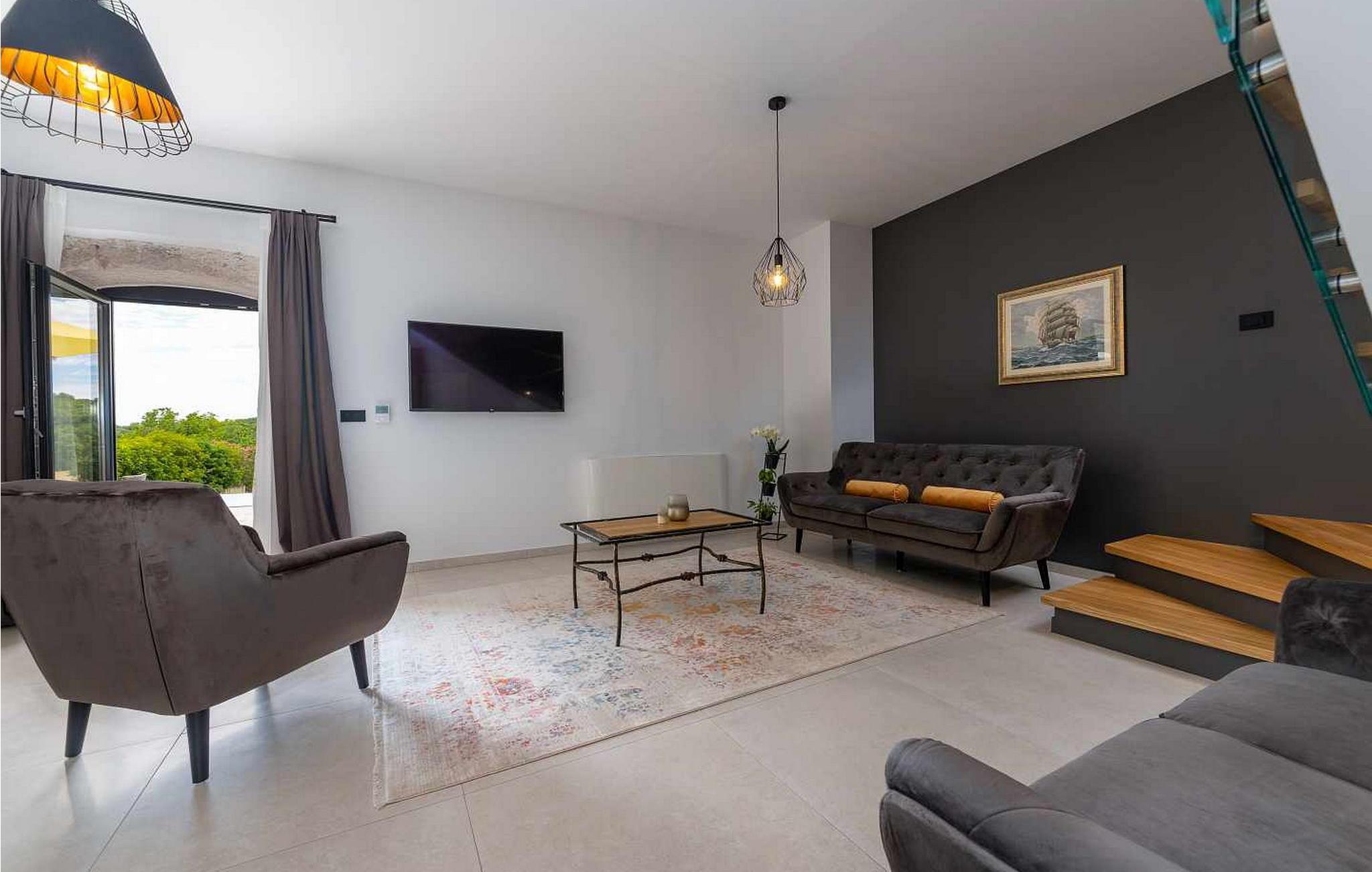 Willkommen in der beeindruckenden Villa Sunnyside am Rande des idyllischen Dorfes Dracevac. Dieses moderne Ferienhaus kombiniert zeitgemäßen Komfort mit einem Hauch von Geschichte und schafft so eine einzigartige Atmosphäre. Der aufwendig gestaltete Weinkeller, der aus einer alten Zisterne entstand, verleiht der Unterkunft ihren besonderen Charme. Auf dem privaten Grundstück genießen Sie Ruhe und Entspannung. Tauchen Sie in den Infinity-Pool ein, sonnen Sie sich auf der großzügigen Liegefläche oder verbringen Sie gesellige Stunden am Grill. Der Essbereich im Freien lädt Sie zu kulinarischen Abenden unter dem istrischen Sternenhimmel ein.