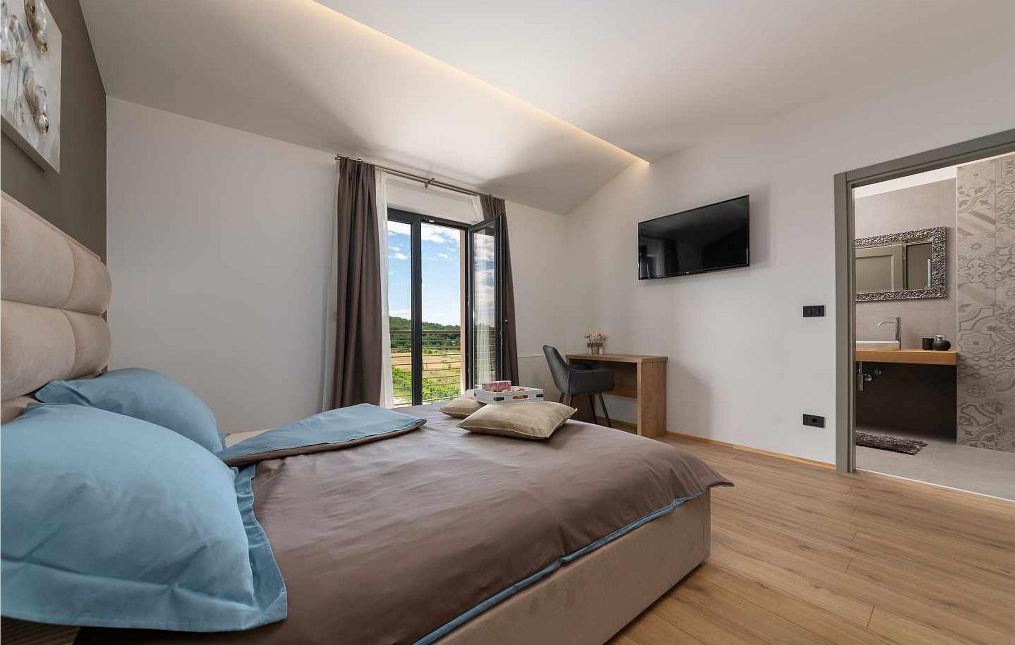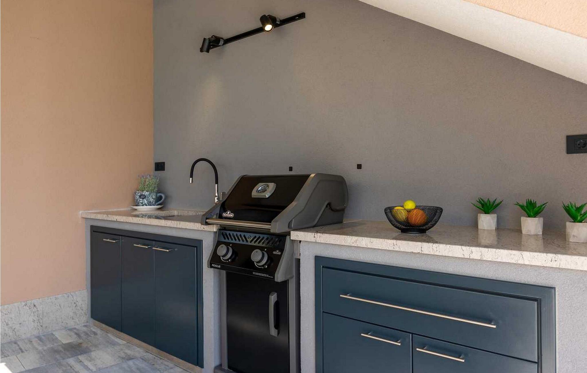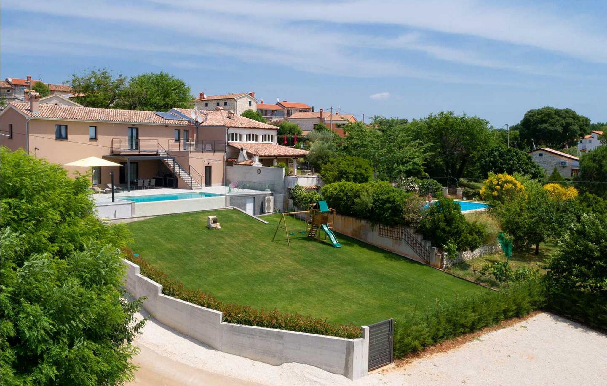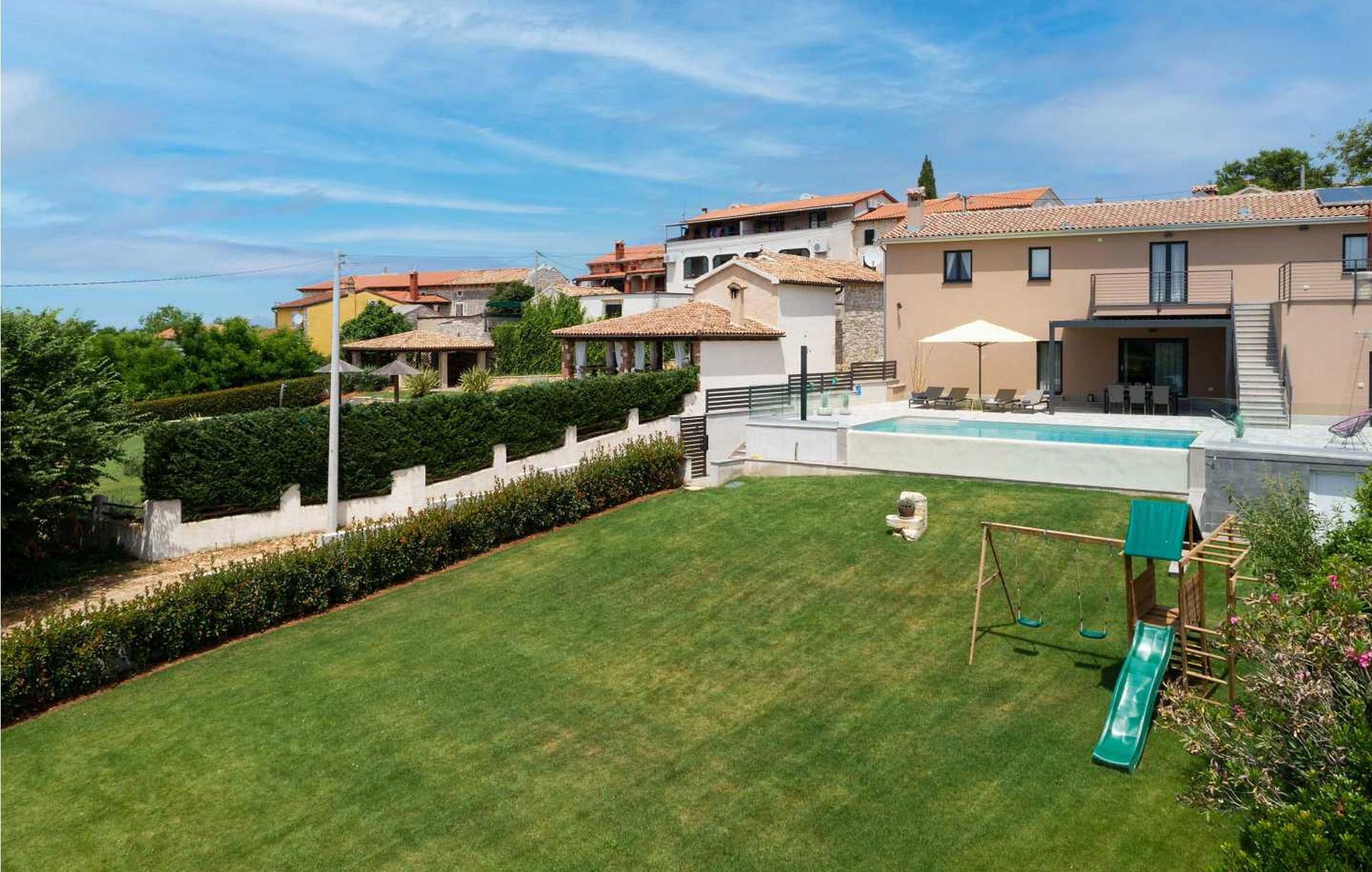 Willkommen in der beeindruckenden Villa Sunnyside am Rande des idyllischen Dorfes Dracevac. Dieses moderne Ferienhaus kombiniert zeitgemäßen Komfort mit einem Hauch von Geschichte und schafft so eine einzigartige Atmosphäre. Der aufwendig gestaltete Weinkeller, der aus einer alten Zisterne entstand, verleiht der Unterkunft ihren besonderen Charme. Auf dem privaten Grundstück genießen Sie Ruhe und Entspannung. Tauchen Sie in den Infinity-Pool ein, sonnen Sie sich auf der großzügigen Liegefläche oder verbringen Sie gesellige Stunden am Grill. Der Essbereich im Freien lädt Sie zu kulinarischen Abenden unter dem istrischen Sternenhimmel ein.
