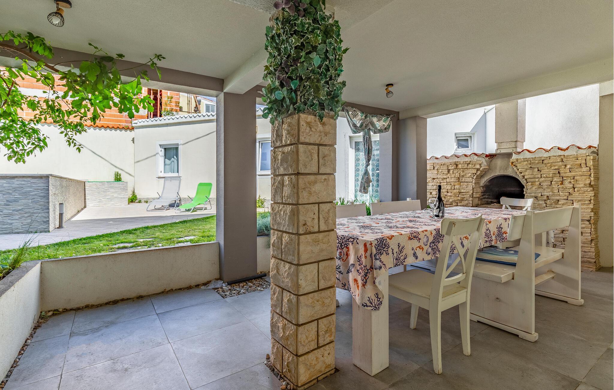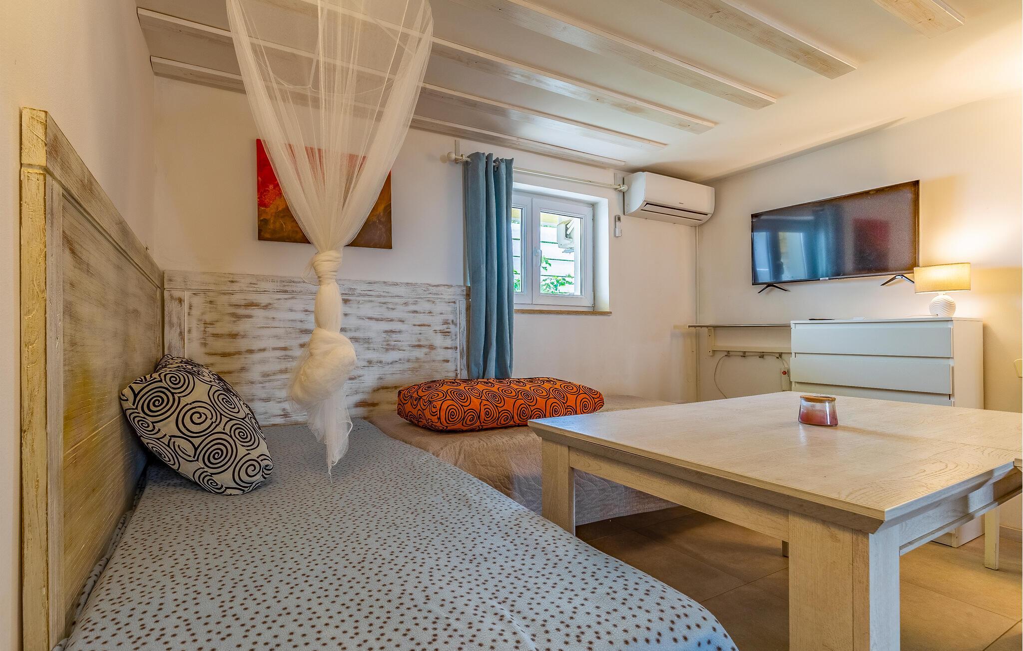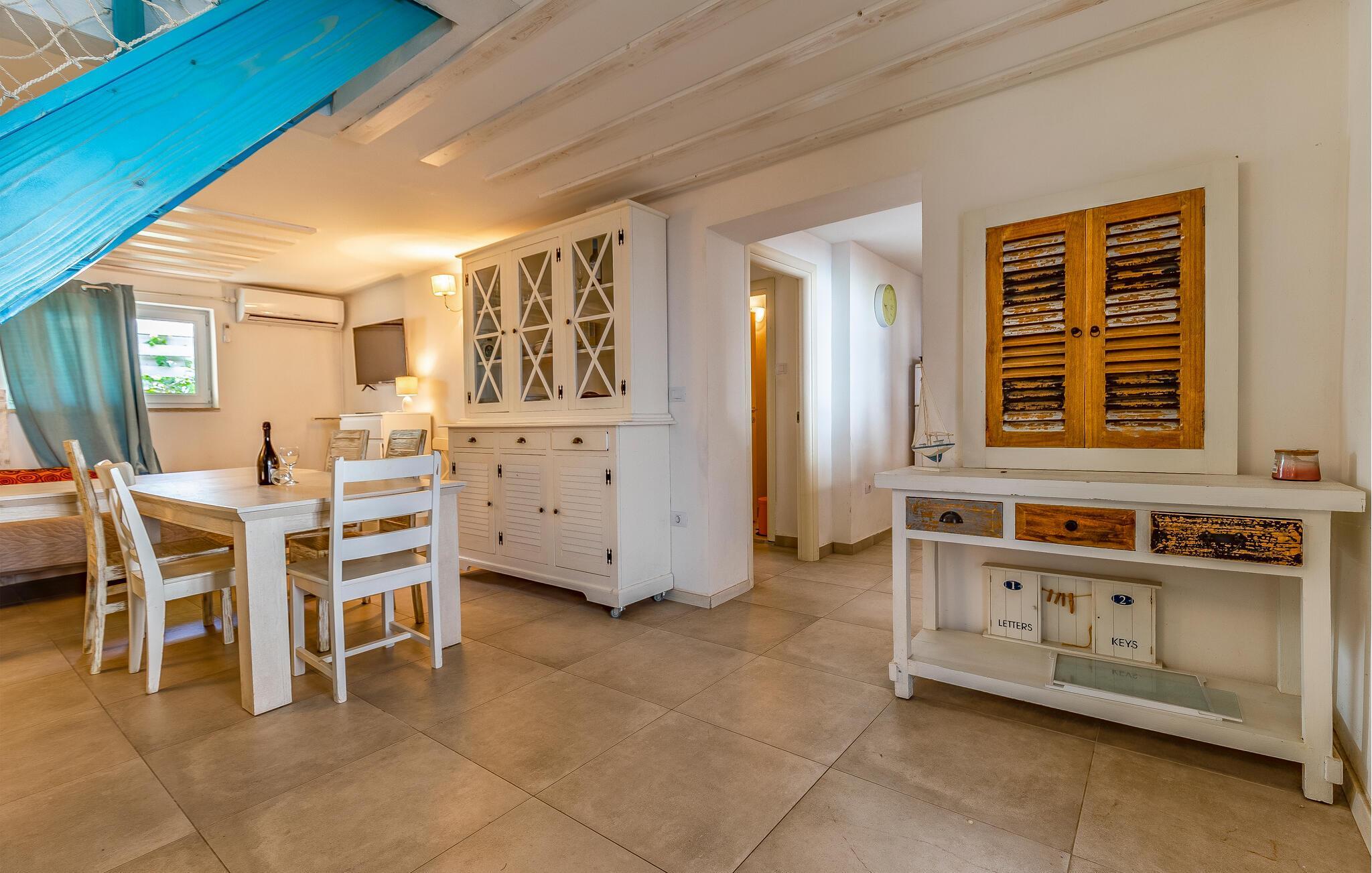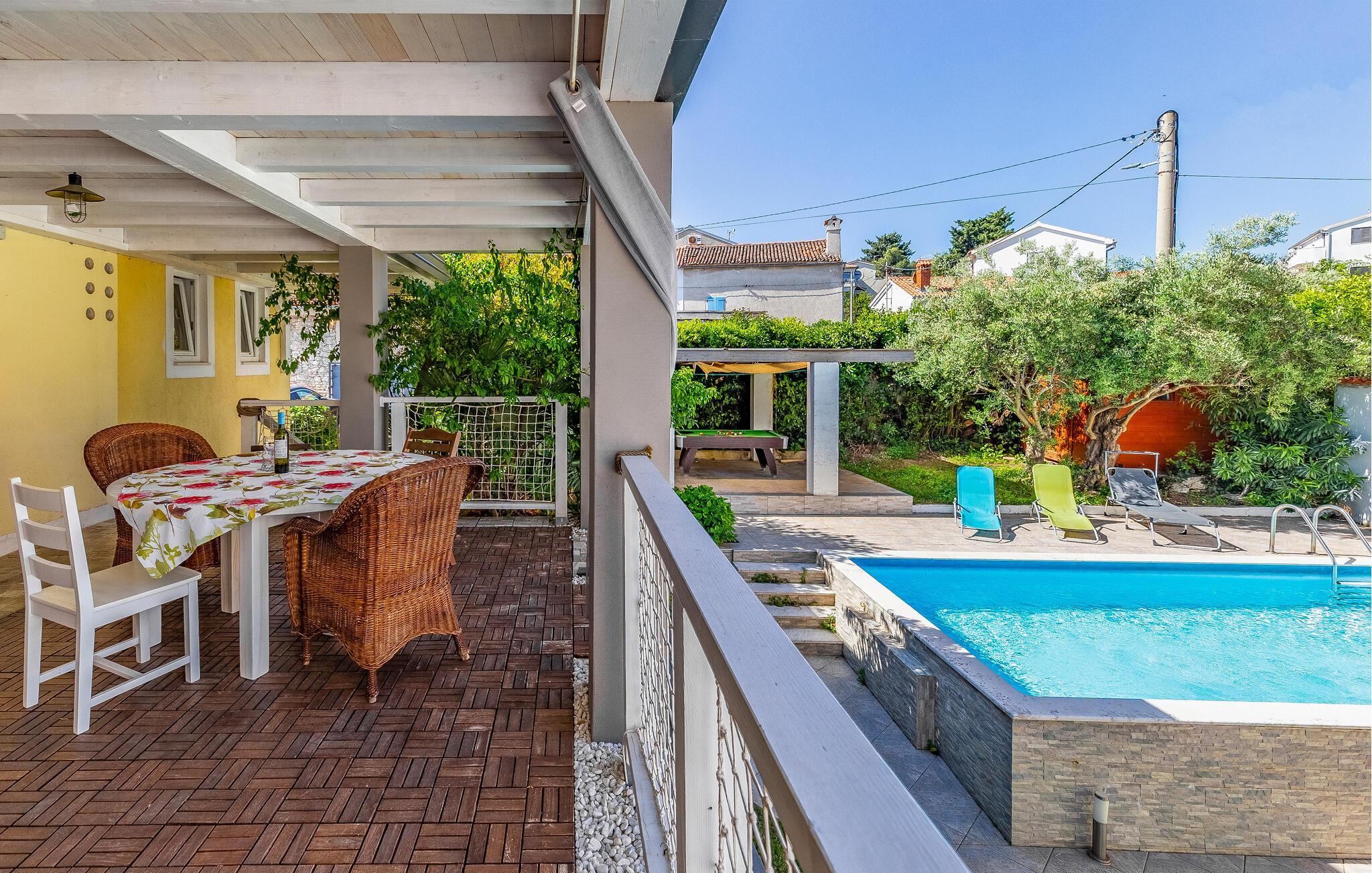 Freuen Sie sich mit Ihren Lieben auf Ihren Aufenthalt in diesem gemütlichen Ferienhaus, das Ihnen Spaß, Unterhaltung und Erholung verspricht. Ganz im Süden Istriens können Sie das gut ausgestattete Haus zu Ihrem zweiten Zuhause machen. Erkunden Sie die beiden Etagen und das Nebengebäude, wo Sie sich ausruhen und das Beisammensein genießen können. Aber auch die die Terrassen mit vielen Sitzgelegenheiten, Billardtisch und Pool im Garten fordern zu vielen Stunden im Freien ein. Genießen Sie das charmante Flair und entspannen sich.