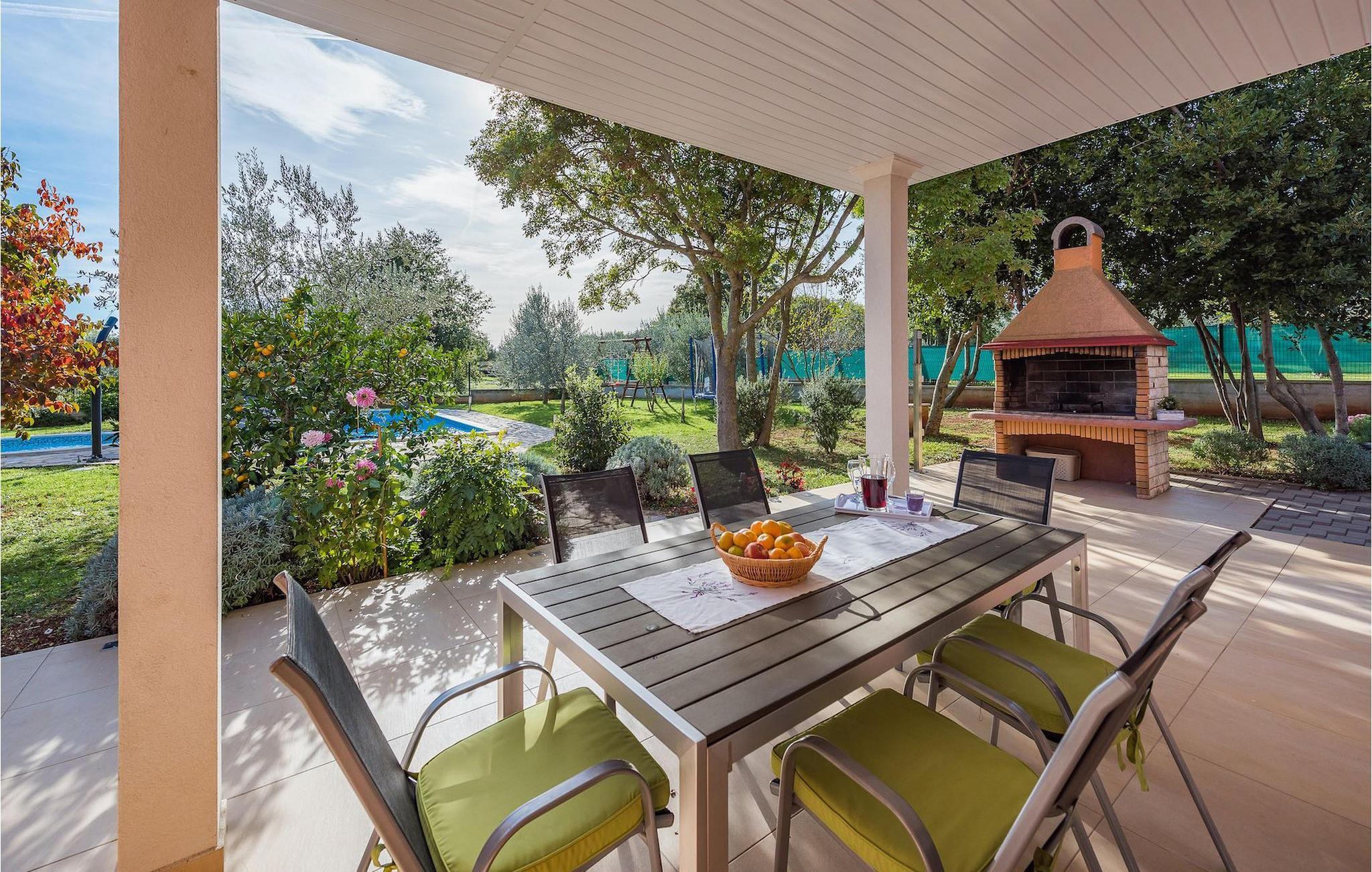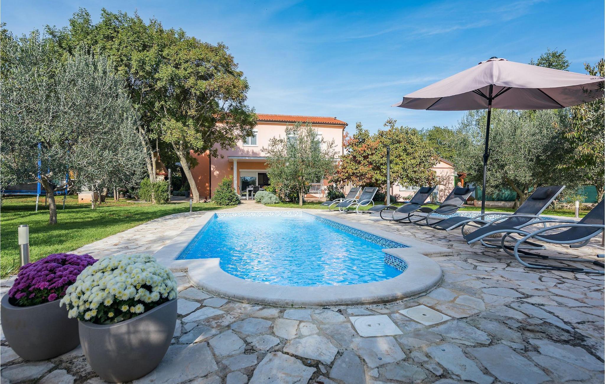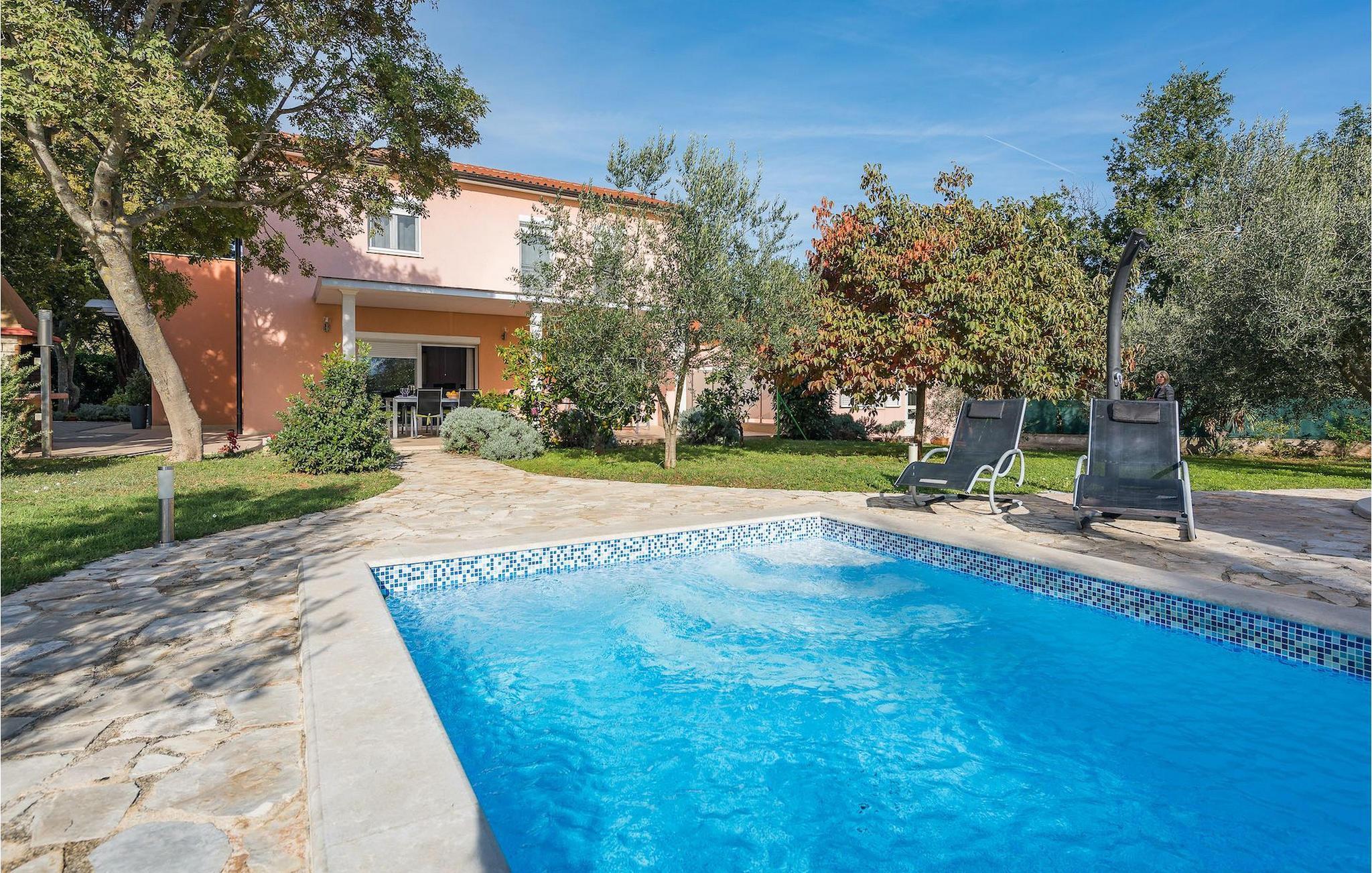 Im Erdgeschoss befindet sich ein heller und offener Wohn- und Essbereich mit Zugang zur Terrasse, auf der Sie den Ausblick ins Grün des wunderschönen mediterranen Gartens genießen können. Ein Badezimmer vervollständigt das Erdgeschoss. Treppen führen Sie in den ersten Stock, wo sich das zweite Badezimmer und drei Schlafzimmer befinden. Dort können bis zu sechs Personen zur Ruhe kommen. Für Abkühlung an Sommertagen sorgt ein privater Pool mir separatem Becken, das über eine Massagefunktion verfügt. Auf Liegestühlen finden Sie im natürlichen Schatten der Olivenbäume Entspannung. Kinder werden sich sicherlich über die große Schaukel freuen, aber auch Erwachsene dürften an der Hollywood-Schaukel auf der Terrasse Gefallen finden. Können Sie sich vorstellen, dort mit einem Buch und einem schönen Getränk den Urlaub zu genießen?Die Villa befindet sich im Ort Pavicini, gleich ausserhalb von Duga Uvala. Dies ist eine geschützte Bucht an der Ostküste von Istrien zwischen den grösseren Städten Labin und Pula.