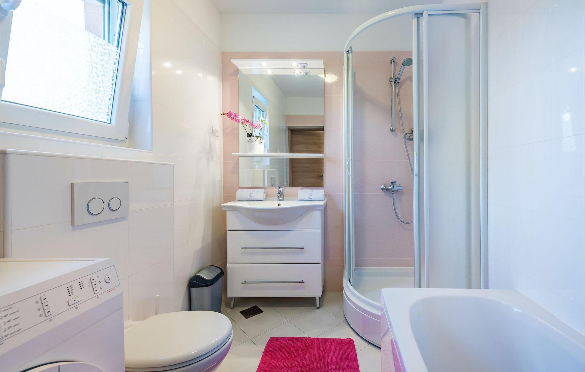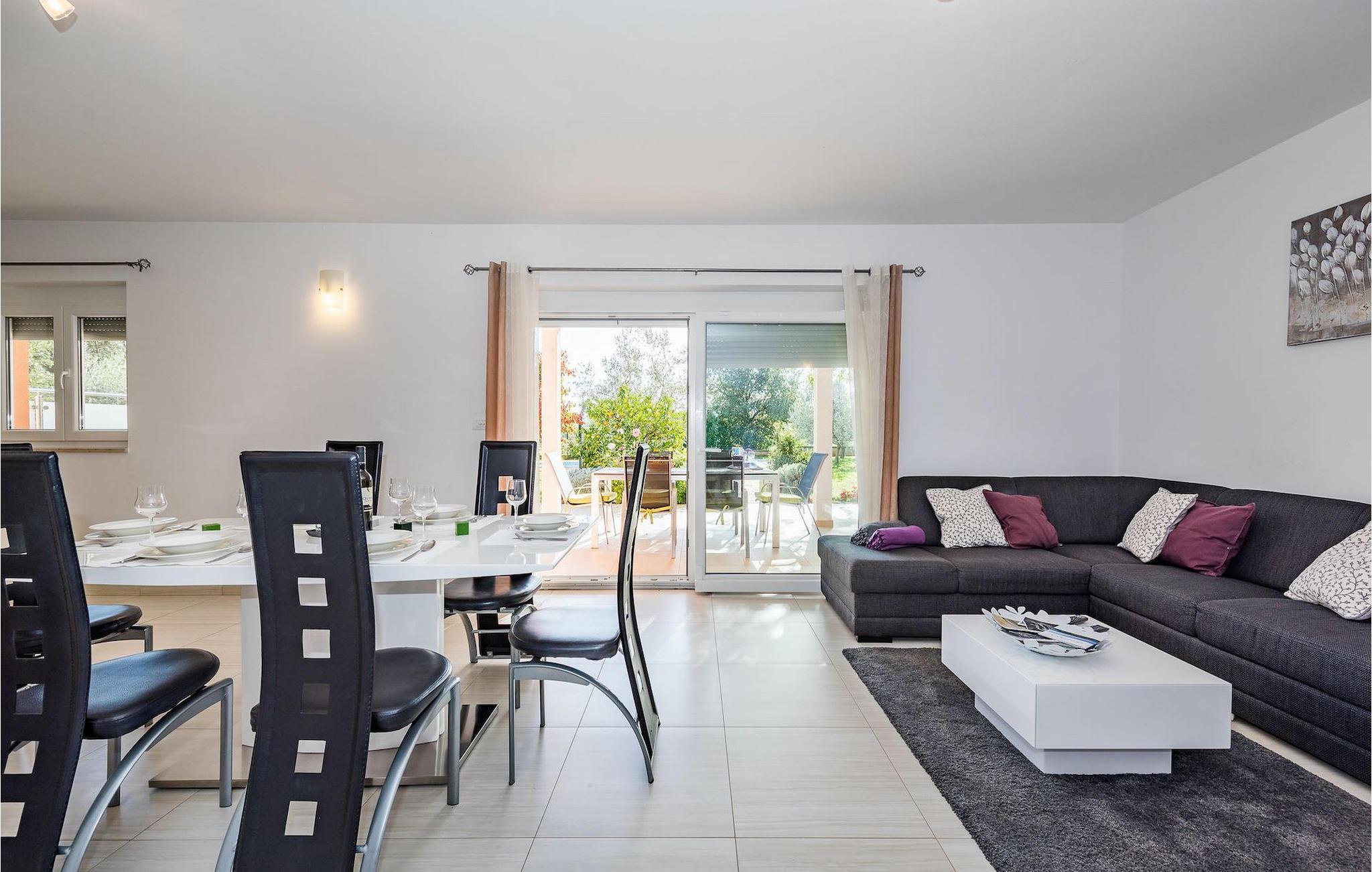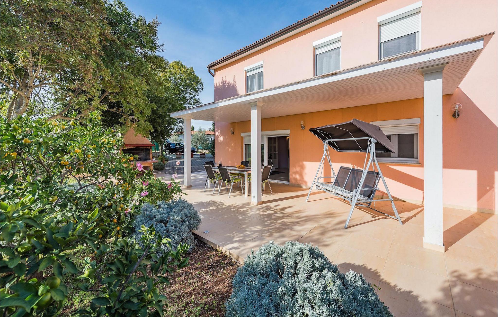 Im Erdgeschoss befindet sich ein heller und offener Wohn- und Essbereich mit Zugang zur Terrasse, auf der Sie den Ausblick ins Grün des wunderschönen mediterranen Gartens genießen können. Ein Badezimmer vervollständigt das Erdgeschoss. Treppen führen Sie in den ersten Stock, wo sich das zweite Badezimmer und drei Schlafzimmer befinden. Dort können bis zu sechs Personen zur Ruhe kommen. Für Abkühlung an Sommertagen sorgt ein privater Pool mir separatem Becken, das über eine Massagefunktion verfügt. Auf Liegestühlen finden Sie im natürlichen Schatten der Olivenbäume Entspannung. Kinder werden sich sicherlich über die große Schaukel freuen, aber auch Erwachsene dürften an der Hollywood-Schaukel auf der Terrasse Gefallen finden. Können Sie sich vorstellen, dort mit einem Buch und einem schönen Getränk den Urlaub zu genießen?Die Villa befindet sich im Ort Pavicini, gleich ausserhalb von Duga Uvala. Dies ist eine geschützte Bucht an der Ostküste von Istrien zwischen den grösseren Städten Labin und Pula.