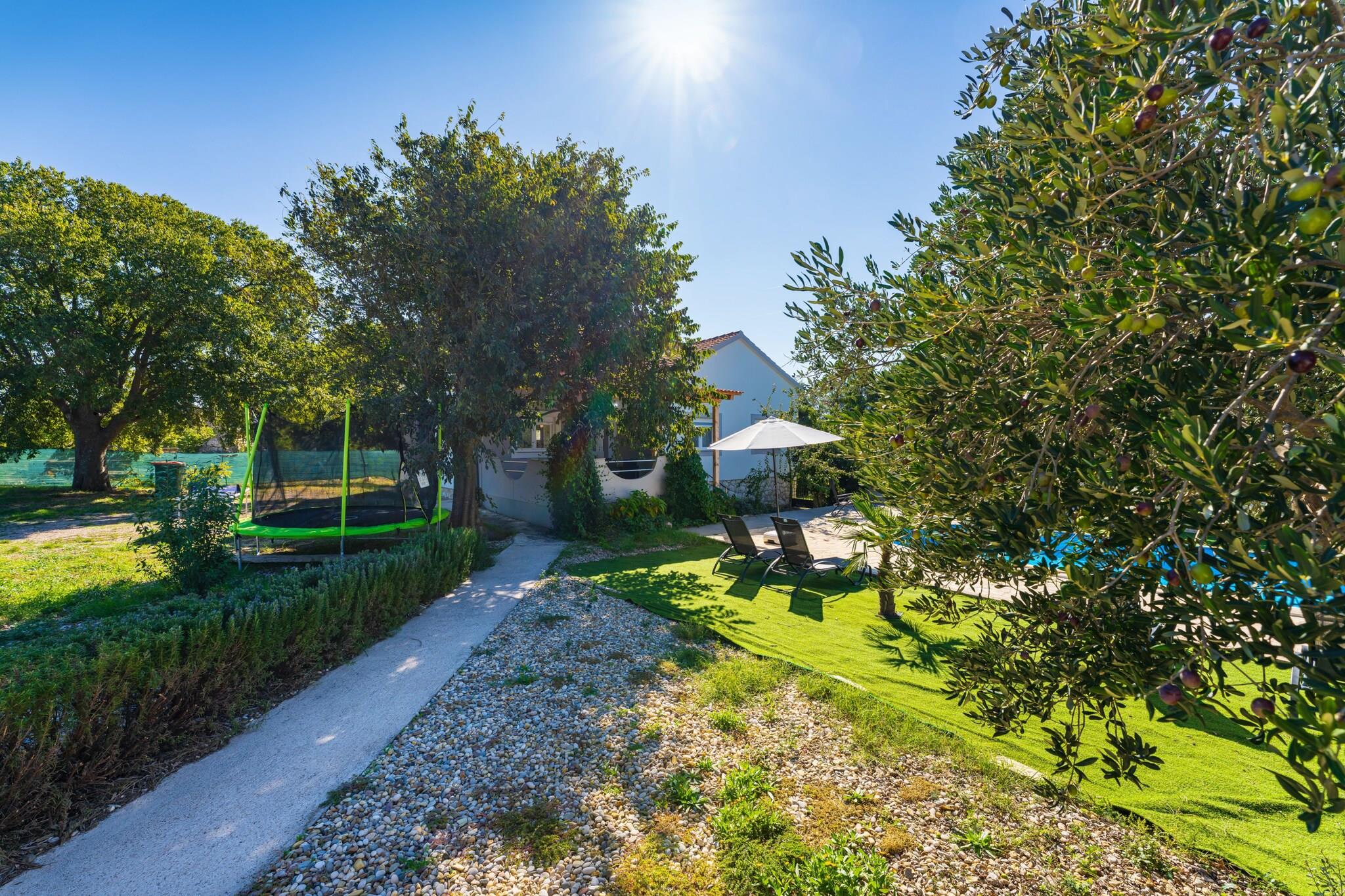 Ferienhaus Emily ist eine wunderbare, neu renovierte Immobilie, die in dem friedlichen Dorf Rastevic im Hinterland von Zadar, genannt Ravni Kotari, liegt. Diese Region ist berühmt für ihren hervorragenden Wein, Steinproduktion und Landwirtschaft. Mit 3 schönen Schlafzimmern und 2 Badezimmern kann Ihr Ferienhaus bequem 2 Familien oder eine Gruppe von bis zu 8 Gästen beherbergen. Während Sie viele Tage neben Ihrem wunderbaren privaten Swimmingpool entspannen können, befinden sich die nächsten Strände in weniger als 20 km Entfernung. Ferienhaus Emily besteht aus einem geräumigen Wohn-/Essbereich, 3 Schlafzimmern, 2 Badezimmern, einer voll ausgestatteten offenen Küche und einer charmanten überdachten Terrasse mit Blick auf den Pool, ideal zum Genießen Ihrer Mahlzeiten im Freien. Der Außenbereich bietet Ihnen Ihren privaten Swimmingpool, einen Whirlpool, eine Solardusche, zahlreiche Sonnenliegen, Sonnenschirme und eine Steingrillanlage. Außerdem können Sie Tischtennis spielen und es gibt ein Trampolin für die Kleinen. Bei einem Besuch von My Dalmatia waren wir besonders von der Gastfreundschaft Ihrer Gastgeber beeindruckt, der nebenan wohnt und Ihnen gerne frisches Obst und Gemüse aus seinem Garten bereitstellt. Ihre Unterkunft genießt eine günstige Lage, da sie sich in einer ruhigen Gegend abseits der Touristenmassen befindet, aber dennoch nah genug am Meer und vielen sehenswerten Orten wie der Klicevica-Festung, die am Rande von Rastevic liegt. Die nächstgelegenen Strände befinden sich in Biograd, 20 km entfernt. Der Naturpark Vrana-See liegt weniger als 15 km von Ihrem Ferienhaus entfernt, während der Nationalpark Krka in einer kurzen halben Stunde Fahrt erreicht werden kann. Die nächste Autobahnausfahrt befindet sich nur 6 km entfernt und bietet einen einfachen Zugang zu beliebten Touristenorten wie Šibenik und Split. Dies macht den Standort perfekt, um die nahe Küste und den Rest dieser erstaunlichen Region zu erkunden.