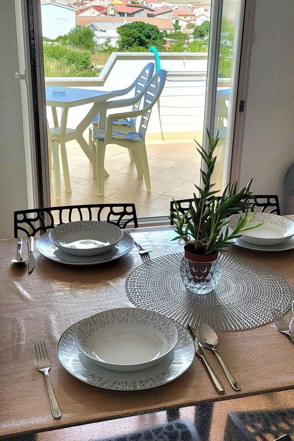 Vom Balkon mit Gartenmöbeln genießen Sie einen wunderbaren Blick auf das Meer und den Velebit Berg.