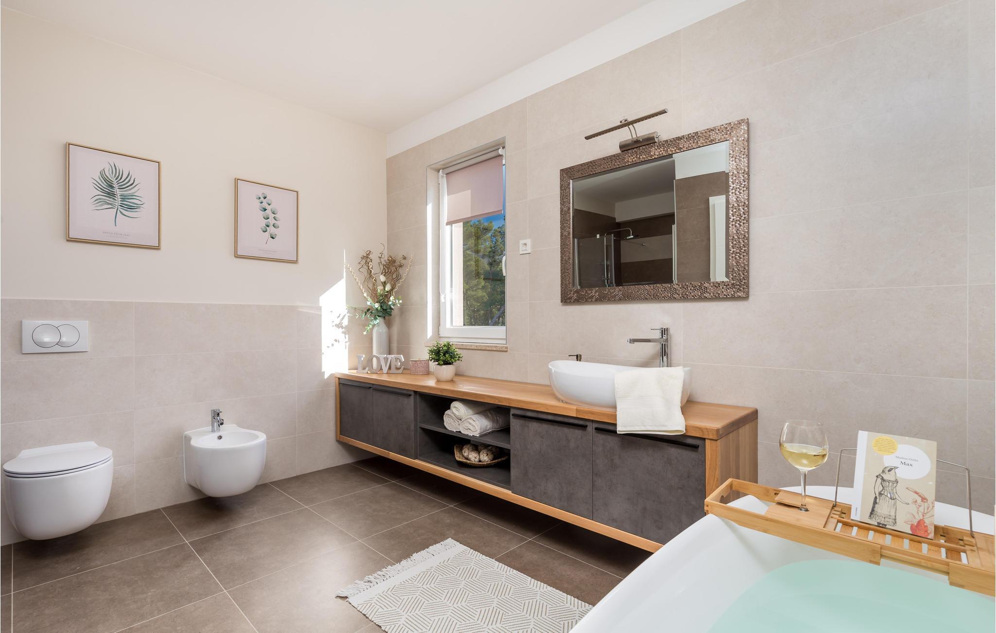 Badezimmer 10m2 (nr. 1) - WC. Warmes und kaltes Wasser. Dusche und Badewanne