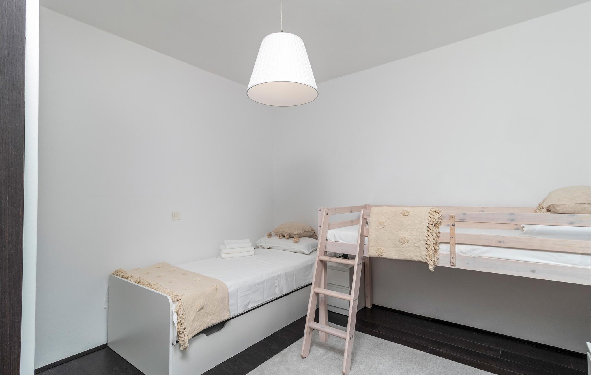 Schlafzimmer 14m2 (nr. 1) - 1 Schlafmöglichkeit. (Einzelbett(en)). 2 Schlafmöglichkeiten. (Etagenbett).