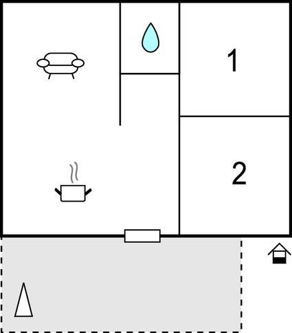 Badezimmer 5m2 (nr. 1) - WC. Warmes und kaltes Wasser. Dusche