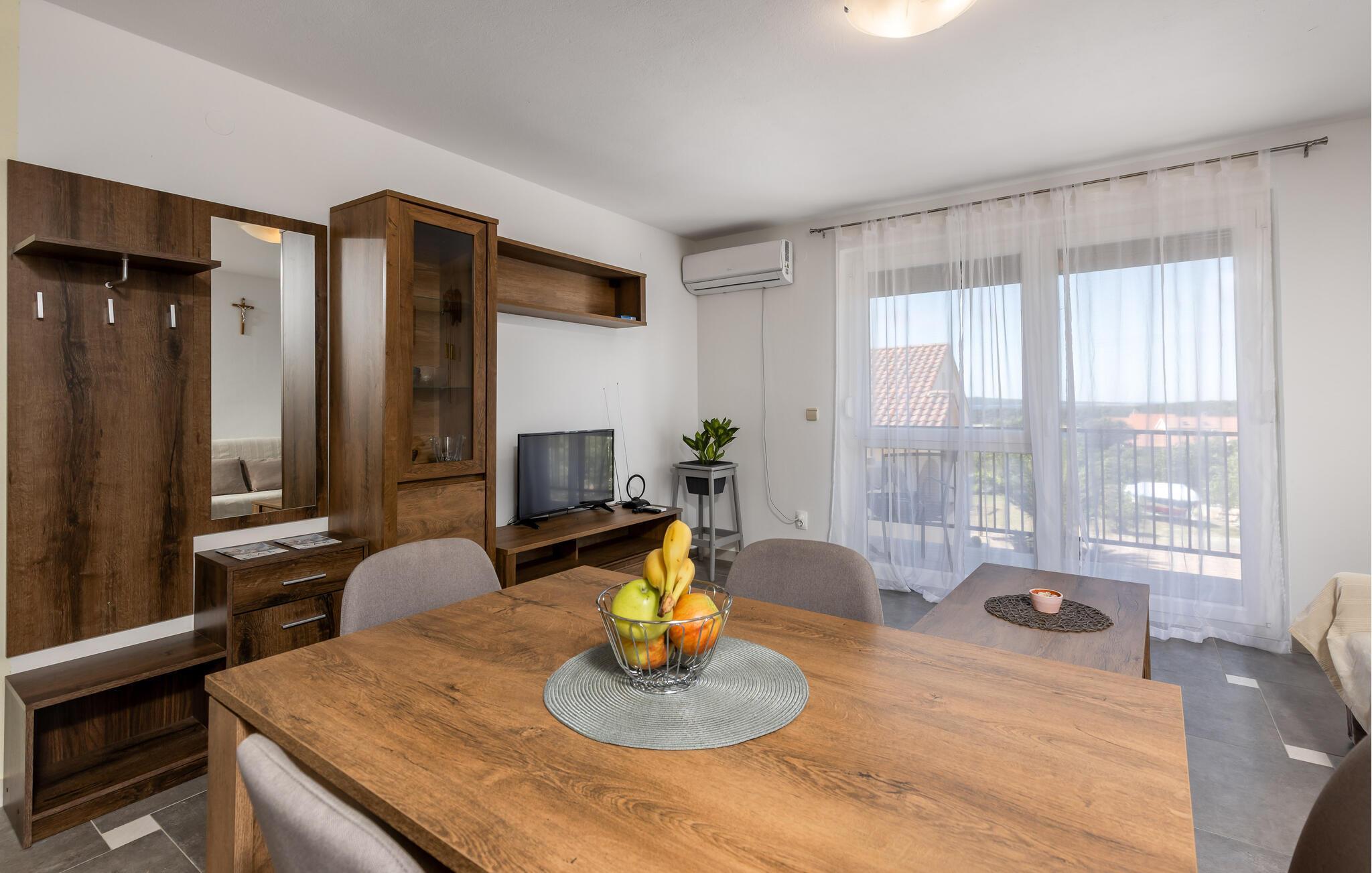 Im 1. Stockwerk des Hauses mit 5 Wohnungen empfängt Sie hier die größte Wohnung des Hauses. Sie ist ideal für ein Ehepaar oder ein Paar mit Kindern. Kommen Sie an und fühlen Sie sich direkt wohl. Die schöne Wohnung ist komfortabel und lässt keine Ihrer Wünsche offen. Auf Ihrem Balkon können Sie Ihren Morgenkaffee trinken und einen schönen Blick auf das Meer und die Stadt Rab erhalten. Nach dem Frühstück können Sie es sich auf der großen Gemeinschaftsterrasse am Swimmingpool bequem machen und Ihren Kindern zuschauen, wie Sie im Wasser spielen. Vielleicht schließen sie mit den Kindern der anderen Gäste Freundschaften und so können Sie auch mit den Gästen ins Gespräch und können ein gemeinsames Abendessen verbringen.