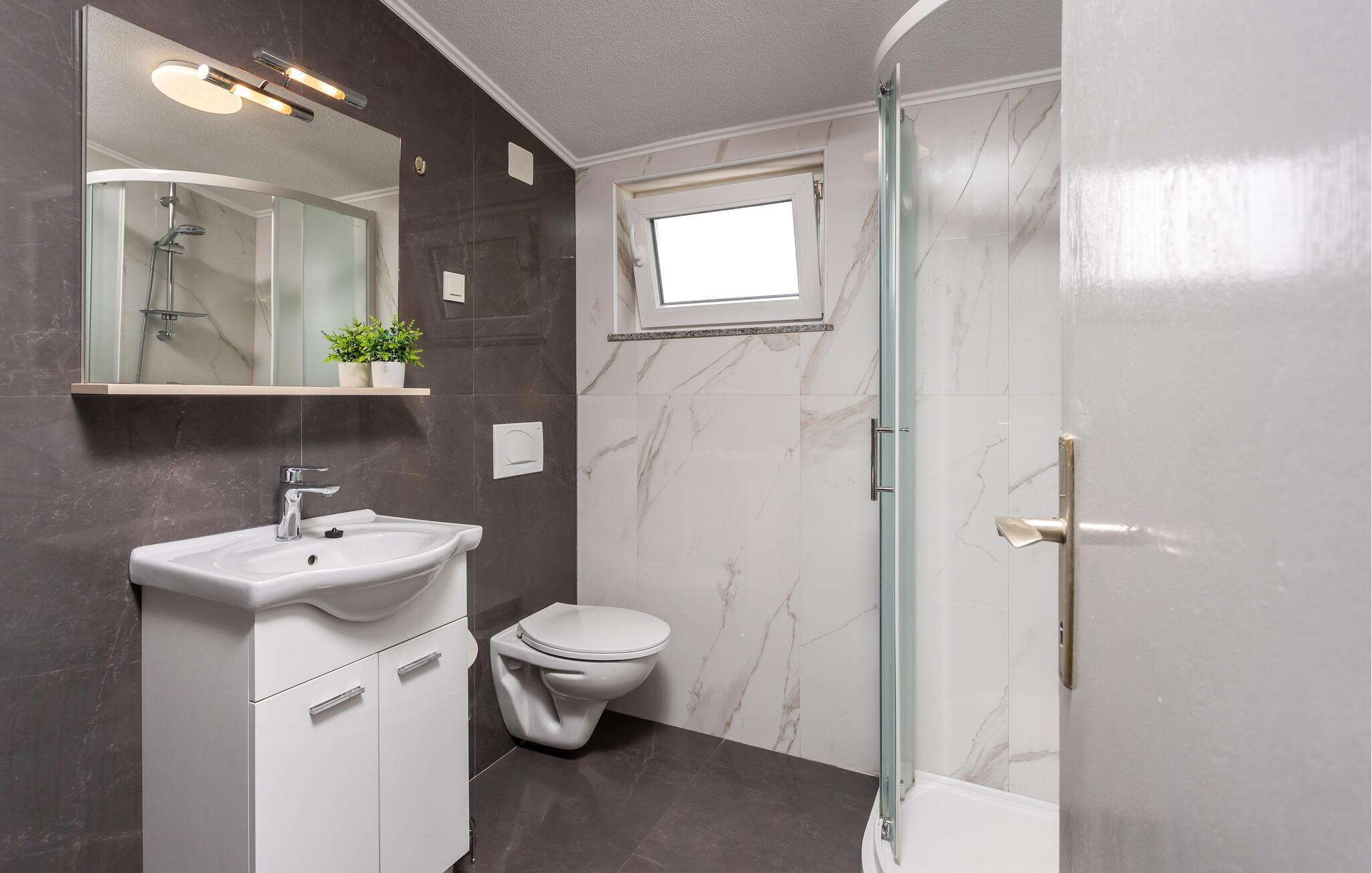 Badezimmer 4m2 (nr. 1) - WC. Warmes und kaltes Wasser. Dusche