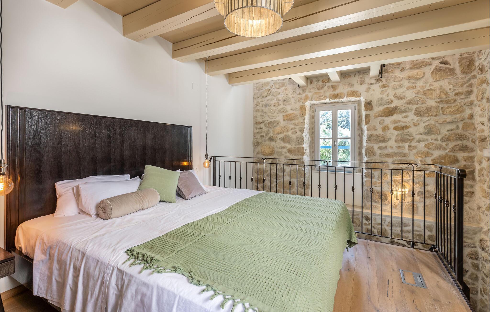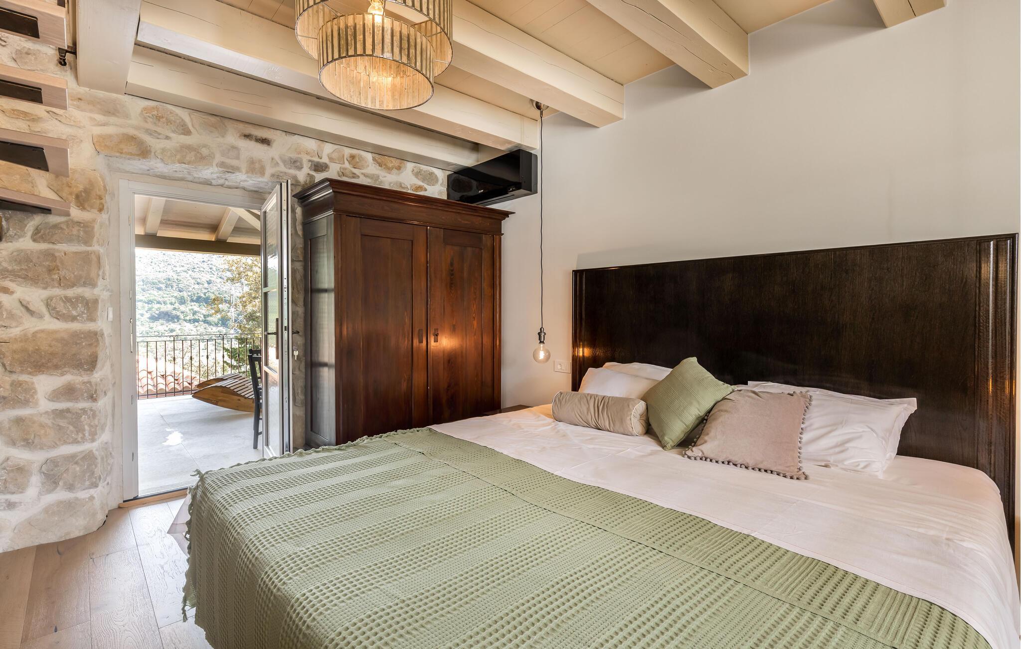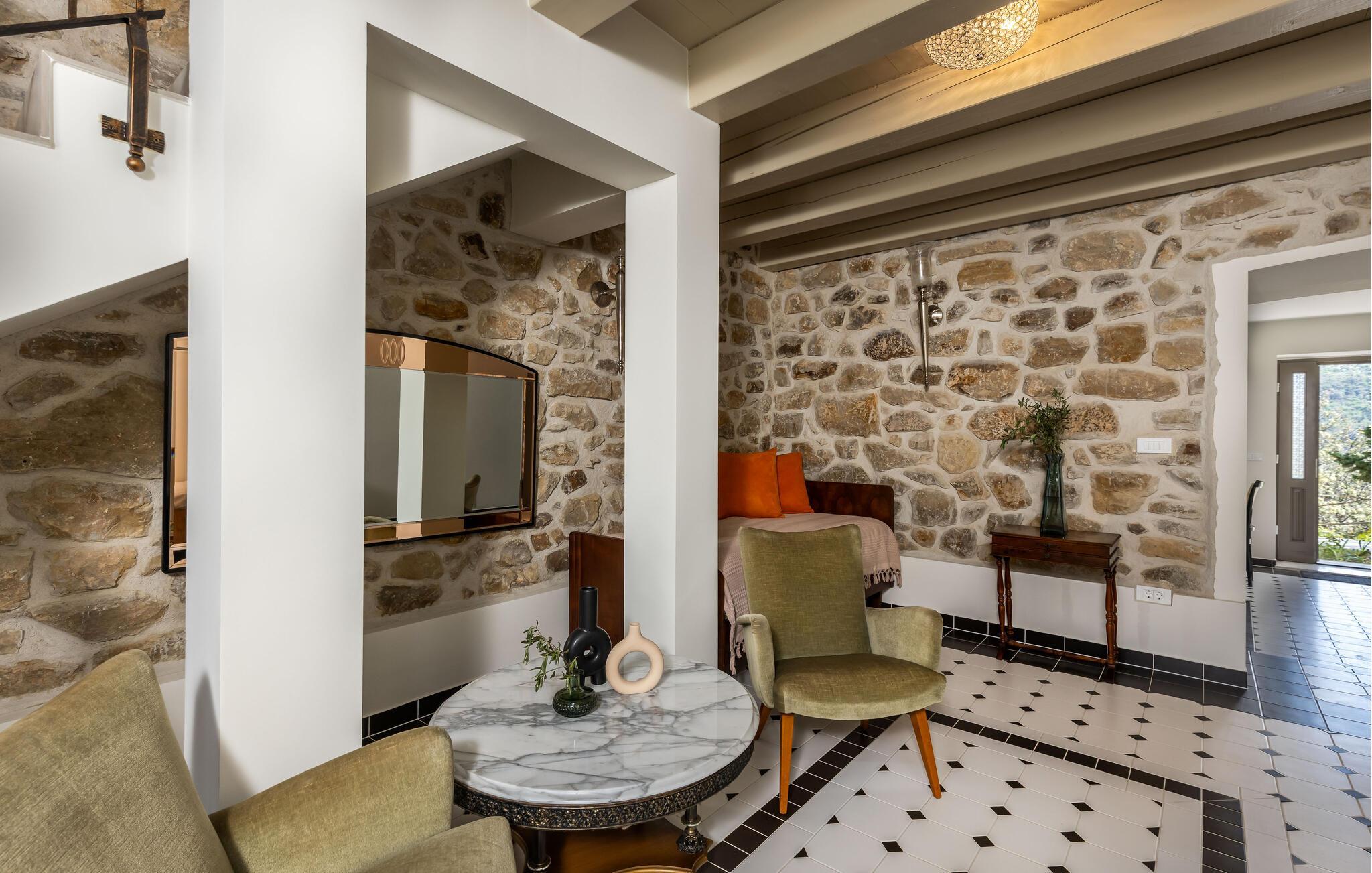 Genießen Sie Ihre Auszeit in diesem stilvoll eingerichteten Ferienhaus inmitten der Natur. Das Haus ist Teil eines traditionellen Steingehöfts, das hochwertig restauriert wurde und über einen großen Gemeinschaftspool verfügt. Verbringen Sie entspannte Stunden im charmanten Innenbereich mit offenem Wohn- und Essraum. Die sichtbaren Steinmauern, rustikalen Holzbalken und modernen Möbel schaffen eine warme Atmosphäre. Nutzen Sie die voll ausgestattete Küche mit stilvollen Fronten und bereiten Sie gemeinsame Mahlzeiten zu. Ruhen Sie sich auf dem gemütlichen Sofa aus oder verbringen Sie den Abend mit einem Glas Wein im Wohnzimmer.