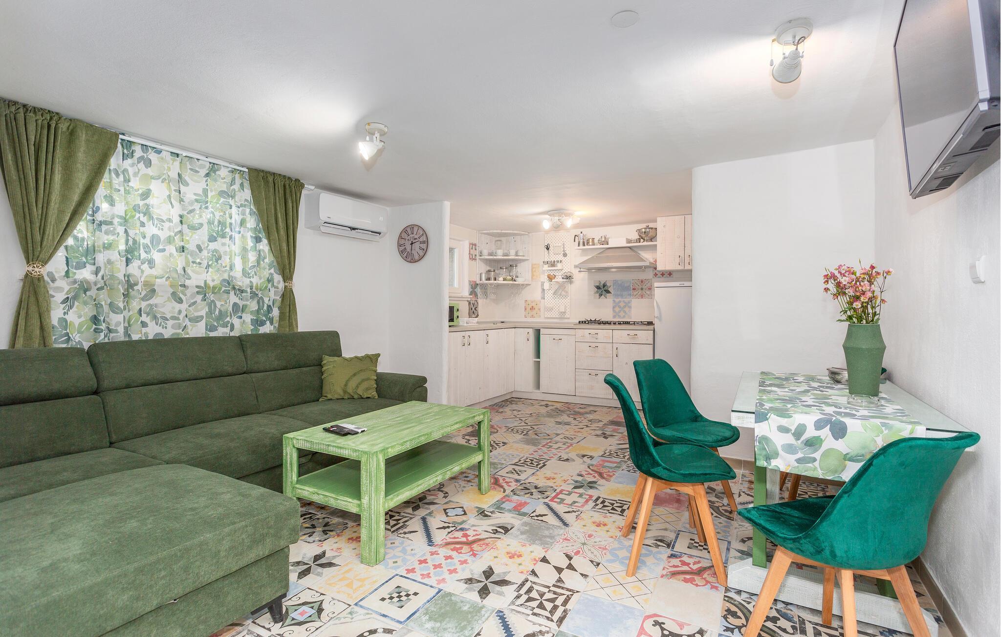 Treten Sie ein und bekommen gute Laune, denn Sie sind jetzt nicht nur in Ihrer Ferienunterkunft angekommen, sondern können sich auf eine schöne Einrichtung und viele Farben und Muster freuen. Machen Sie es sich als Paar gemütlich, entspannen auf dem Sofa oder stärken sich mit einem leckeren Frühstück für Ihre Ausflüge und Aktivitäten auf der Insel.