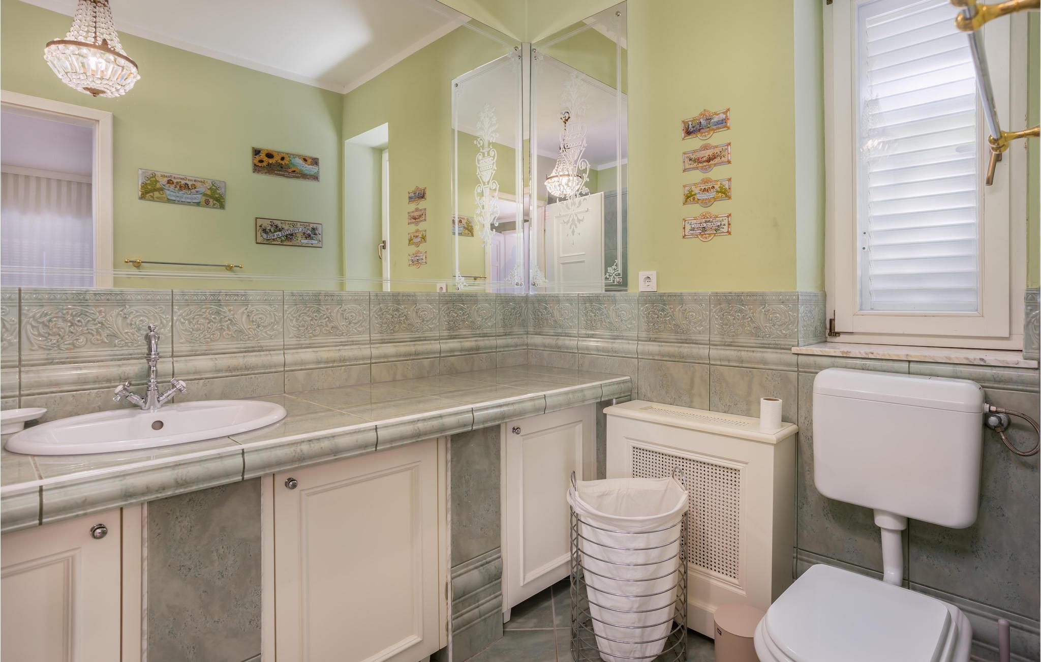 Auf einem weitläufigen Grundstück begrüßt Sie überaus komfortable Haus, das mit seinen Balustraden und Säulen an einen Palast erinnert. Auch im Inneren setzt sich dieser Eindruck dank der geschwungenen Treppe mit Goldgeländer und prächtigen, mit Intarsien verzierten Böden fort. Hier können Sie in vollen Zügen in stilvollem Ambiente die gemeinsamen Tage genießen. Gediegene Möbel und ansprechende Farben begünstigen die Urlaubsentspannung. Tafeln Sie fürstlich am langen Esstisch und machen Sie es sich abends in der großzügigen Sofalandschaf bequem, wo Sie noch lange zusammensitzen können, einen Film ansehen, Spiele spielen oder einfach gemütlich plaudern.
