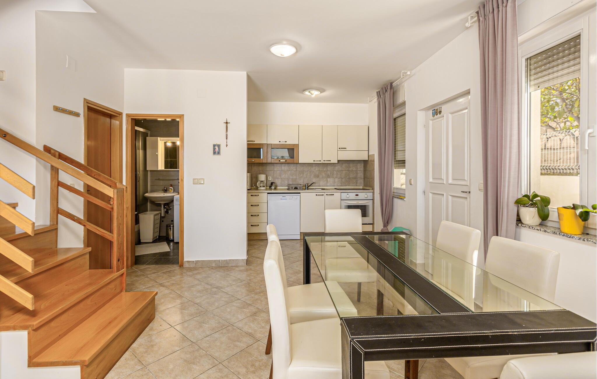 Verbringen Sie einen erholsamen Urlaub in einer dieser schönen Ferienwohnungen in Banjol auf der Insel Rab. Die Ferienwohnung CKR428 erstreckt sich über das Erdgeschoss und den ersten Stock und verfügt über eine herrliche Aussicht auf das Meer und die Umgebung. CKR429 liegt im Erdgeschoss und beinhaltet eine Galerie mit minimaler Wandhöhe von etwa 60 cm. Jede Wohnung hat eine eigene Terrasse mit Grill. In wenigen Gehminuten erreichen Sie den Sandstrand sowie das Stadtzentrum, in dem es viele Restaurants, Cafés und Sommerveranstaltungen gibt. Die Standpromenade eignet sich für romantische Spaziergänge und zum Joggen.