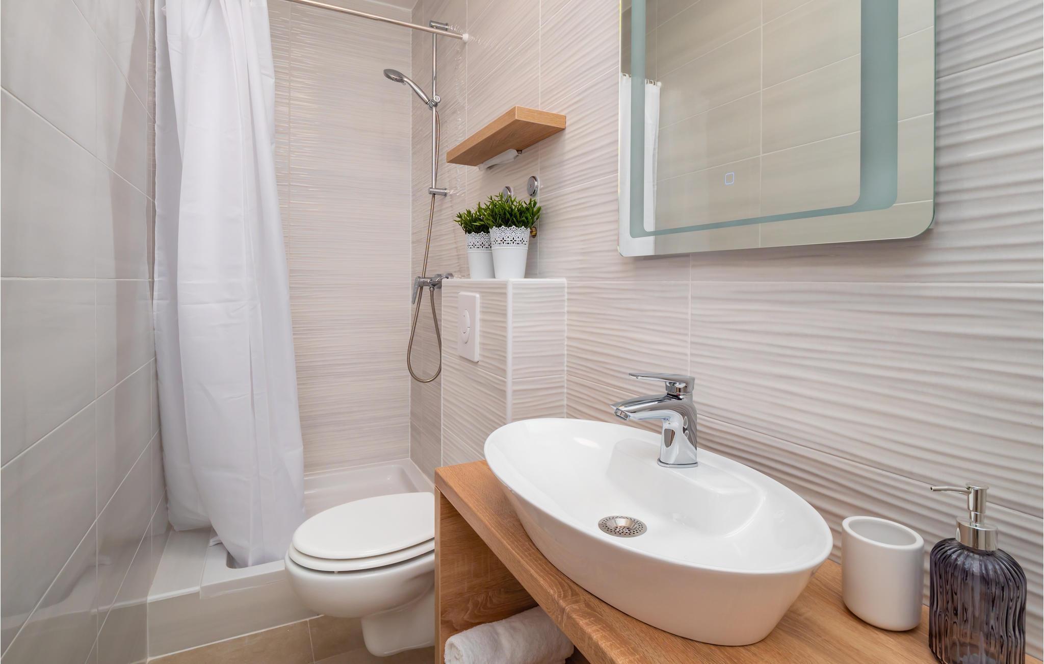 Badezimmer 4m2 (nr. 1) - WC. Warmes und kaltes Wasser. Dusche