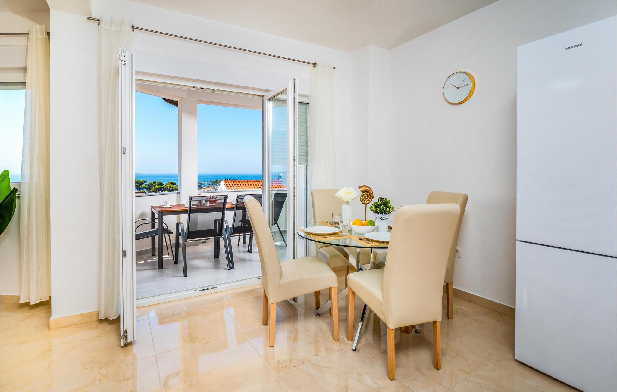 Die Wohnung befindet sich im 1. Stock eines Hauses und bietet alles, was Sie für einen gelungenen Urlaub brauchen. Freuen Sie sich auf einen wundervollen Meerblick. Die Einrichtung ist wohnlich und modern. Dank Klimaanlage genießen Sie auch an heißen Tagen angenehme Temperaturen.