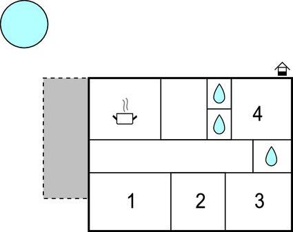 Badezimmer 3m2 (nr. 1) - WC. Warmes und kaltes Wasser. Dusche