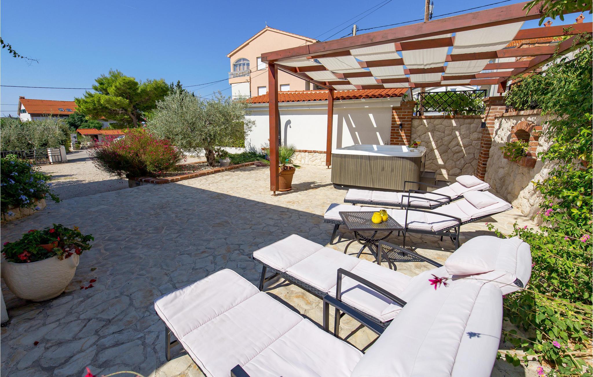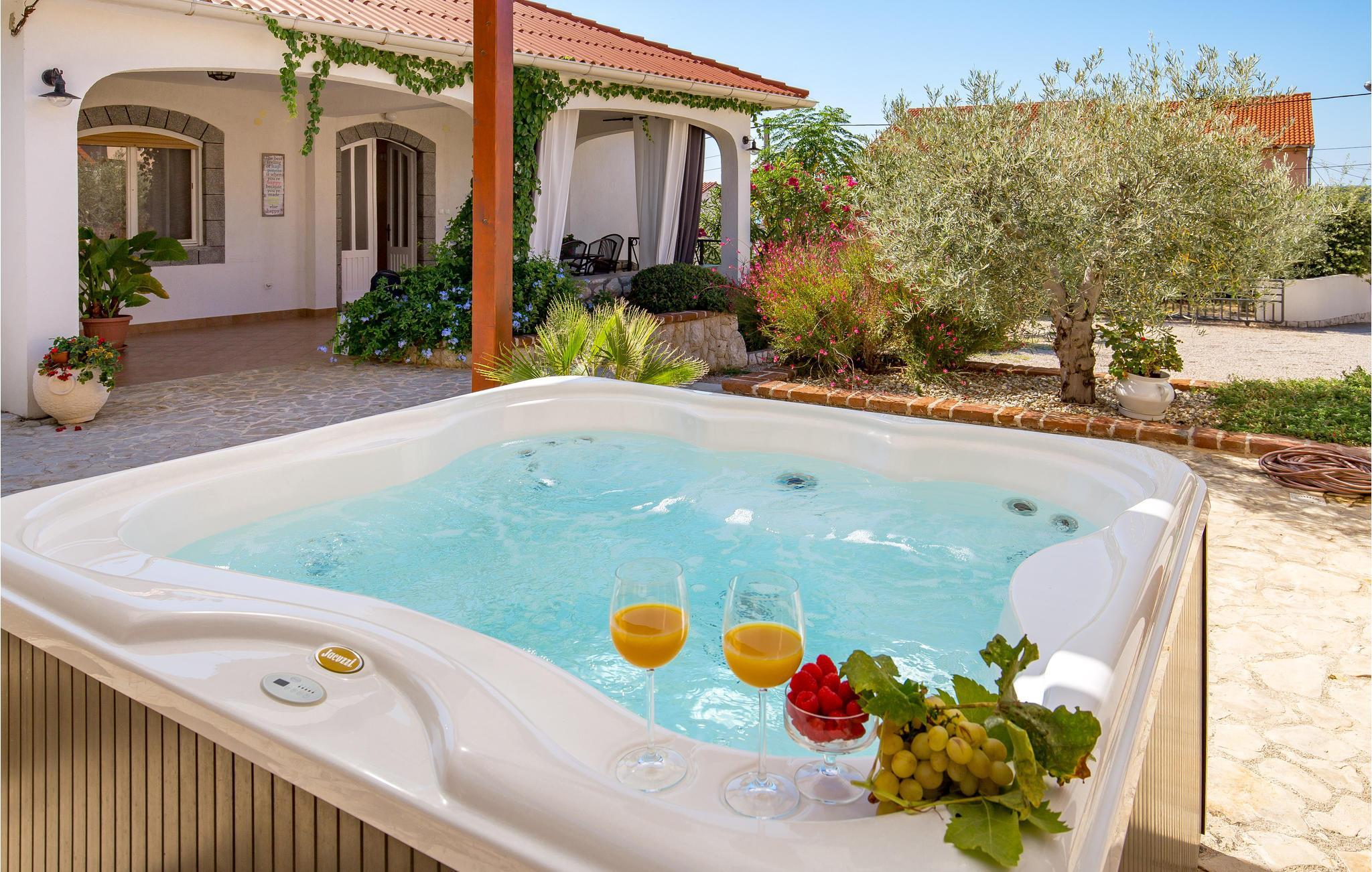 Freuen Sie sich auf einen entspannenden und komfortablen Urlaub in diesem wunderbaren Ferienhaus auf der Insel Rab. Genießen Sie morgens das Frühstück auf der überdachten Terrasse. Entspannen Sie sich im Wohnzimmer nach einem Tag mit Ausflügen oder auf den Liegestühlen bei einer eisgekühlten Erfrischung. Genießen Sie auf der Terrasse gemeinsam das Abendessen und machen Sie einen netten Spaziergang am Meer. Springen Sie dann in den Whirlpool und lassen Sie bei einem Glas Wein den Tag schön ausklingen.