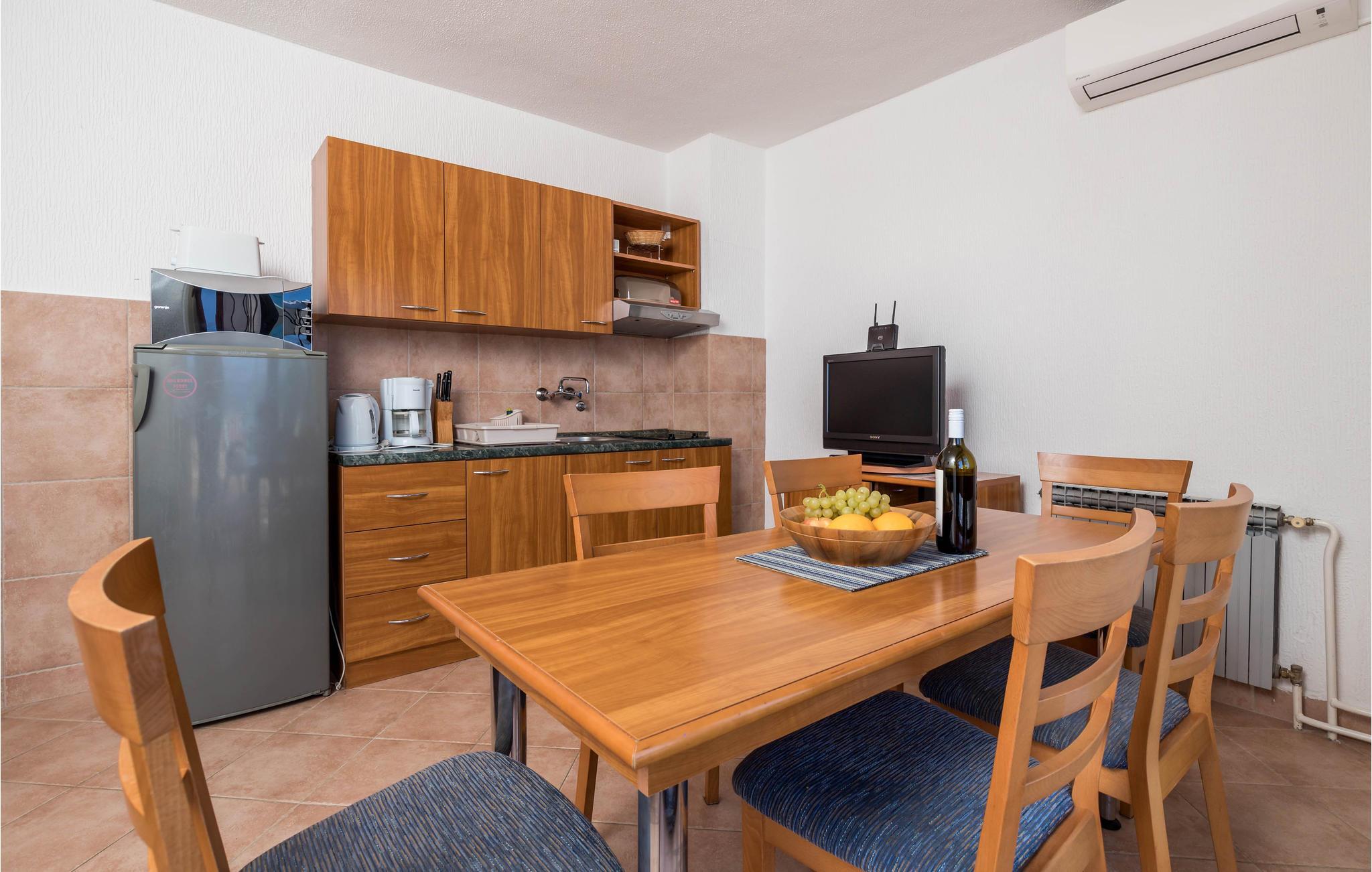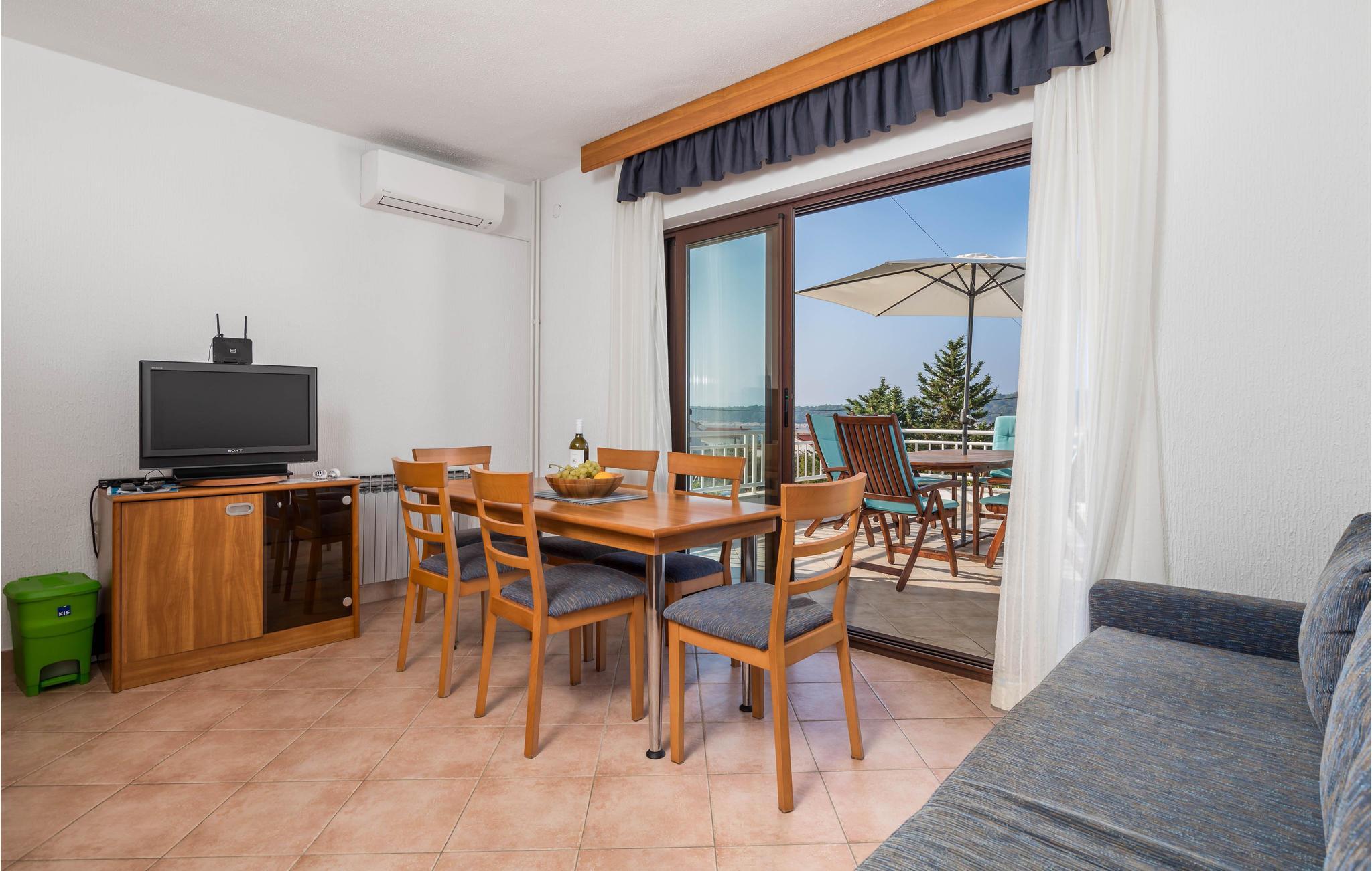 Im 1. Stockwerk empfängt Sie diese praktische und voll ausgestattete Ferienwohnung in Barbat auf der Insel Rab. Die Ferienwohnung eignet sich ideal für Ihre Familie, die gerne Zeit im Freien verbringen will. Denn vor und nach Ihren Ausflügen können Sie die Sonne und Ihre Mahlzeiten auf der großen Terrasse genießen. Wunderbar ist dabei auch der wundervolle Ausblick auf das Meer und die vorgelagerte Insel Dolin.