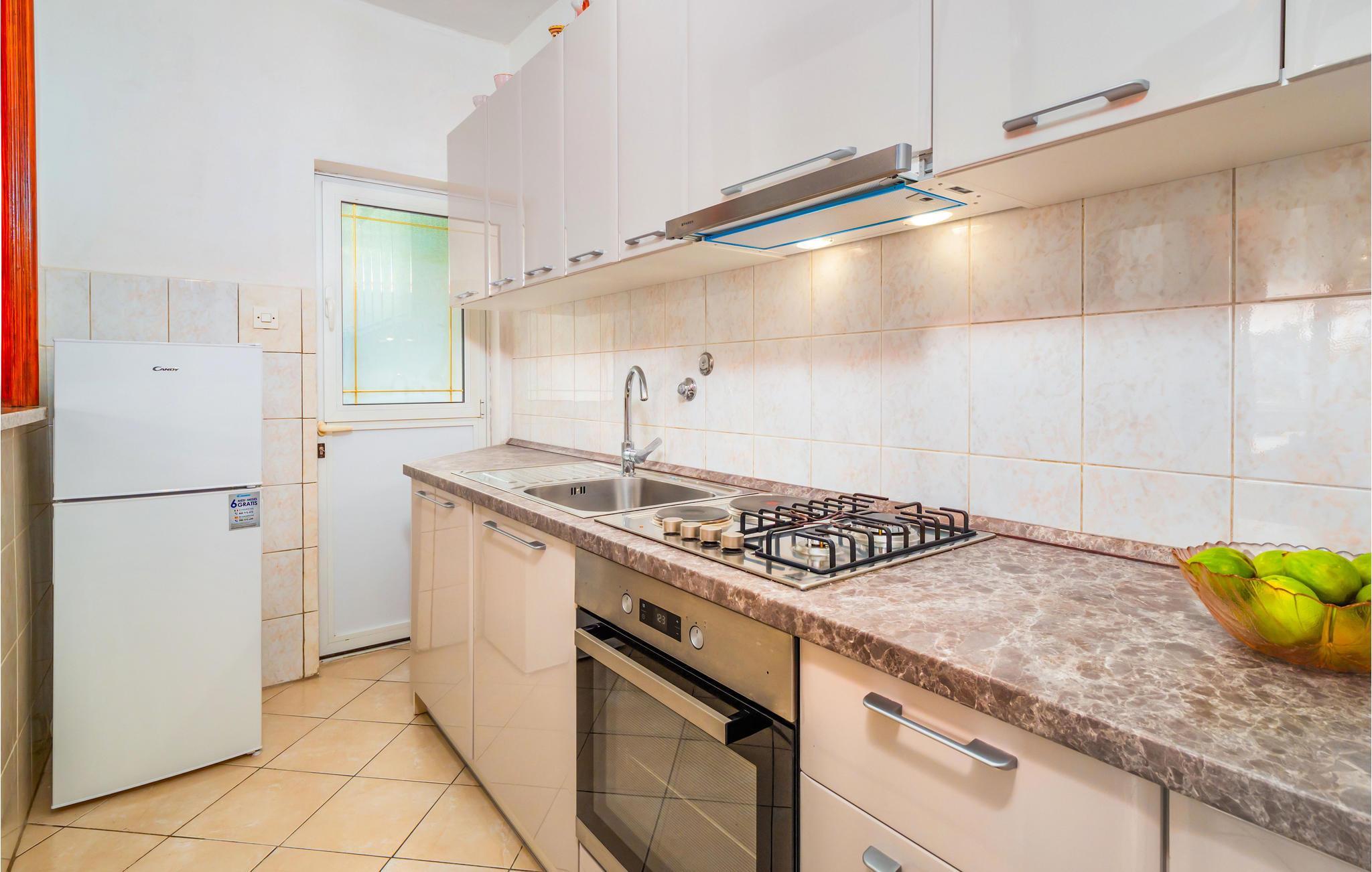 In ruhigem Dorf Kampor, weit von Verkehr und Lärm liegt dieses ebenerdige Ferienhaus. Es enthält drei Schlafzimmer und ist einfach eingerichtet. Vor dem Haus liegt eine schöne Terrasse, die von Natur und Grün umgegeben ist. Dort stehen Ihnen Gartenmöbel und ein Grill zur Verfügung. Die nette Eigentümerin wohnt auf dem Grundstück. Die Insel Rab ist mit seinen ca. 2500 Sonnenstunden in einer der sonnigsten Regionen Europas gelegen. Nicht nur von Sonne, aber auch von wunderbaren Stränden, kleinen und hübschen Siedlungen, einem kristallklaren Meer und von einem guten Anschluss an das Festland profitiert die Insel.