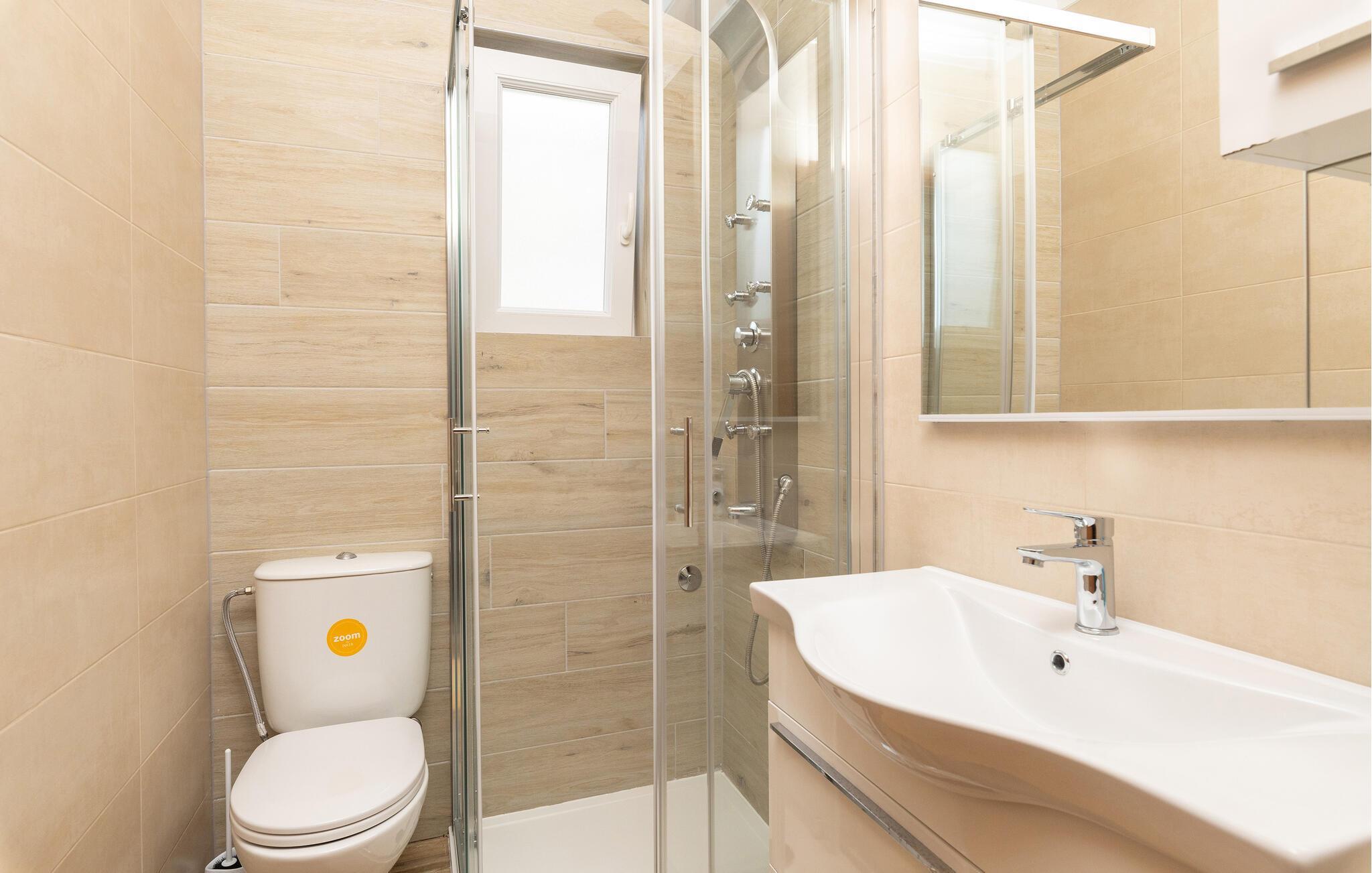 Badezimmer (nr. 1) - WC. Warmes und kaltes Wasser. Dusche