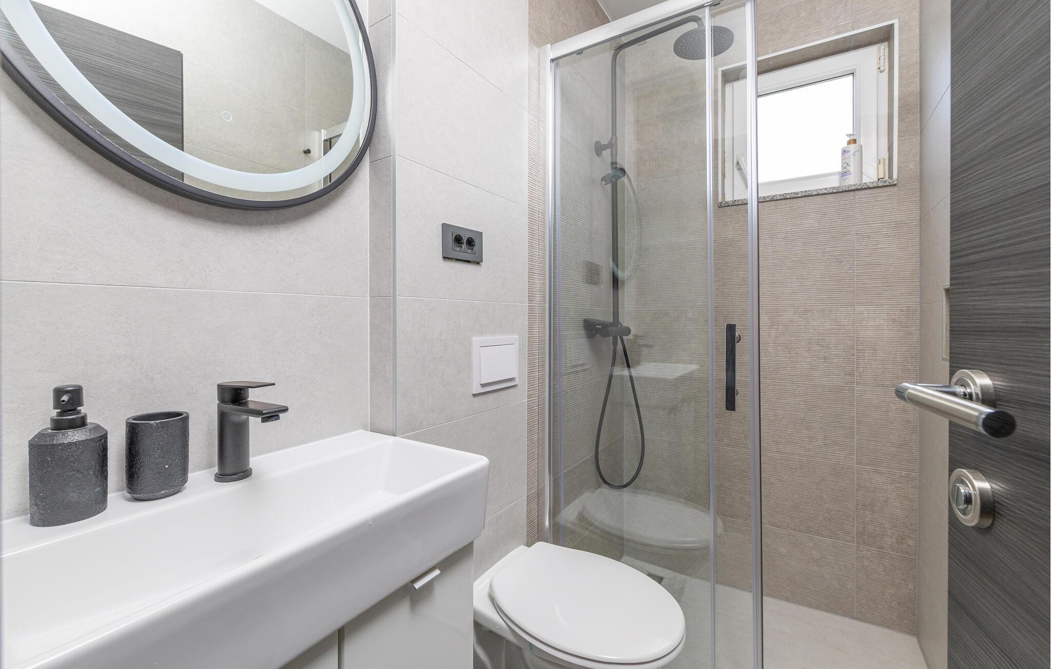 Badezimmer (nr. 2) - WC. Warmes und kaltes Wasser. Dusche