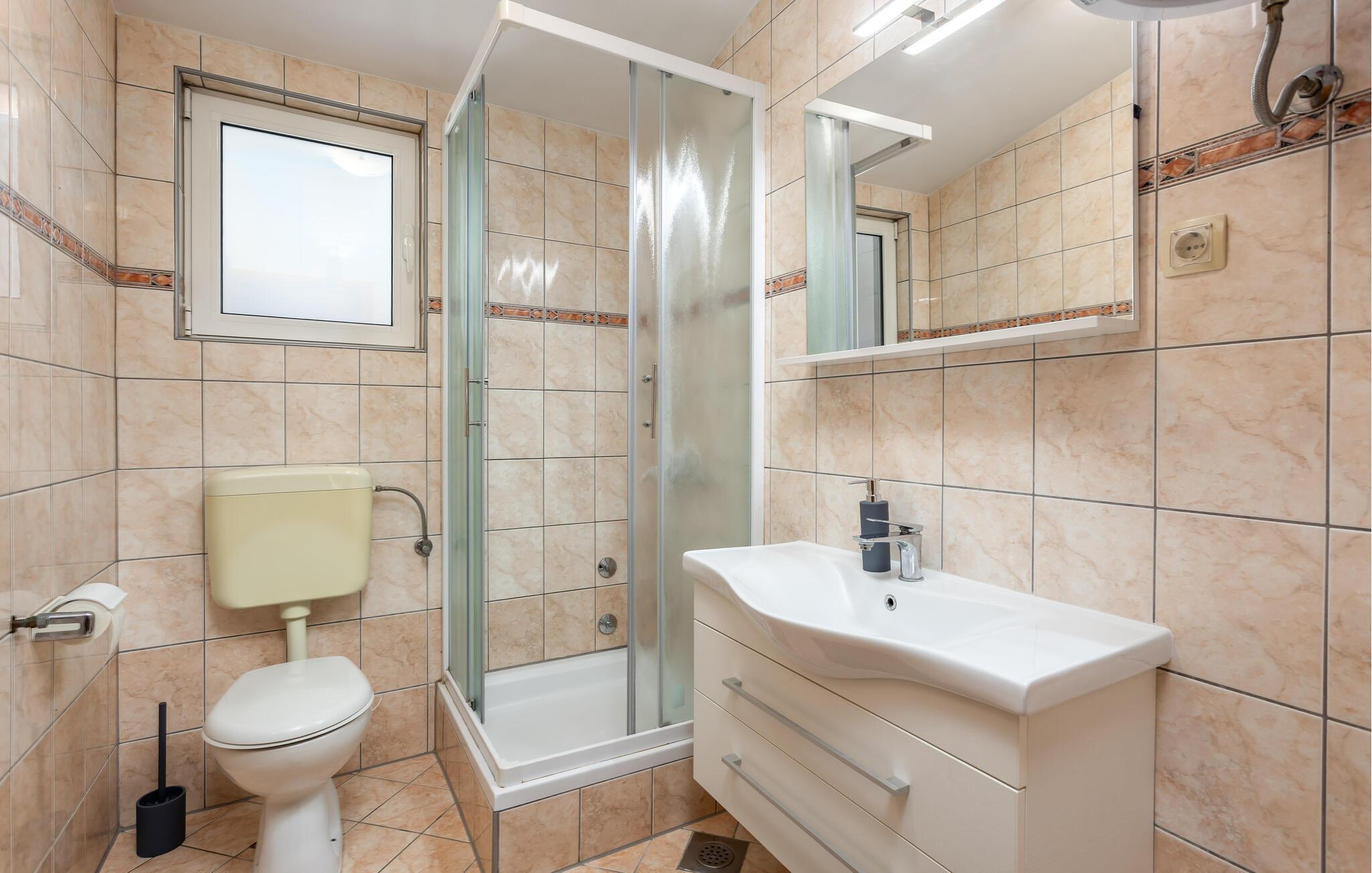 Badezimmer 4m2 (nr. 1) - WC. Warmes und kaltes Wasser. Dusche