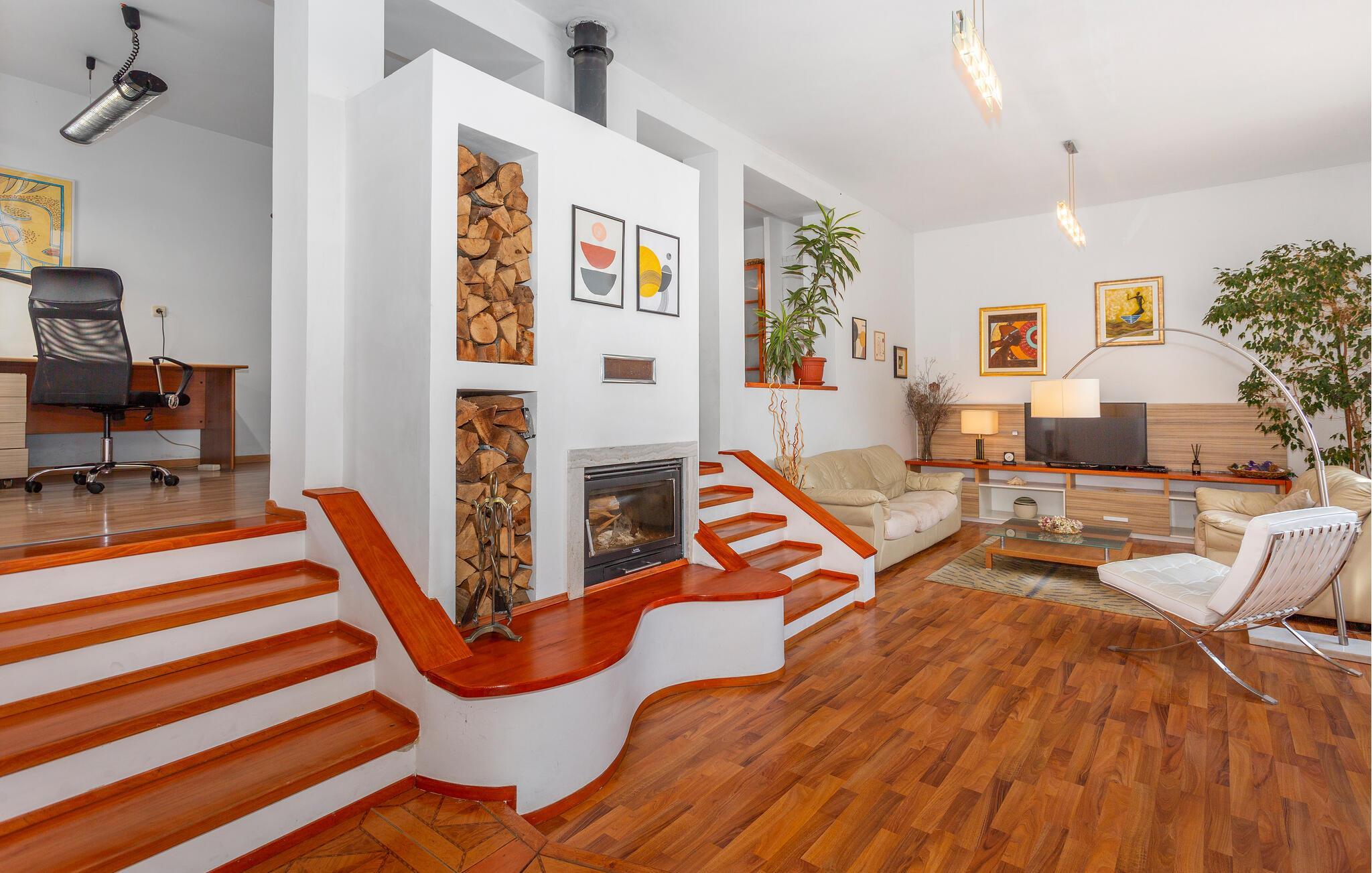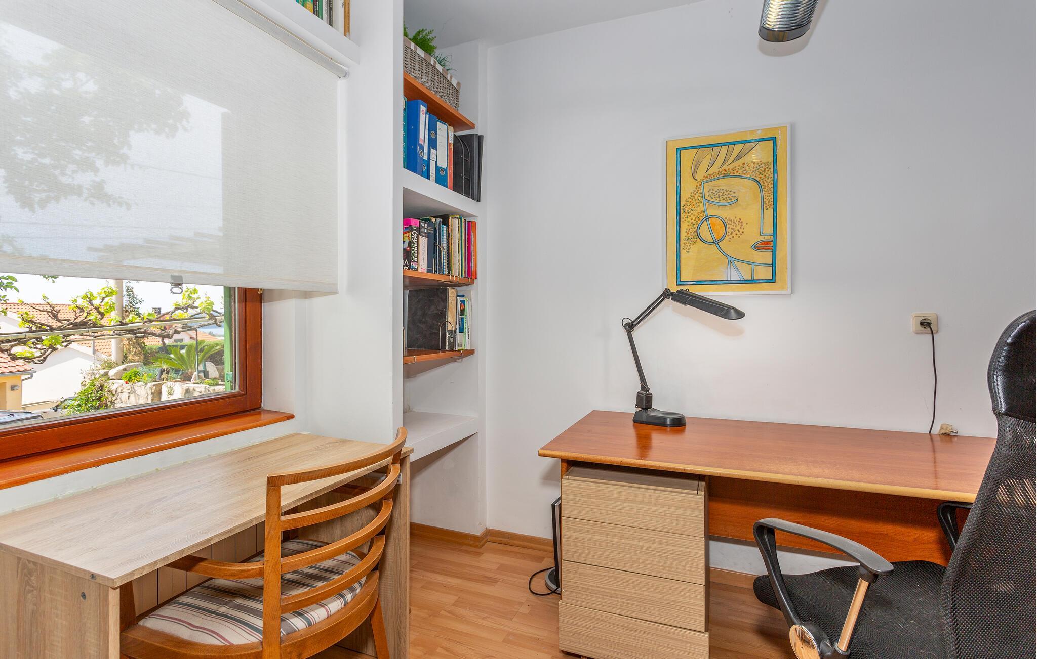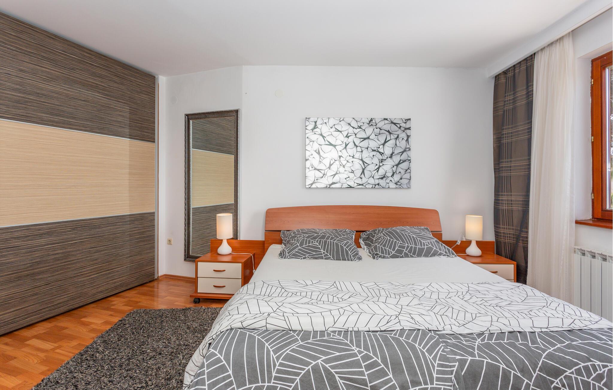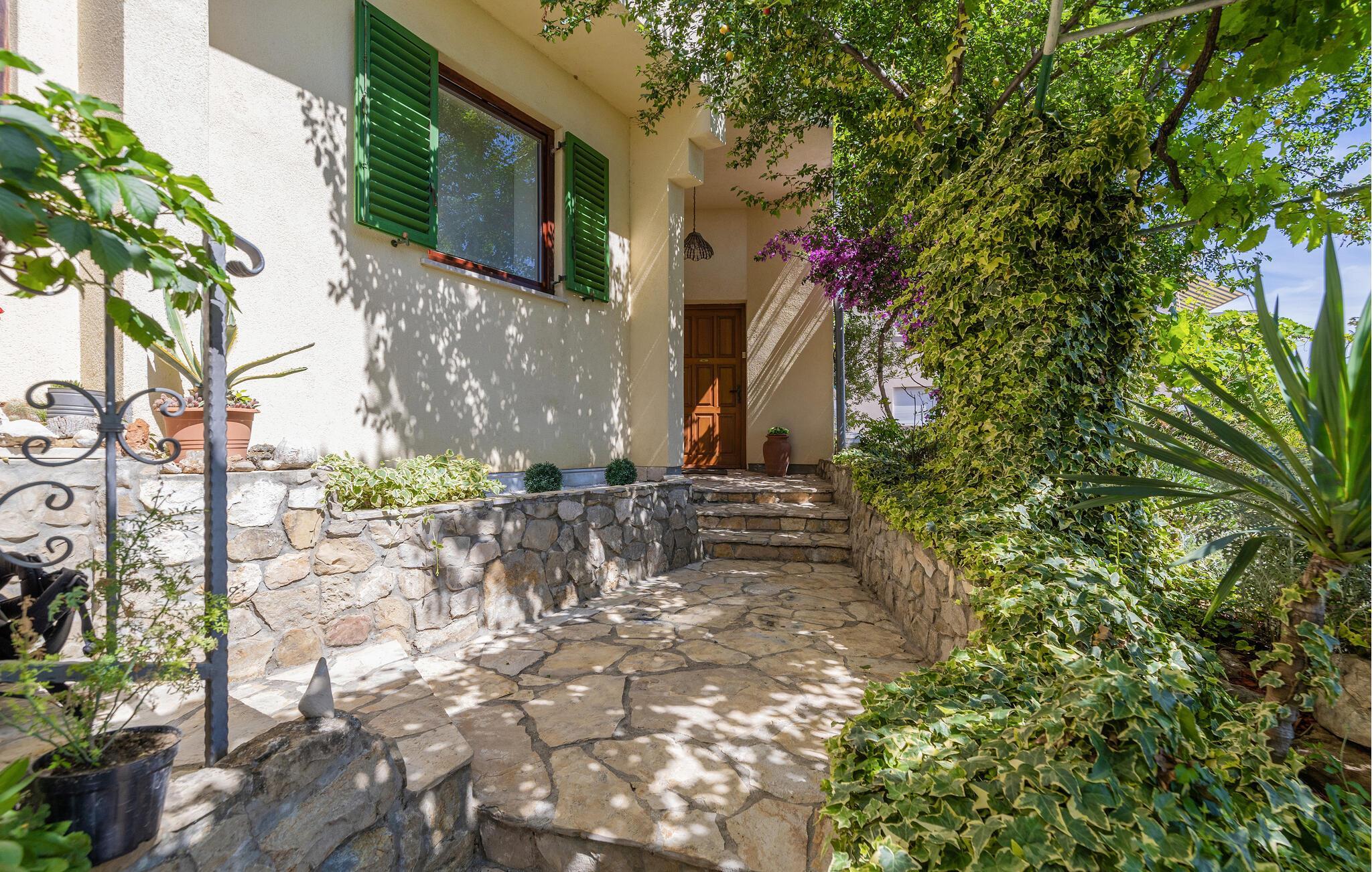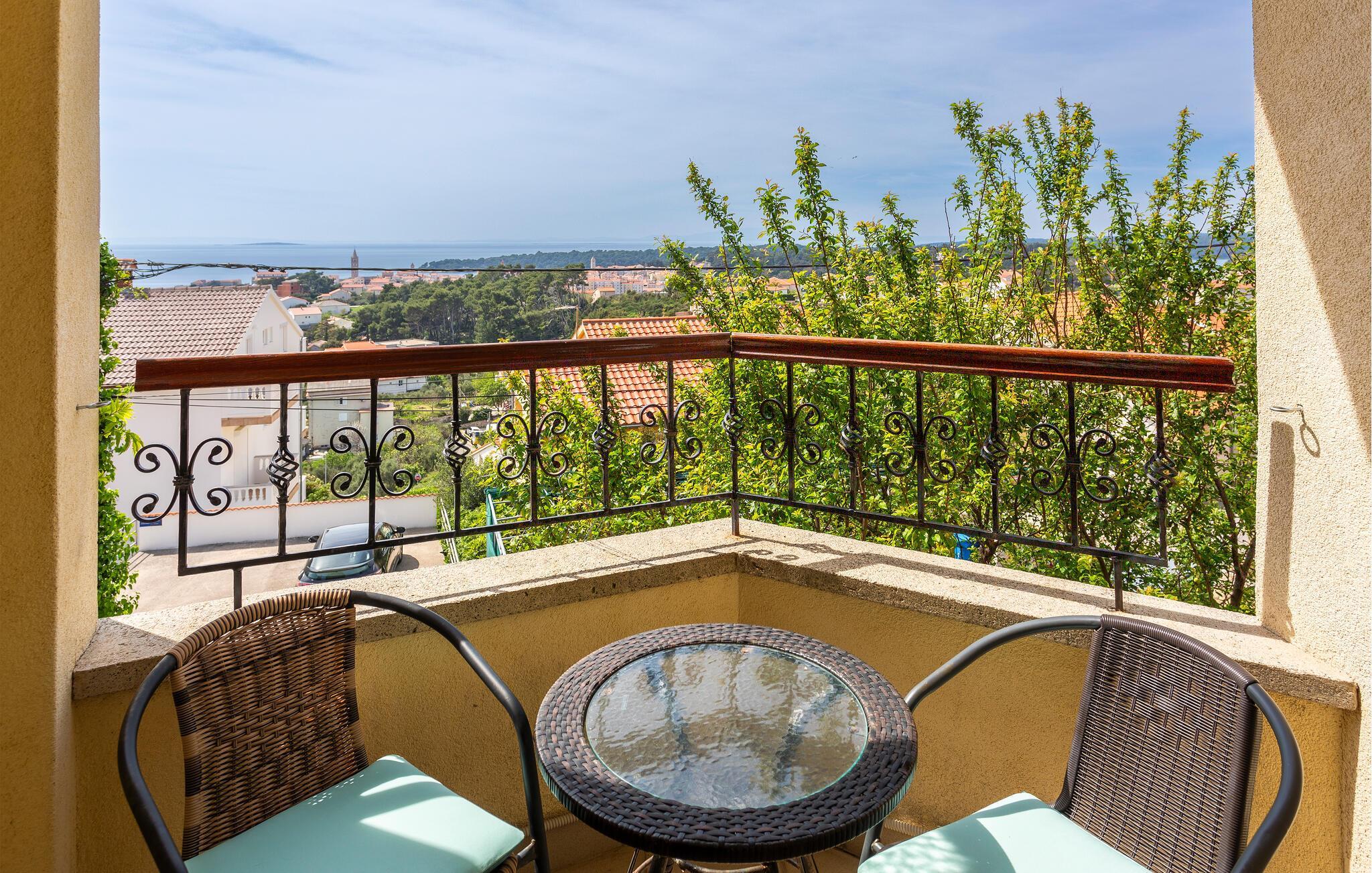 Schöne Doppelhaushälfte mit separatem Eingang. Sie verfügen über ein gemeinsames Grundstück. Sie wohnen auf einem Hang und in einer Siedlung mit privaten Wohnhäusern. Von der offenen Terrasse haben Sie einen schönen Ausblick auf die Landschaft, die Stadt Rab und teilweise auch aufs Meer. Hier erleben Sie auch am Grill schöne Sommerabende. Nicht weit entfernt sind die Beton- und Sandstrände und zahlreiche Restaurants, die die Köstlichkeiten der Region auf ihrer Speisekarte haben. Spazieren Sie entlang der Promenade bis nach Barbat und besichtigen Sie die Sehenswürdigkeiten der Stadt Rab.