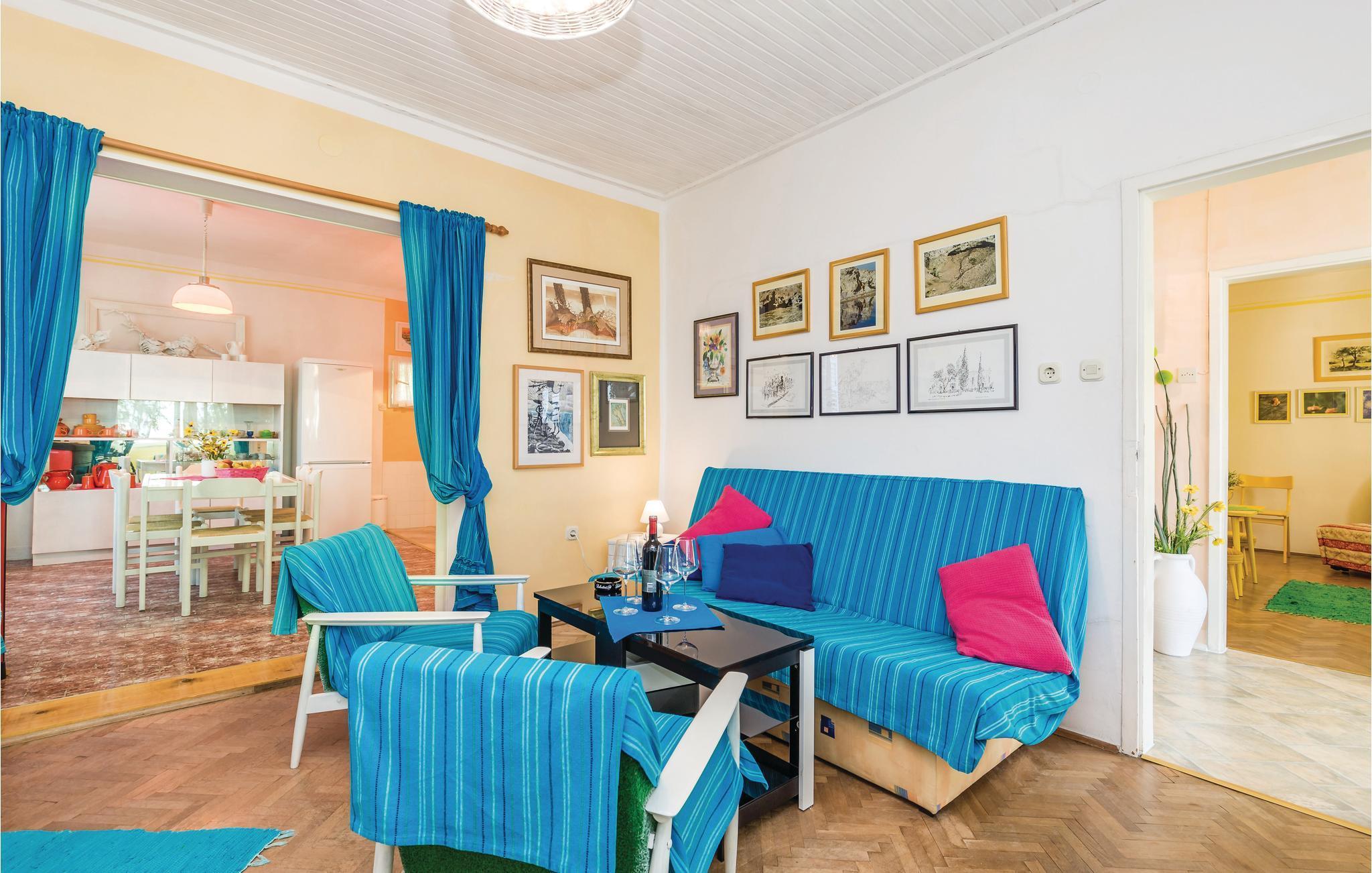 Dieses helle, liebevoll gestaltete Ferienhaus begrüßt Sie auf einer Anhöhe und lädt zu einer harmonischen Auszeit am Meer ein. Zaubern Sie in der geräumigen Wohnküche kroatische Spezialitäten und genießen Sie deren behagliches Ambiente. Machen Sie es sich auf dem Sofa gemütlich und lassen Sie die angenehme Meeresbrise durch die Räume ziehen, während Sie den Tag mit einem Glas Wein ausklingen lassen.