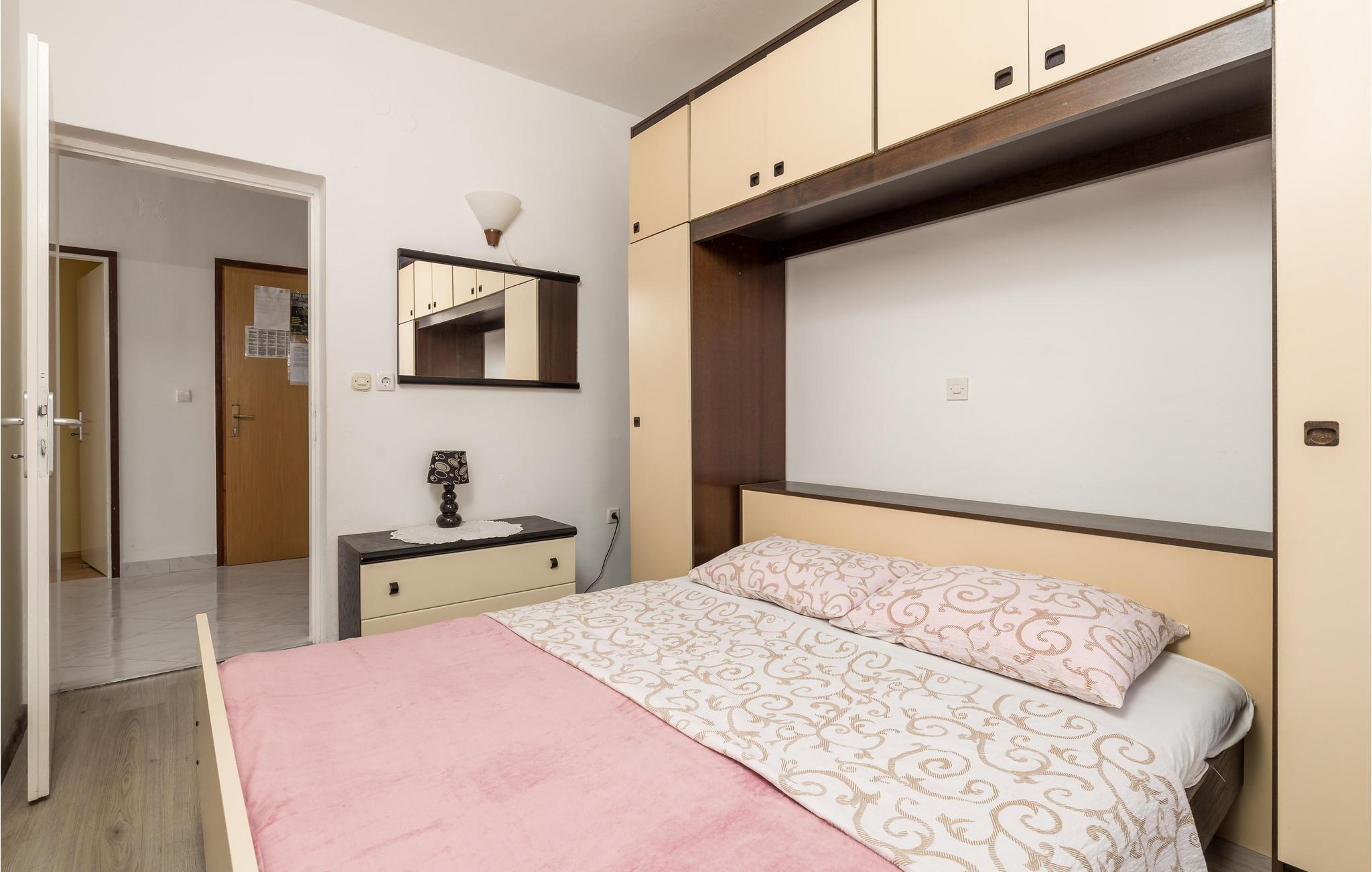 Diese geräumige Ferienwohnung für 8 Personen befindet sich im ersten Stock. Jedes Schlafzimmer hat seinen Balkon und es steht Ihnen auch eine Terrasse zur Verfügung, auf der Sie bestimmt die meiste Zeit in den schönen Sommertagen und an lauen Sommerabenden verbringen werden. Vor dem Haus ist ein Parkplatz, auf dem Sie Ihr Auto stehen lassen können, während Sie die Stadt Rab genießen. Spazieren Sie bis zum Ortszentrum in nur wenigen Minuten sowie auch an den Strand.