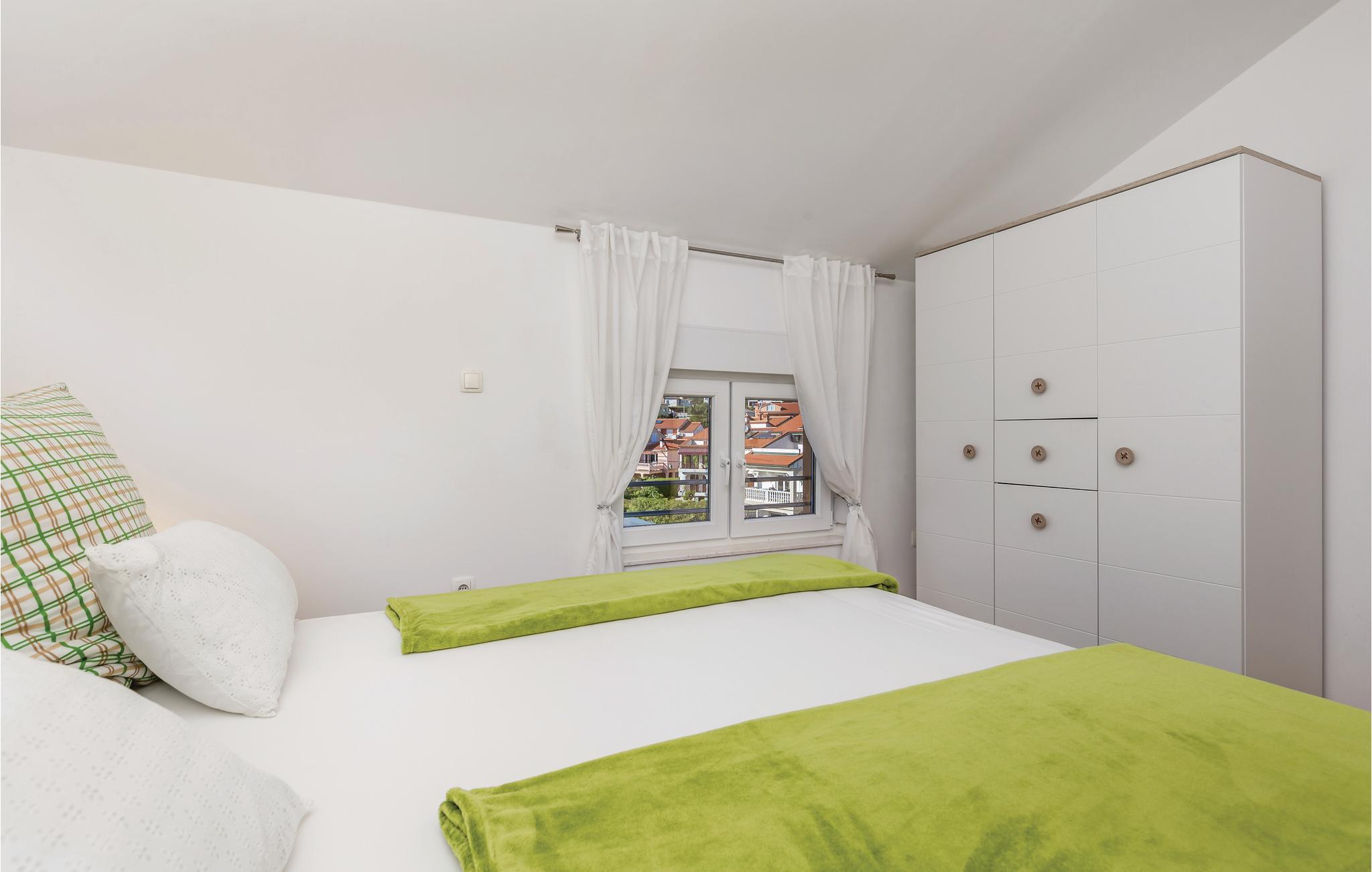 In der Nähe des Meeres auf der zweiten Etage, im Dachgeschoss (Dachschräge auf ca. 150 cm), befinden sich diese zwei Ferienwohnungen, sie sind schön dekoriert und gut ausgestattet, um alle Bedürfnisse zu erfüllen. Die Lage ist ideal, da Sie in nur ein paar Minuten zu Fuß den Strand, Restaurants sowie Cafés erreichen. Rab ist berühmt für traumhafte Badebuchten und bekannt für Sommerveranstaltungen. Nehmen Sie sich einen Tag Zeit, um in Lopar am berühmten langen Sandstrand San Marino, der auch Paradiesstrand genannt wird zu baden. Der Strand ist flach abfallend und somit für Kinder geeignet, die in aller Ruhe im Wasser spielen können.