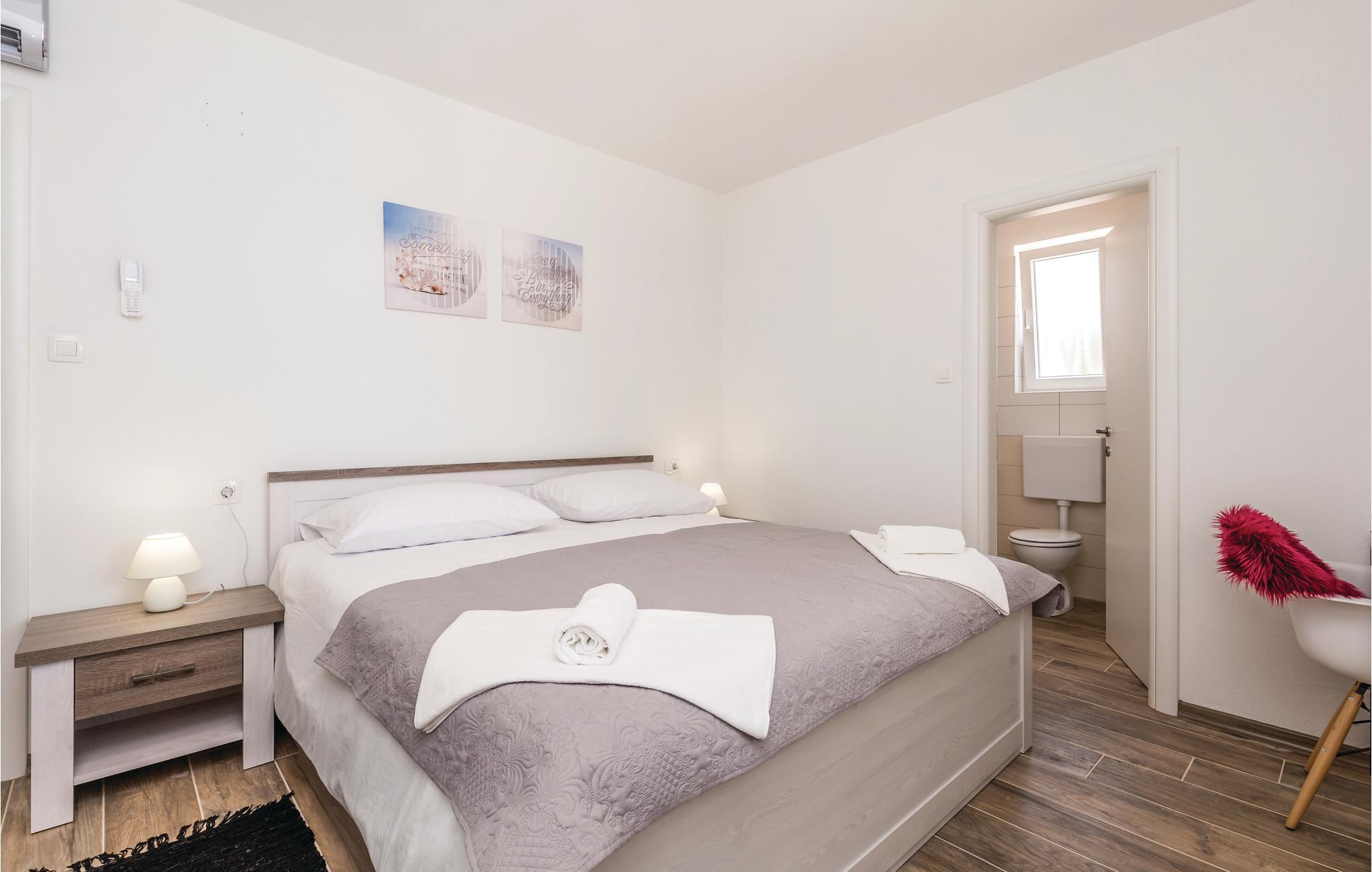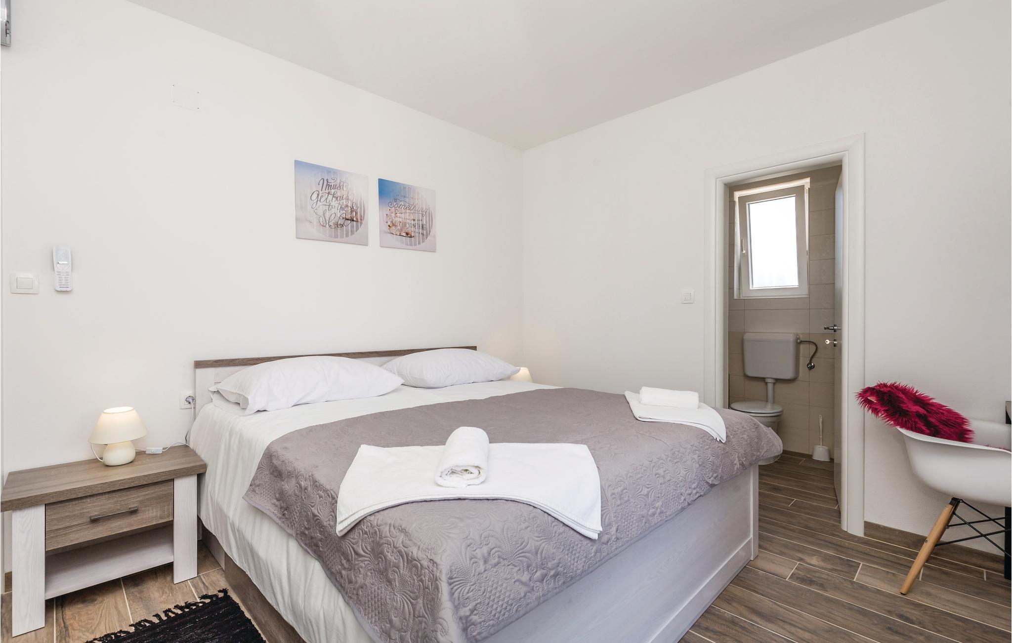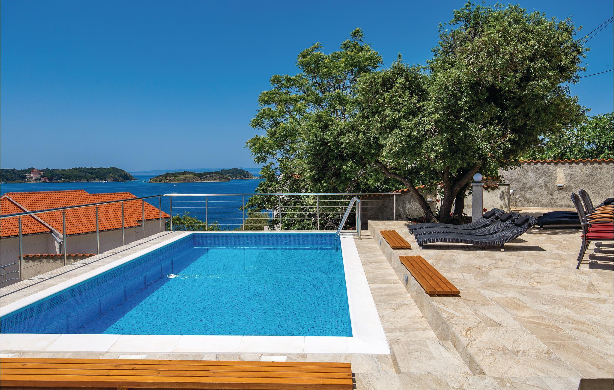 Im Ort Supetarska Draga, auf der sonnigen Insel Rab, befindet sich dieses Ferienhaus mit einem tollen Ausblick auf das Meer und die Landschaft und bildet den perfekten Rahmen für einen angenehmen Urlaub. Das Erdgeschoss verfügt über zwei Schlafzimmer und ein behindertengerechtes Badezimmer, während sich zwei weitere Badezimmer im Obergeschoss befinden. Das Erdgeschoss ist mit dem Obergeschoss über eine Außentreppe verbunden. Auf dem umzäunten Grundstück können die Kleinsten spielen. Neben der Eingangstür im Hof gibt es eine Tür, die direkt zum Strand führt. Besuchen Sie den Ort Lopar und erkunden Sie sowohl die wunderschönen Strände als auch das Städtchen Rab, das während der Sommermonate mit Unterhaltung für Groß und Klein und einem reichen Gastronomieangebot unzählige Gäste anzieht.