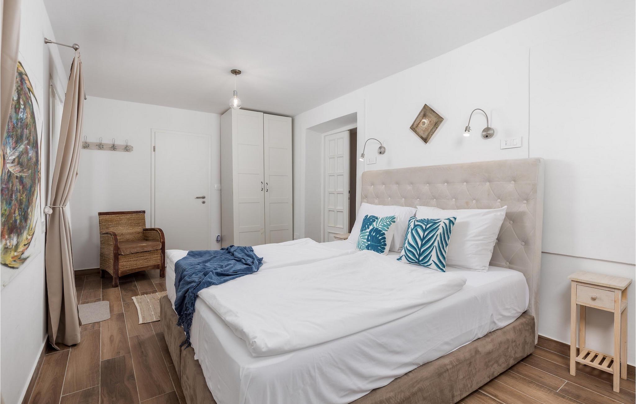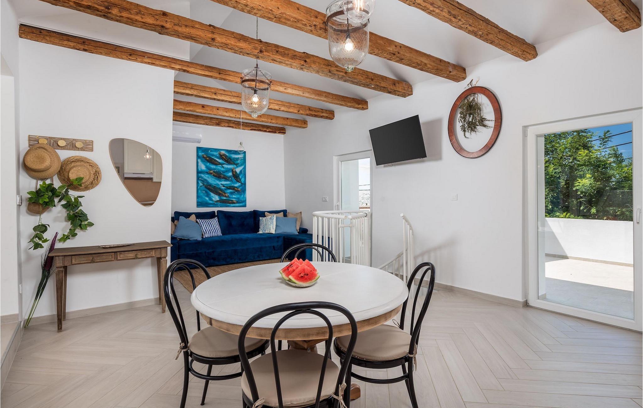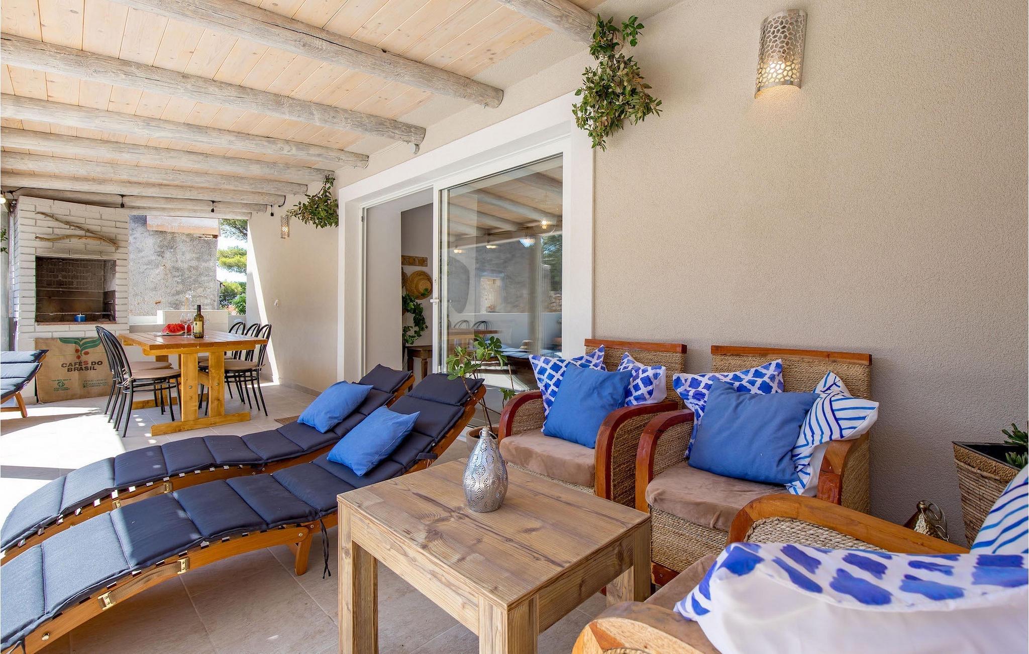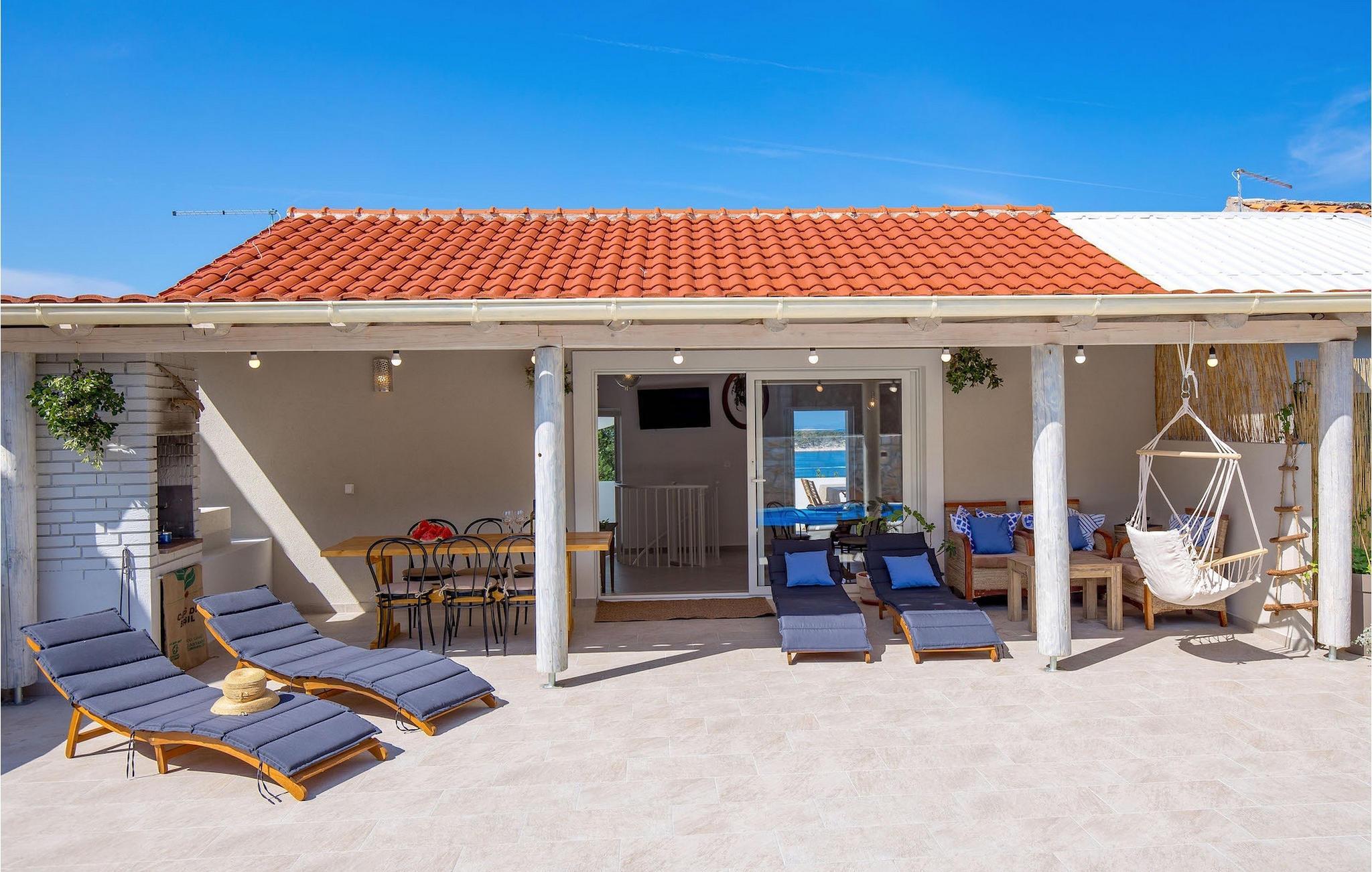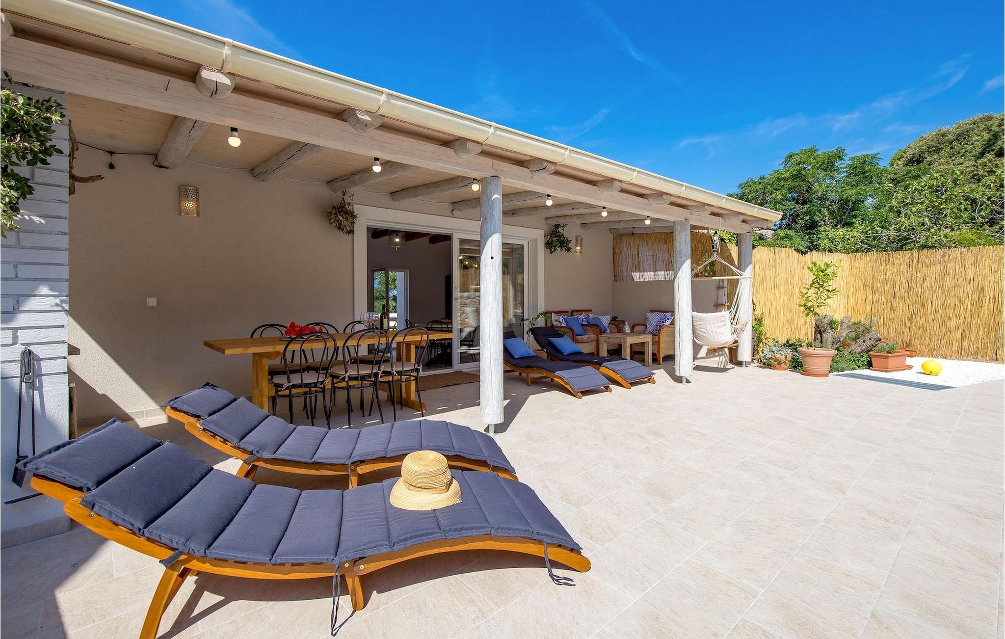 Die charmante Villa Fjaka Rab ist ideal für Liebhaber von Urlaub fernab von Problemen am Meer, Sonne und unberührter Natur der schönen Insel Rab. Diese Villa zeichnet sich durch seine Lage 300 m vom Strand entfernt, die Liebhaber der Nähe zum Meer wird sicherlich zu schätzen wissen. Die Villa ist auch für Haustiere geeignet. Am Eingang der Villa erwartet Sie ein schöner 20 m2 großer Swimmingpool, in dem Sie sich erfrischen können. Entspannen Sie sich auf den Liegestühlen am Pool oder machen Sie ein Nickerchen in der Hängeschaukel. Versuchen Sie sich an der Zubereitung traditioneller Meeresfrüchte-Spezialitäten auf dem Grill vor der Villa. Verbringen Sie unvergessliche Momente mit zubereiteten Mahlzeiten und Lachen mit Ihren Liebsten im überdachten Bereich vor der Villa mit einem Esstisch für 8 Personen. Auf der Ebene des Pools, im Inneren der Villa gibt es einen offenen Bereich mit einer voll ausgestatteten Küche, ein Esszimmer mit 8 Sitzplätzen und Zugang zum Pool, ein Wohnzimmer und ein Badezimmer. In der unteren Etage befinden sich 3 Schlafzimmer mit Doppelbetten und 2 separate Bäder. Das Innere der gesamten Villa strahlt Meer und nautischen Charme aus. Auf dem Balkon der Villa können Sie Ihren Morgen mit Kaffee, mediterraner Atmosphäre und einem wunderschönen, unwiederholbaren Idyllische Aussicht verbringen. Buchen Sie einen tollen Urlaub auf der Insel des Glücks in der Villa Fjaka Rab. Die Villa Fjaka Rab befindet sich im Dorf Barbat auf der Insel Rab. Die Insel Rab liegt an der nordöstlichen Seite der Adria und ist für ihre wunderschönen Sandstrände, Buchten und das kristallklare Meer bekannt. Barbat ist ein bezaubernder Ort, an dem Sie von der Gastfreundschaft der lokalen Bevölkerung und dem gastronomischen Angebot verzaubert werden, bei dem Sie unbedingt die Spezialität von Barbat, die Garnelen, probieren müssen. Erkunden Sie diese wunderschöne Insel des Glücks auf zahlreichen Rad- und Wanderwegen umgeben von duftenden Pinien. Rab bietet zahlreiche gastronomische Einrichtungen, in denen Sie abends bestimmt viel Spaß haben werden. Lassen Sie sich die traditionelle Raber Messe, das älteste und größte mittelalterliche Sommerfest in Kroatien, nicht entgehen. Beim Rab-Fest können Sie auch lokale Fischspezialitäten probieren, sich einen Rab-Kuchen gönnen und andere Köstlichkeiten und Souvenirs genießen, die von den Einheimischen selbst hergestellt wurden. Geschichts- und Kulturliebhaber werden von der wunderschönen Kathedrale von Rab, von deren Glockenturm aus Sie einen magischen Panoramablick genießen können, einem bezaubernden Platz, einem Kloster, zahlreichen Steinstraßen und anderen Kulturdenkmälern begeistert sein. Von der Kathedrale von Raba steigen Sie zum Hauptstrand der Stadt ab. Für Liebhaber eines aktiven Urlaubs ist Barbat ein beliebtes Ziel für Segler. Begeben Sie sich mit dem Boot oder Kajak auf ein Rab-Abenteuer und entdecken Sie andere Orte auf Rab wie Lopar, Banjol, Palit, Kampor. Machen Sie Tagesausflüge zu den Nachbarinseln Krk, Cres und Pag.