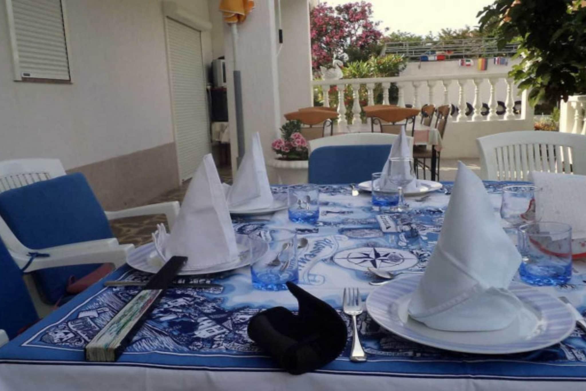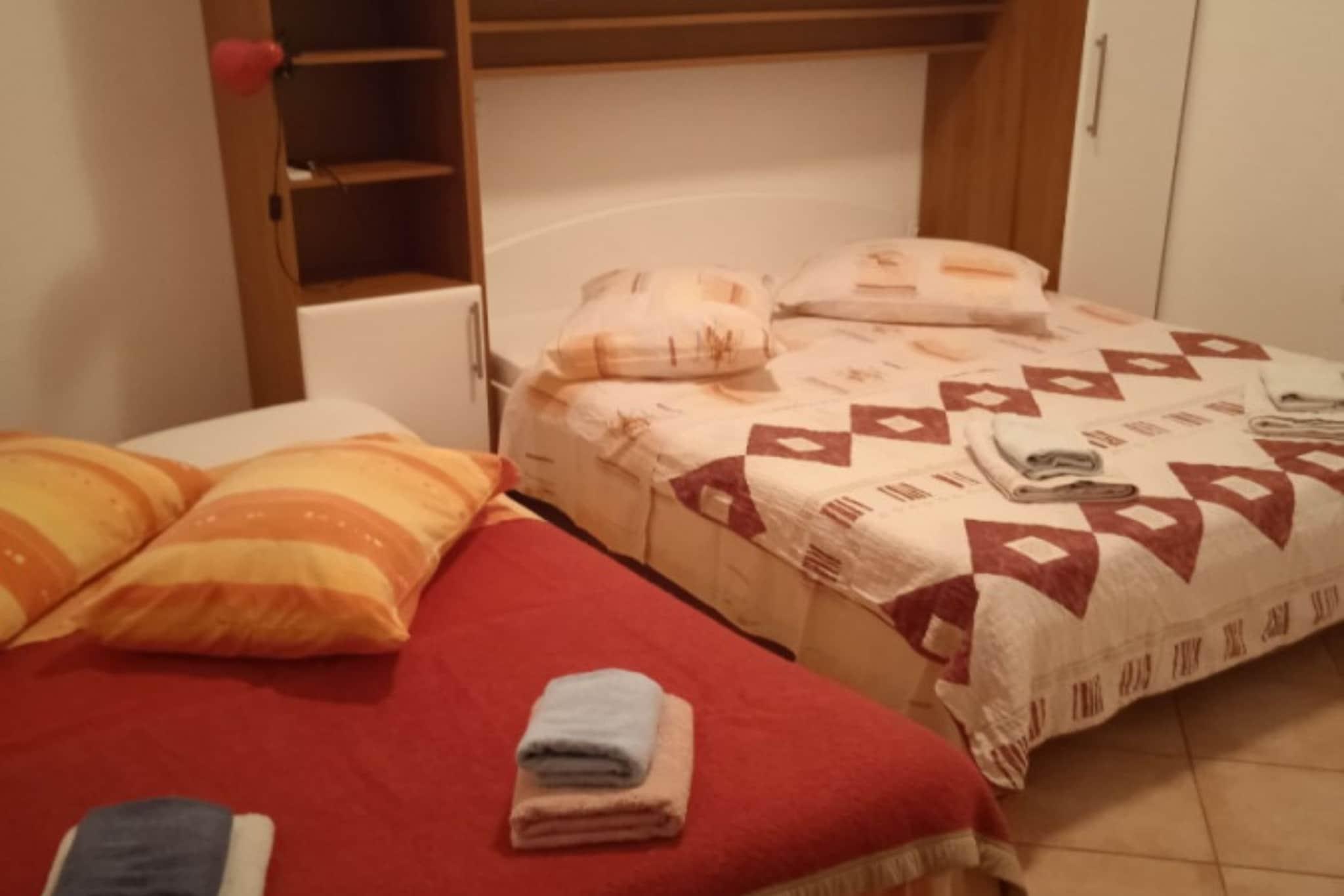 Marjetka Charming Apartments, located on Rab Island in Croatia, offer a comfortable retreat near the sea and the Komrcar nature park. The apartments are conveniently located near Sveti Ivan Beach and Plaza Val Padova Sandy Beach, both within a 10-minute walk. The town center of Rab is also easily accessible, offering various attractions, restaurants, and shops. The hosts reside in the same house (in a separate apartment) and are available to assist guests with information about local attractions, excursions, and dining options.The property features a spacious yard with parking, a terrace equipped with a fireplace, and a garden with fruit trees. Amenities include air conditioning, free Wi-Fi, satellite TVs, and fully equipped kitchens with appliances such as a dishwasher, microwave, and coffee maker. Guests can also enjoy a seasonal outdoor pool and barbecue facilities. Note: Pets are not allowed. Private parking, reservation is not required. Wi-Fi is available throughout the property. Pet fee 9 euros per pet per day. Max 3 pets This three-bedroom can accommodate up to nine guests. It features a Flat screen TV and is combined with a living room and kitchen. The private bathroom is equipped with a shower and toilet. Thanks to its excellent location, everything you'll need for your vacation is just a short walk away from the property. Grocery stores-150.00 m, restaurants—200.00 m. The beach is 600.00 m away from the property. The airport is 65 km away from the property.