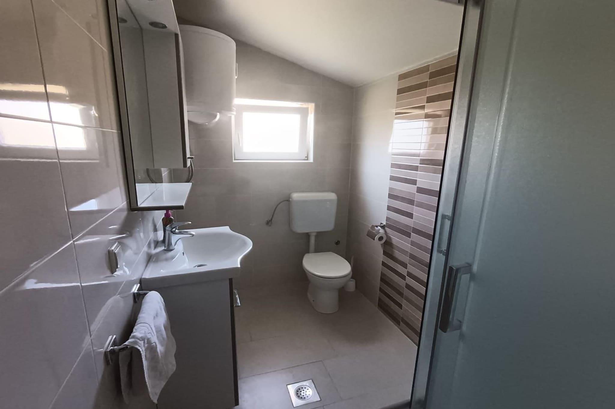Apartment Kurelic, Rab – Primorje-Gorski Kotar, Croatia located on the scenic Adriatic island of Rab, part of Primorje-Gorski Kotar County—a region known for its coastal beauty and lush landscapes. It is situated in Palit (near Rab town centre and Komrcar Park) or nearby villages like Kampor/Supetarska Draga—each with beachfront access and a relaxed, garden-filled atmosphere. Note: Private parking is available, and a reservation is not required. Wi-Fi is available throughout the property. Pets are allowed. This two-bedroom can accommodate up to five guests. It features an SAT/flat-screen TV and is combined with a living room seating area, sofa, and kitchen. The private bathroom is equipped with a shower and toilet. Thanks to its excellent location, everything you'll need for your vacation is just a short walk from the property. Grocery stores, cafes, restaurants—everything is within a 100 m radius. The beach is 100 m away from the property. The airport is 70 km away from the property.