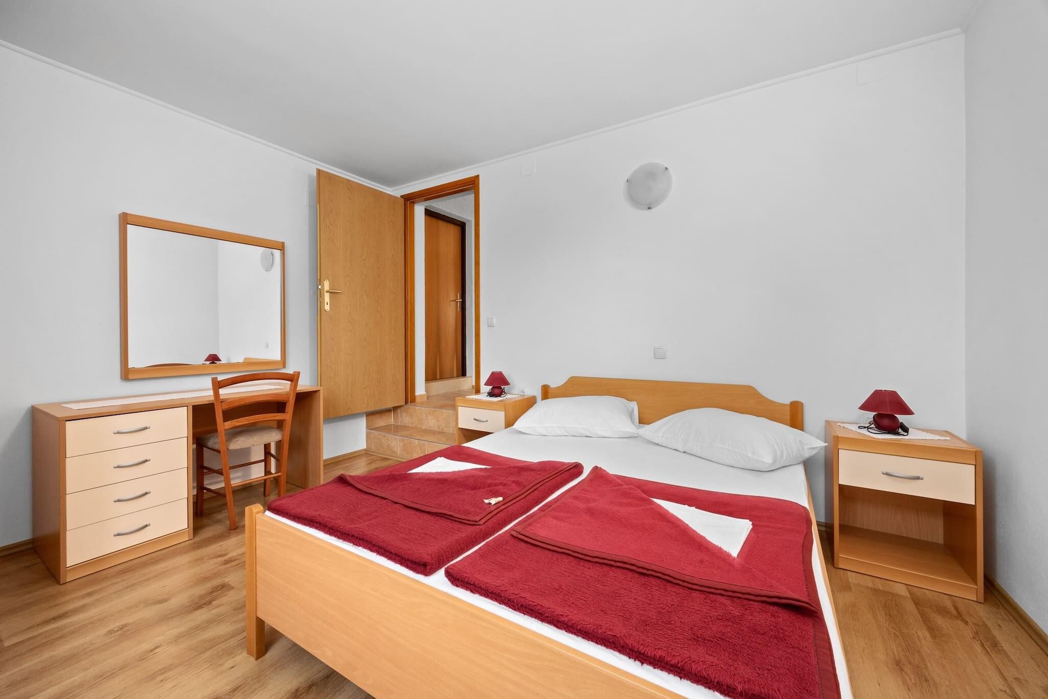 Genießen Sie einen ruhigen Aufenthalt in diesem gut ausgestatteten Apartment mit zwei Schlafzimmern in Barbat, Rab – ideal für Familien oder kleine Gruppen mit bis zu fünf Gästen. Es verfügt über zwei Queensize-Betten und ein Einzelschlafsofa sowie Klimaanlage, WLAN und Sat-TV. Der geräumige private Balkon bietet einen atemberaubenden Meerblick – ideal für einen Morgenkaffee oder einen entspannten Sonnenuntergang. Das Apartment verfügt über eine voll ausgestattete Küche mit Herd, Kühlschrank, Mikrowelle und Kaffeemaschine sowie ein Badezimmer mit Dusche, Haartrockner und Pflegeprodukten. Für längere Aufenthalte steht auf Anfrage eine Waschmaschine zur Verfügung. Kostenlose Privatparkplätze stehen zur Verfügung, und ein Wäscheservice kann organisiert werden. Das Apartment liegt nur 500 Meter vom Sandstrand entfernt und in der Nähe lokaler Sehenswürdigkeiten wie den Ruinen der Festung St. Damian und der charmanten Altstadt von Rab. Gäste können auch ein kleines Boot mieten (Führerschein erforderlich), um die umliegenden Inseln zu erkunden. Mit seiner ruhigen Lage und den praktischen Annehmlichkeiten ist dieses Nichtraucher- und haustierfreie Apartment ein idealer Rückzugsort an der Küste.