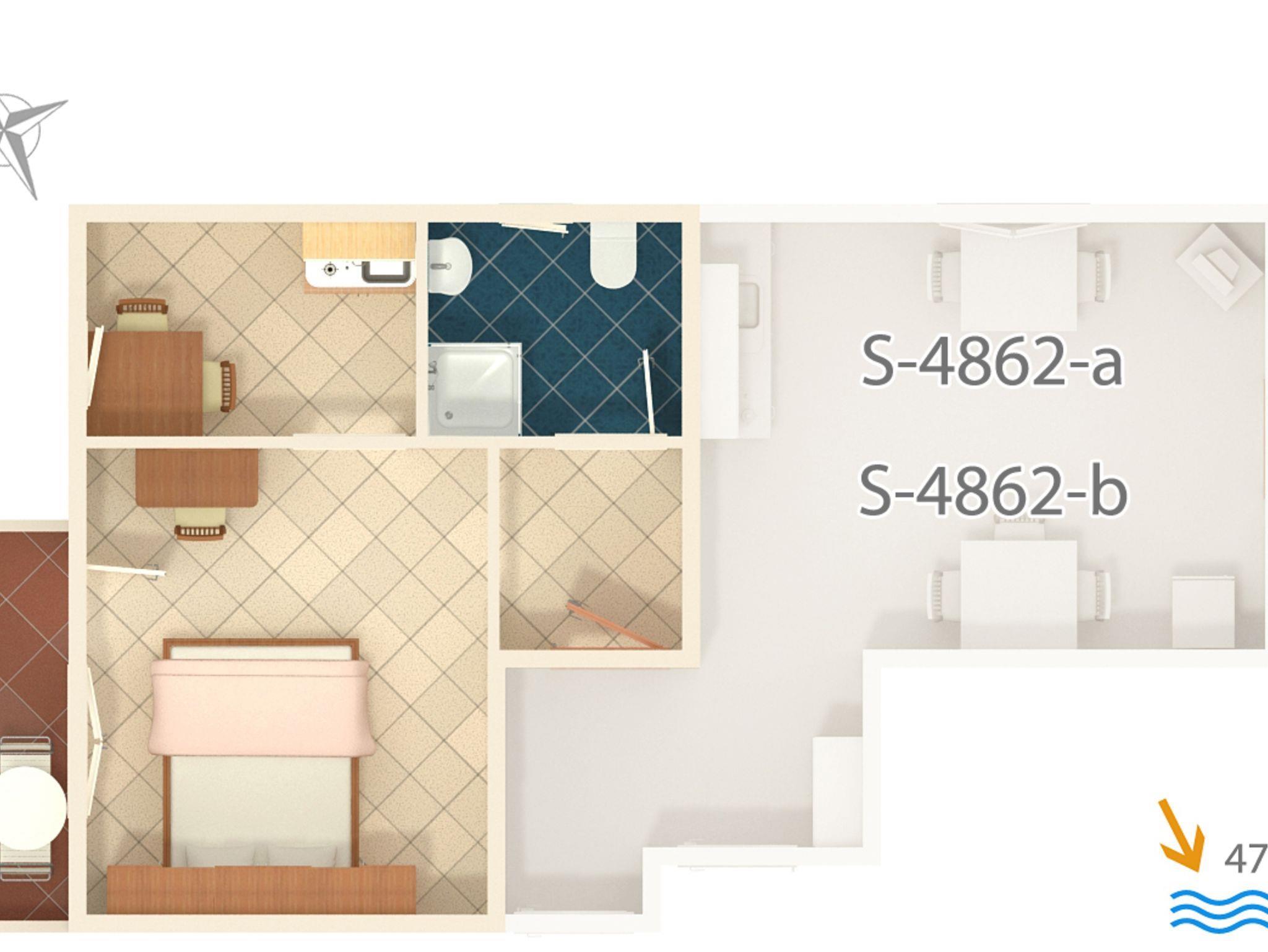 Studio bietet Platz für 2 Gäste. Die Betten sind in Schlafzimmern, die es 1 gibt, innerhalb einer Gesamtfläche von 16m2, angeordnet. Die Gäste haben einen eigenen Balkon zur Verfügung, auf der sie in warmen Sommernächten genießen können. Das Studio-Apartment bietet Meerblick. Es ist erlaubt, Speisen auf dem Gemeinschafts-Grill vorzubereiten. IM PREIS INBEGRIFFEN: Kurtaxe, Endreinigung, Klimatisierung, Parkplatz, Internet. VERBINDLICHE ZUSÄTZLICHE KOSTEN: Aufzahlung für Kurzaufenthalte (prozentualer Zuschlag pro Nächtigungsanzahl: 30% - 1, 20% - 2, 10% - 3). UNVERBINDLICHE ZUSÄTZLICHE KOSTEN: Wäschewaschen (5,00 € Waschen). Die Verfügbarkeit zusätzlicher Dienstleistungen in Ihrem reservierten Termin und die Preise derselben (falls nicht aufgeführt) müssen im Voraus überprüft werden. Zusätzliche Dienstleistungen die in der Zahlungsaufforderung nicht aufgeführt sind werden direkt beim Vermieter bezahlt, angenommen der Gast nutzt auch diese.