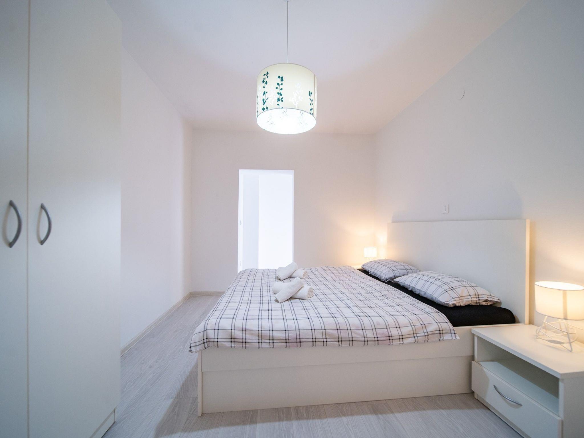 Ferienwohnung bietet Platz für 4 Gäste. Die Betten sind in Schlafzimmern, die es 2 gibt, innerhalb einer Gesamtfläche von 63m2, angeordnet. Die Gäste haben einen eigenen Balkon zur Verfügung, auf der sie in warmen Sommernächten genießen können. Es ist erlaubt, Speisen auf dem Gemeinschafts-Grill vorzubereiten. IM PREIS INBEGRIFFEN: Kurtaxe, Endreinigung, Klimatisierung, Zentralheizung, Parkplatz, Internet, Kinderbett, Föhn. VERBINDLICHE ZUSÄTZLICHE KOSTEN: Aufzahlung für Kurzaufenthalte (prozentualer Zuschlag pro Nächtigungsanzahl: 30% - 1, 20% - 2, 10% - 3). UNVERBINDLICHE ZUSÄTZLICHE KOSTEN: Wäschewaschen (8,00 € Waschen). Die Verfügbarkeit zusätzlicher Dienstleistungen in Ihrem reservierten Termin und die Preise derselben (falls nicht aufgeführt) müssen im Voraus überprüft werden. Zusätzliche Dienstleistungen die in der Zahlungsaufforderung nicht aufgeführt sind werden direkt beim Vermieter bezahlt, angenommen der Gast nutzt auch diese.