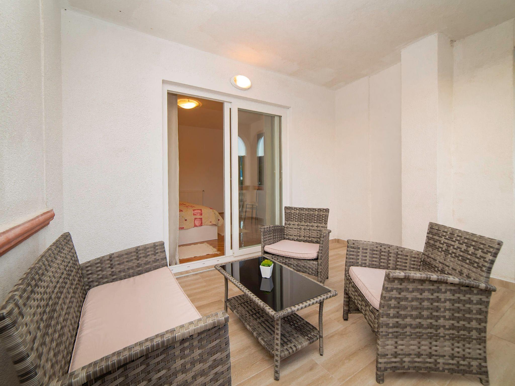 Ferienwohnung bietet Platz für 4 Gäste. Die Betten sind in Schlafzimmern, die es 2 gibt, innerhalb einer Gesamtfläche von 90m2, angeordnet. Die Gäste haben eine eigene Terrasse zur Verfügung, auf der sie in warmen Sommernächten genießen können. Das Apartment bietet Meerblick. Es ist erlaubt, Speisen auf dem Gemeinschafts-Grill vorzubereiten. IM PREIS INBEGRIFFEN: Kurtaxe, Endreinigung, Klimatisierung, Zentralheizung, Parkplatz, Internet, Föhn. VERBINDLICHE ZUSÄTZLICHE KOSTEN: Aufzahlung für Kurzaufenthalte (prozentualer Zuschlag pro Nächtigungsanzahl: 30% - 1, 20% - 2, 10% - 3). UNVERBINDLICHE ZUSÄTZLICHE KOSTEN: Zusatzbett (6,00 € pro Nacht). Die Verfügbarkeit zusätzlicher Dienstleistungen in Ihrem reservierten Termin und die Preise derselben (falls nicht aufgeführt) müssen im Voraus überprüft werden. Zusätzliche Dienstleistungen die in der Zahlungsaufforderung nicht aufgeführt sind werden direkt beim Vermieter bezahlt, angenommen der Gast nutzt auch diese.