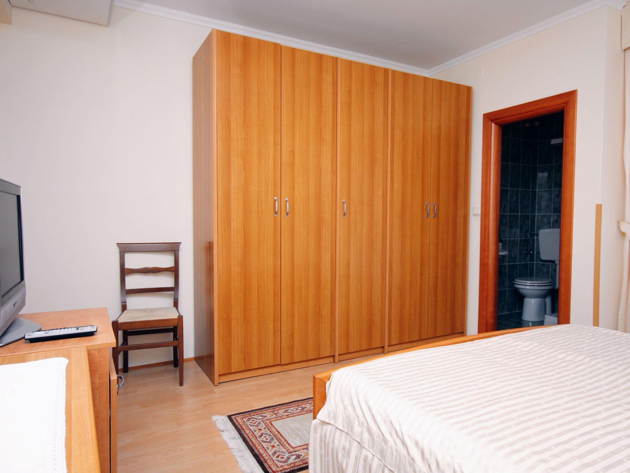 Zimmer bietet Platz für 2 Gäste. Die Betten sind in Schlafzimmern, die es 1 gibt, innerhalb einer Gesamtfläche von 20m2, angeordnet. Die Gäste haben eine eigene Terrasse zur Verfügung, auf der sie in warmen Sommernächten genießen können. Das Zimmer bietet Meerblick. Es ist erlaubt, Speisen auf dem Gemeinschafts-Grill vorzubereiten. In der Unterkunftseinheit besteht die Möglichkeit des Mitbringens von Haustieren gegen Aufpreis. Die reservierte Unterkunftseinheit ist ein Zimmer mit eigenem Badezimmer ohne die Möglichkeit der Nutzung einer Küche. IM PREIS INBEGRIFFEN: Kurtaxe, Endreinigung, Klimatisierung, Parkplatz, Garage, Internet, Kinderbett, Föhn. VERBINDLICHE ZUSÄTZLICHE KOSTEN: Aufzahlung für Kurzaufenthalte (prozentualer Zuschlag pro Nächtigungsanzahl: 30% - 1, 20% - 2, 10% - 3). UNVERBINDLICHE ZUSÄTZLICHE KOSTEN: Frühstück (15,00 €, 50% Nachlass für Kinder zwischen 4 und 12 Jahren, Kinder bis 4 Jahre sind frei.), Bootsanlegeplatz (6,00 € pro Nacht), Haustiere (10,00 € pro Nacht). Die Verfügbarkeit zusätzlicher Dienstleistungen in Ihrem reservierten Termin und die Preise derselben (falls nicht aufgeführt) müssen im Voraus überprüft werden. Zusätzliche Dienstleistungen die in der Zahlungsaufforderung nicht aufgeführt sind werden direkt beim Vermieter bezahlt, angenommen der Gast nutzt auch diese.