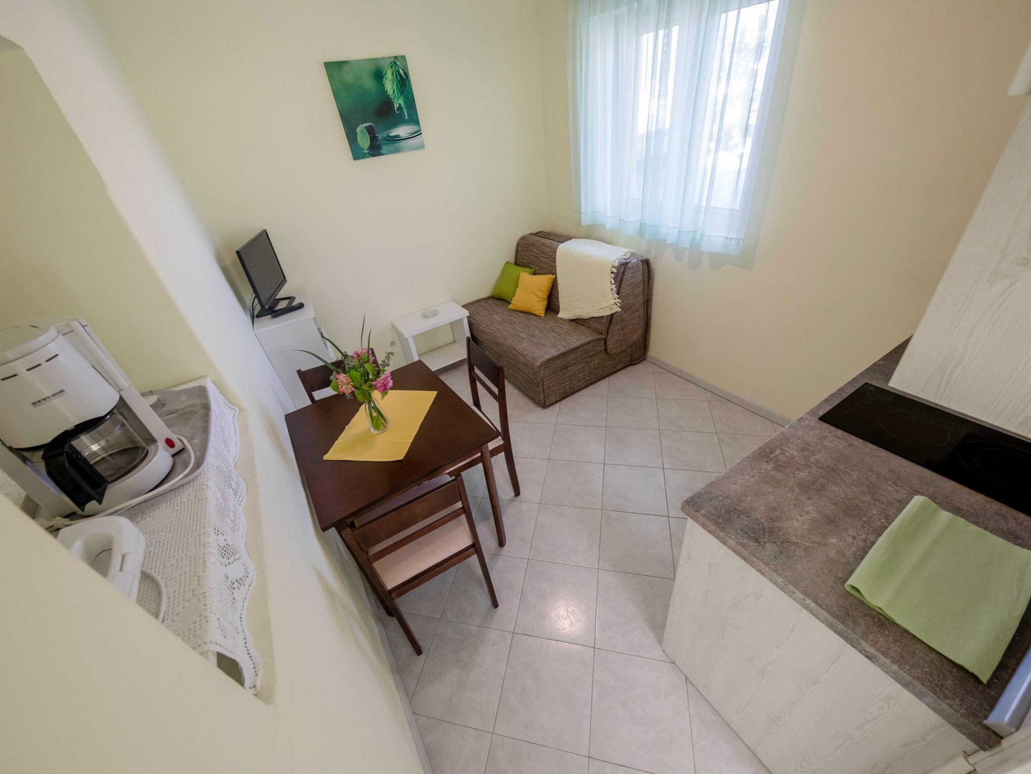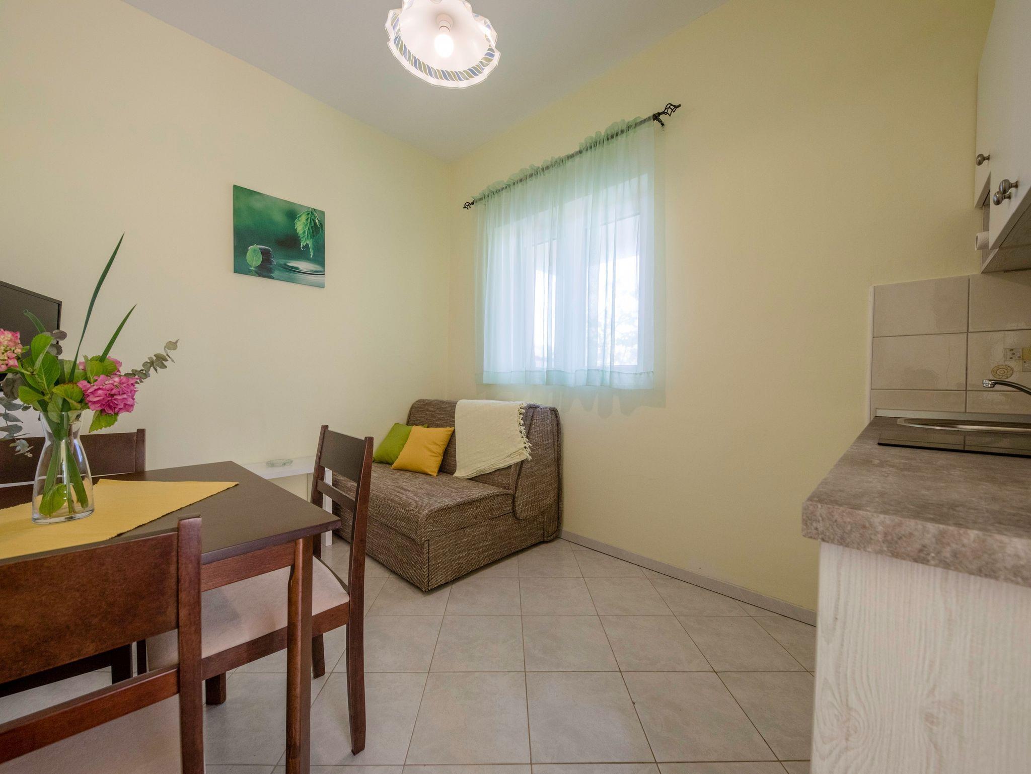 Ferienwohnung bietet Platz für 2 Gäste. Die Betten sind in Schlafzimmern, die es 1 gibt, innerhalb einer Gesamtfläche von 32m2, angeordnet. Die Gäste haben einen eigenen Balkon zur Verfügung, auf der sie in warmen Sommernächten genießen können. Das Apartment bietet Meerblick. Es ist erlaubt, Speisen auf dem Gemeinschafts-Grill vorzubereiten. In der Unterkunftseinheit besteht die Möglichkeit des Mitbringens von Haustieren gegen Aufpreis. IM PREIS INBEGRIFFEN: Kurtaxe, Endreinigung, Klimatisierung, Parkplatz, Internet, Wäschewaschen, Kinderbett, Bügeleisen, Föhn. VERBINDLICHE ZUSÄTZLICHE KOSTEN: Aufzahlung für Kurzaufenthalte (prozentualer Zuschlag pro Nächtigungsanzahl: 30% - 1, 20% - 2, 10% - 3). UNVERBINDLICHE ZUSÄTZLICHE KOSTEN: Bootsanlegeplatz (5,00 € pro Nacht), Haustiere (5,00 € pro Nacht). Die Verfügbarkeit zusätzlicher Dienstleistungen in Ihrem reservierten Termin und die Preise derselben (falls nicht aufgeführt) müssen im Voraus überprüft werden. Zusätzliche Dienstleistungen die in der Zahlungsaufforderung nicht aufgeführt sind werden direkt beim Vermieter bezahlt, angenommen der Gast nutzt auch diese.
