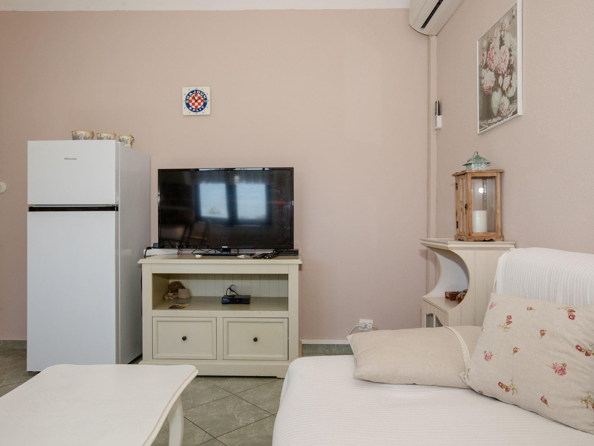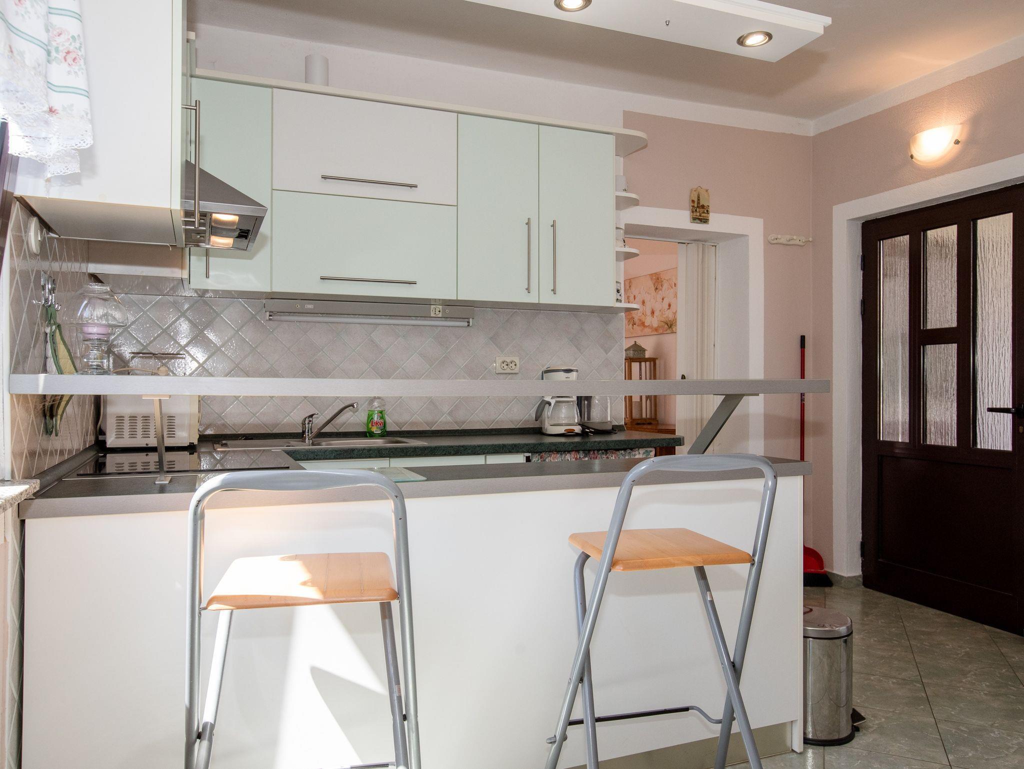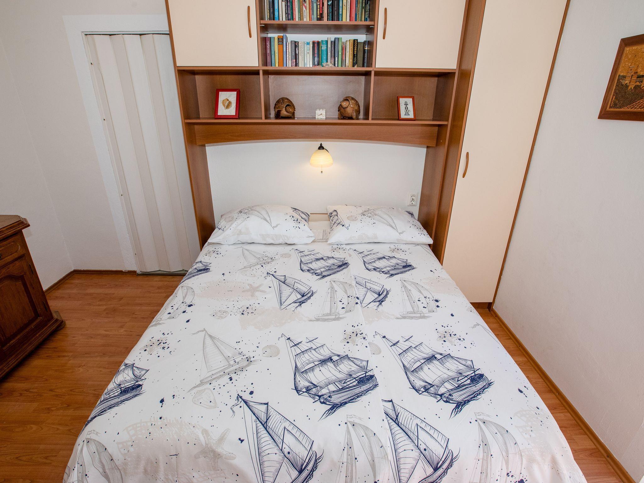Ferienwohnung bietet Platz für 4 Gäste. Die Betten sind in Schlafzimmern, die es 1 gibt, und in Wohnzimmer, innerhalb einer Gesamtfläche von 35m2, angeordnet. Die Gäste haben eine eigene Terrasse zur Verfügung, auf der sie in warmen Sommernächten genießen können. Das Apartment bietet Meerblick. Es ist erlaubt, Speisen auf dem Gemeinschafts-Grill vorzubereiten. In der Unterkunftseinheit besteht die Möglichkeit des Mitbringens von Haustieren gegen Aufpreis. IM PREIS INBEGRIFFEN: Kurtaxe, Endreinigung, Klimatisierung, Parkplatz, Internet, Kinderbett. VERBINDLICHE ZUSÄTZLICHE KOSTEN: Aufzahlung für Kurzaufenthalte (prozentualer Zuschlag pro Nächtigungsanzahl: 30% - 1, 20% - 2, 10% - 3). UNVERBINDLICHE ZUSÄTZLICHE KOSTEN: Haustiere (7,00 € pro Nacht). Die Verfügbarkeit zusätzlicher Dienstleistungen in Ihrem reservierten Termin und die Preise derselben (falls nicht aufgeführt) müssen im Voraus überprüft werden. Zusätzliche Dienstleistungen die in der Zahlungsaufforderung nicht aufgeführt sind werden direkt beim Vermieter bezahlt, angenommen der Gast nutzt auch diese.