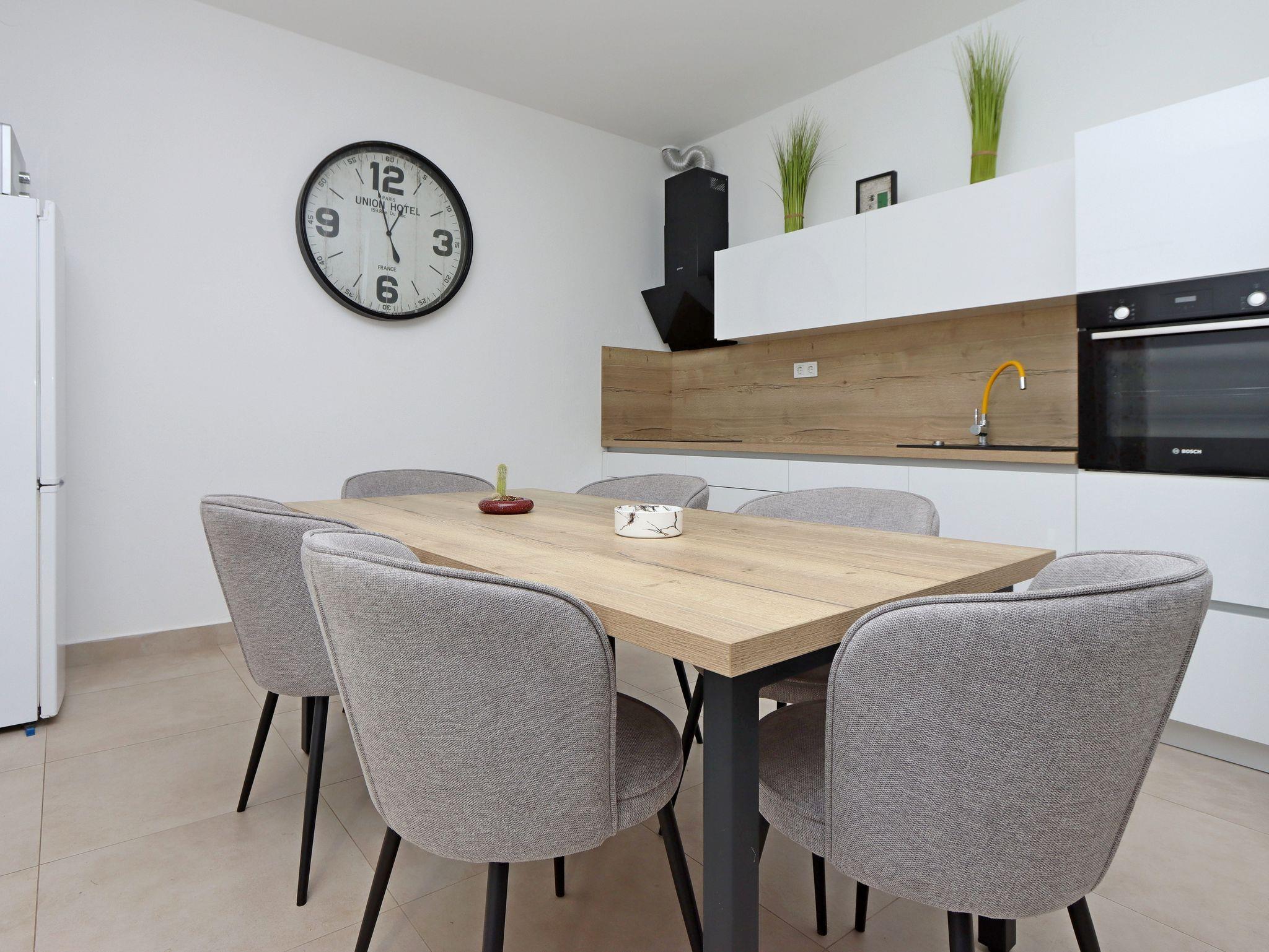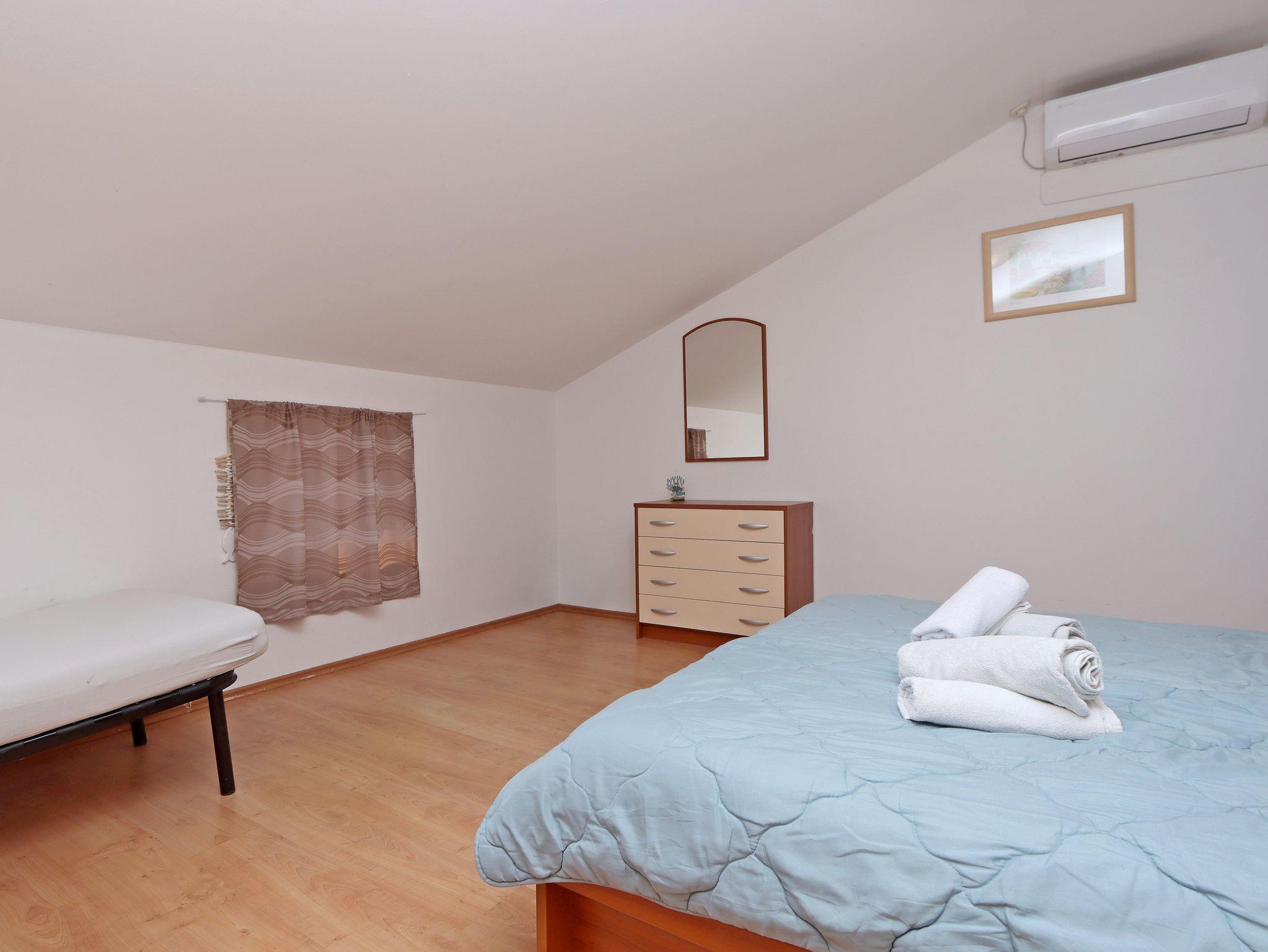 Haus bietet Platz für 6 Gäste. Die Betten sind in Schlafzimmern, die es 2 gibt, und in Wohnzimmer, innerhalb einer Gesamtfläche von 81m2, angeordnet. Die Gäste haben eine eigene Terrasse zur Verfügung, auf der sie in warmen Sommernächten genießen können. Das Haus bietet Meerblick. Für vollen Genuss und Entspannung gibt es einen privaten Grill für Gäste dieser Unterkunft. In der Unterkunftseinheit besteht die Möglichkeit des Mitbringens von Haustieren gegen Aufpreis. IM PREIS INBEGRIFFEN: Kurtaxe, Endreinigung, Klimatisierung, Parkplatz, Internet, Sonnenschirm. UNVERBINDLICHE ZUSÄTZLICHE KOSTEN: Bootsanlegeplatz (15,00 € pro Nacht), Haustiere (5,00 € pro Nacht). Die Verfügbarkeit zusätzlicher Dienstleistungen in Ihrem reservierten Termin und die Preise derselben (falls nicht aufgeführt) müssen im Voraus überprüft werden. Zusätzliche Dienstleistungen die in der Zahlungsaufforderung nicht aufgeführt sind werden direkt beim Vermieter bezahlt, angenommen der Gast nutzt auch diese.