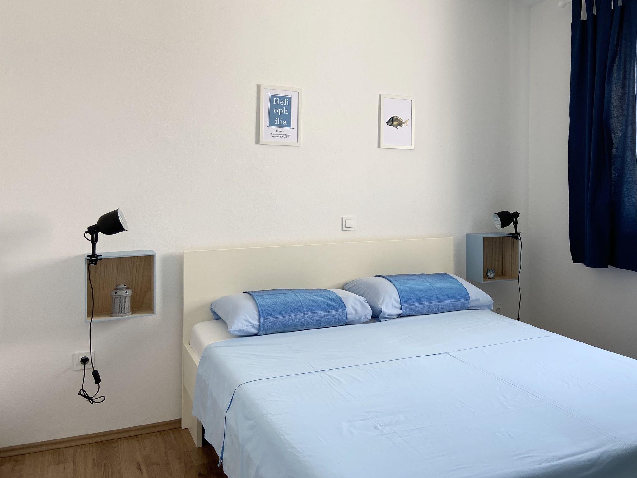 Ferienwohnung bietet Platz für 4 Gäste. Die Betten sind in Schlafzimmern, die es 2 gibt, innerhalb einer Gesamtfläche von 53m2, angeordnet. Die Gäste haben eine eigene Terrasse zur Verfügung, auf der sie in warmen Sommernächten genießen können. Das Apartment bietet Meerblick. Es ist erlaubt, Speisen auf dem Gemeinschafts-Grill vorzubereiten. IM PREIS INBEGRIFFEN: Kurtaxe, Endreinigung, Klimatisierung, Parkplatz, Internet, Föhn, tragbarer Grill. VERBINDLICHE ZUSÄTZLICHE KOSTEN: Aufzahlung für Kurzaufenthalte (prozentualer Zuschlag pro Nächtigungsanzahl: 30% - 1, 20% - 2, 10% - 3). UNVERBINDLICHE ZUSÄTZLICHE KOSTEN: Wäschewaschen (7,00 € Waschen). Die Verfügbarkeit zusätzlicher Dienstleistungen in Ihrem reservierten Termin und die Preise derselben (falls nicht aufgeführt) müssen im Voraus überprüft werden. Zusätzliche Dienstleistungen die in der Zahlungsaufforderung nicht aufgeführt sind werden direkt beim Vermieter bezahlt, angenommen der Gast nutzt auch diese.
