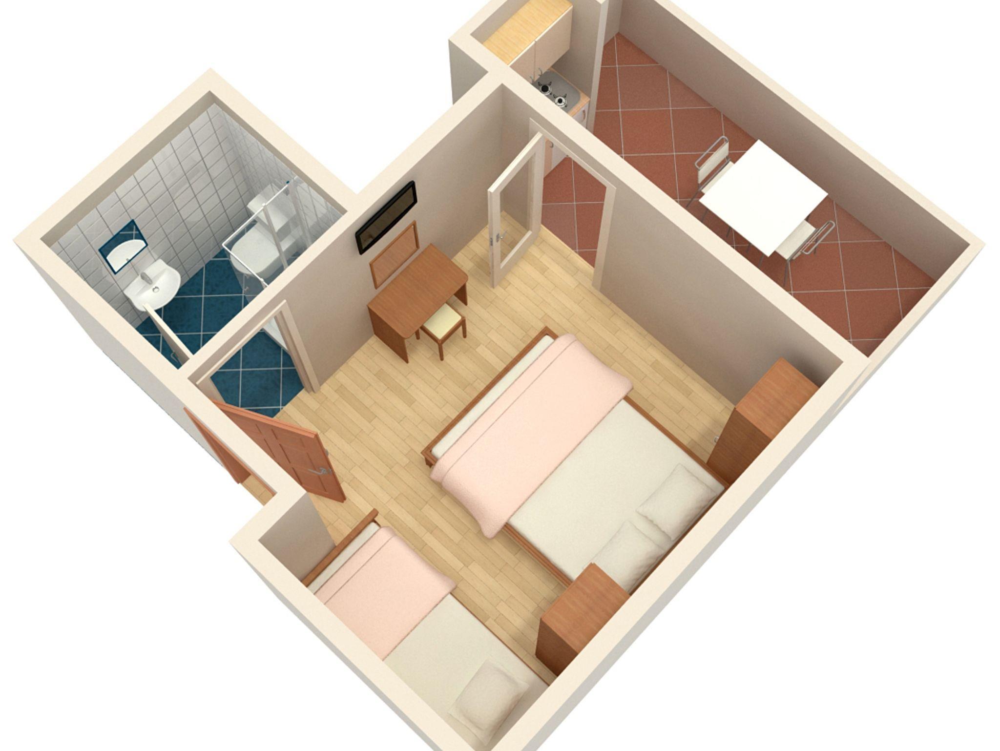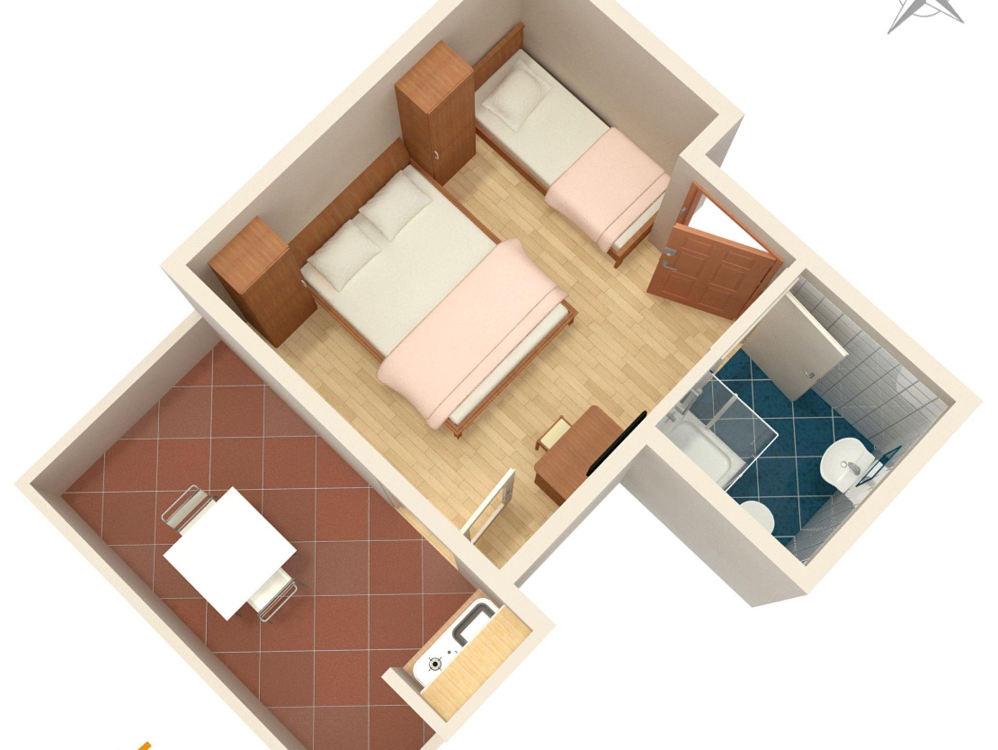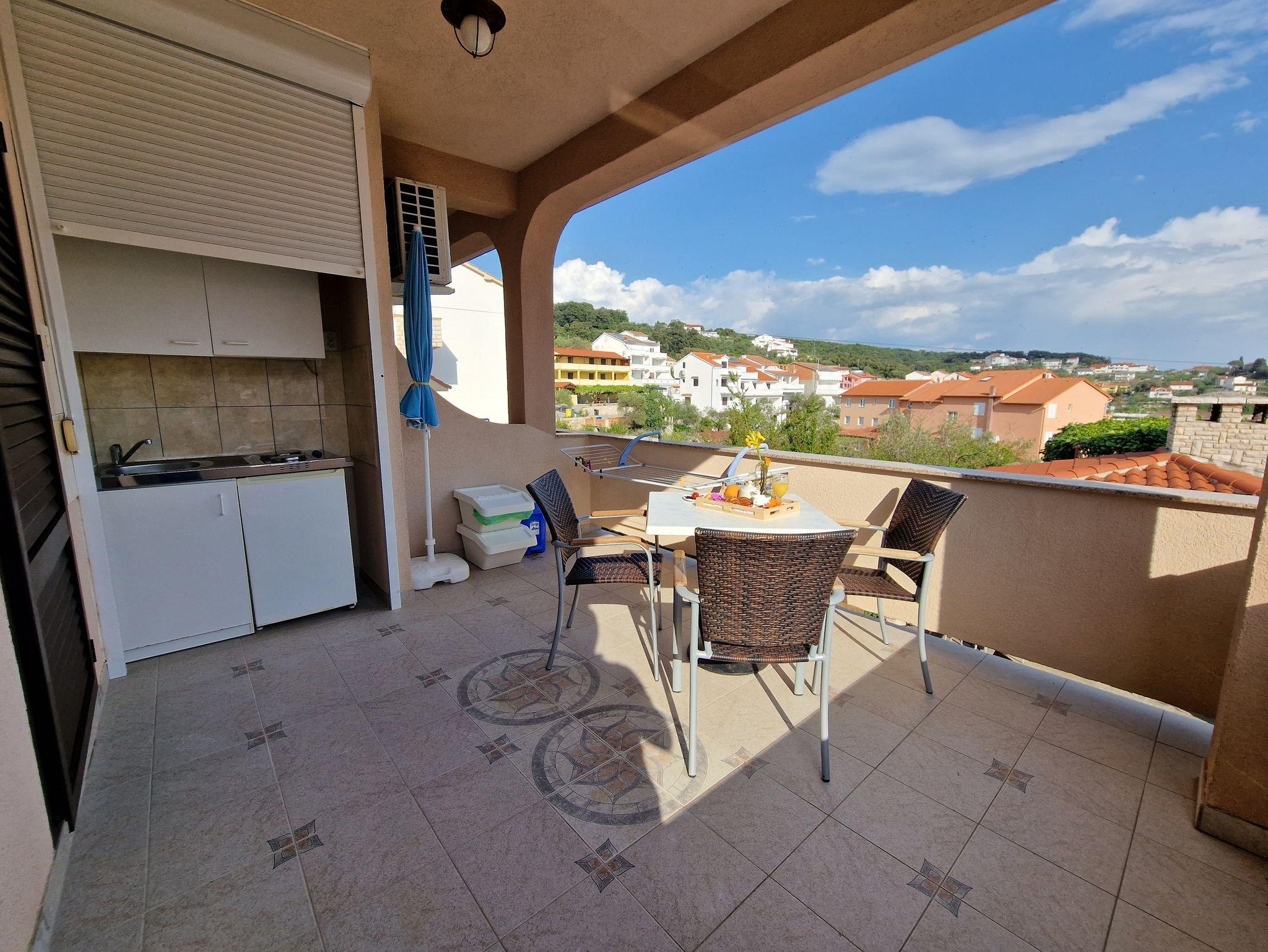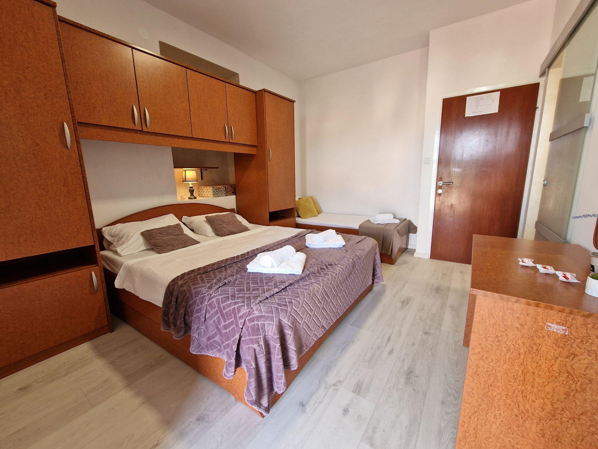 Studio bietet Platz für 3 Gäste. Die Betten sind in Schlafzimmern, die es 1 gibt, innerhalb einer Gesamtfläche von 16m2, angeordnet. Die Gäste haben eine eigene Terrasse zur Verfügung, auf der sie in warmen Sommernächten genießen können. Das Studio-Apartment bietet Meerblick. Es ist erlaubt, Speisen auf dem Gemeinschafts-Grill vorzubereiten. In der Unterkunftseinheit besteht die Möglichkeit des Mitbringens von Haustieren gegen Aufpreis. IM PREIS INBEGRIFFEN: Kurtaxe, Endreinigung, Klimatisierung, Parkplatz, Garage, Internet, Bügeleisen, Bügelbrett, Föhn. VERBINDLICHE ZUSÄTZLICHE KOSTEN: Aufzahlung für Kurzaufenthalte (prozentualer Zuschlag pro Nächtigungsanzahl: 30% - 1, 20% - 2, 10% - 3). UNVERBINDLICHE ZUSÄTZLICHE KOSTEN: Frühstück (8,00 €, 50% Nachlass für Kinder zwischen 4 und 12 Jahren, Kinder bis 4 Jahre sind frei.), Bootsanlegeplatz (10,00 € pro Nacht), Haustiere (5,00 € pro Nacht). Die Verfügbarkeit zusätzlicher Dienstleistungen in Ihrem reservierten Termin und die Preise derselben (falls nicht aufgeführt) müssen im Voraus überprüft werden. Zusätzliche Dienstleistungen die in der Zahlungsaufforderung nicht aufgeführt sind werden direkt beim Vermieter bezahlt, angenommen der Gast nutzt auch diese.