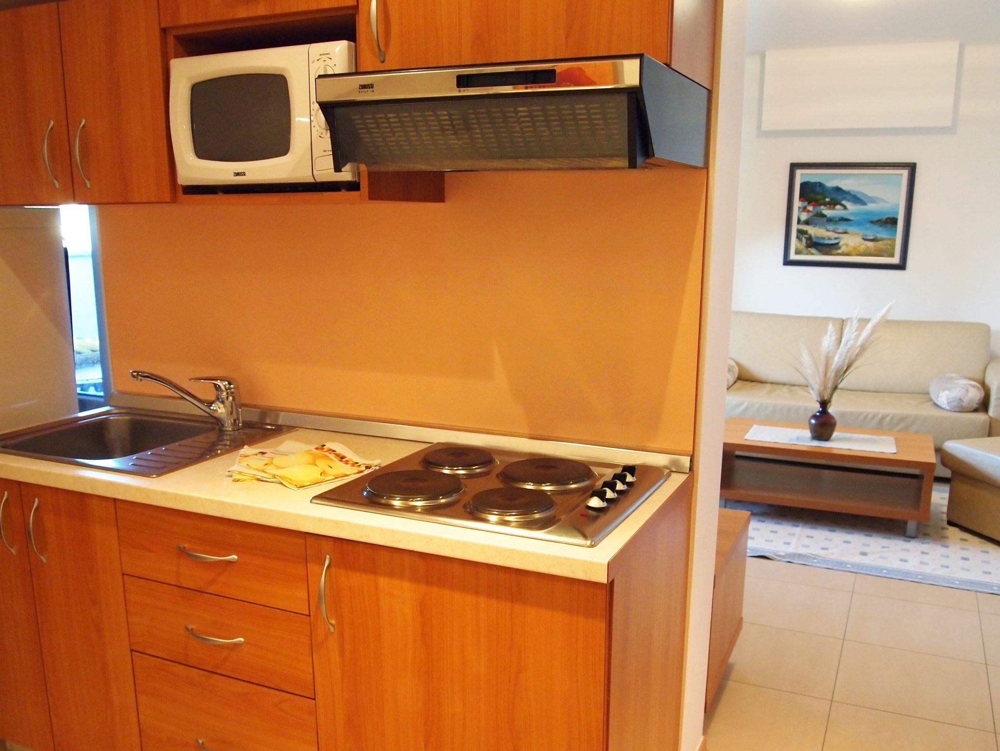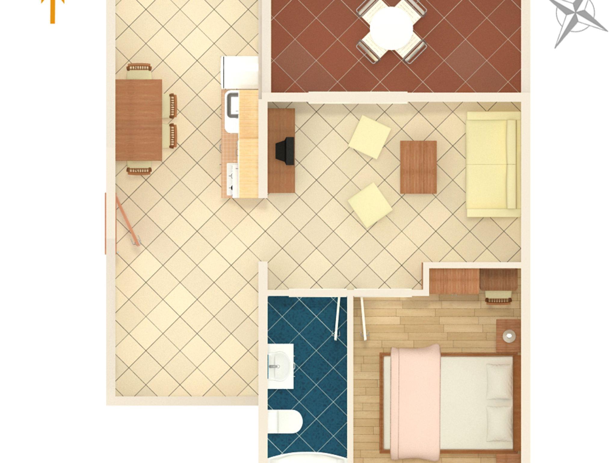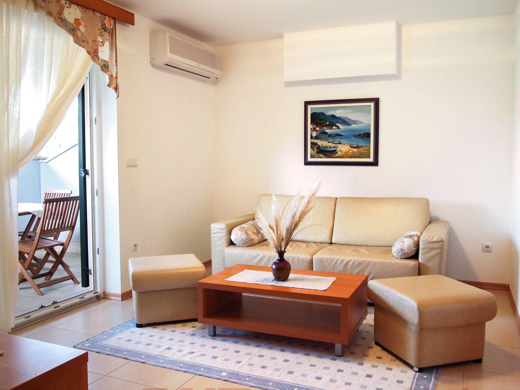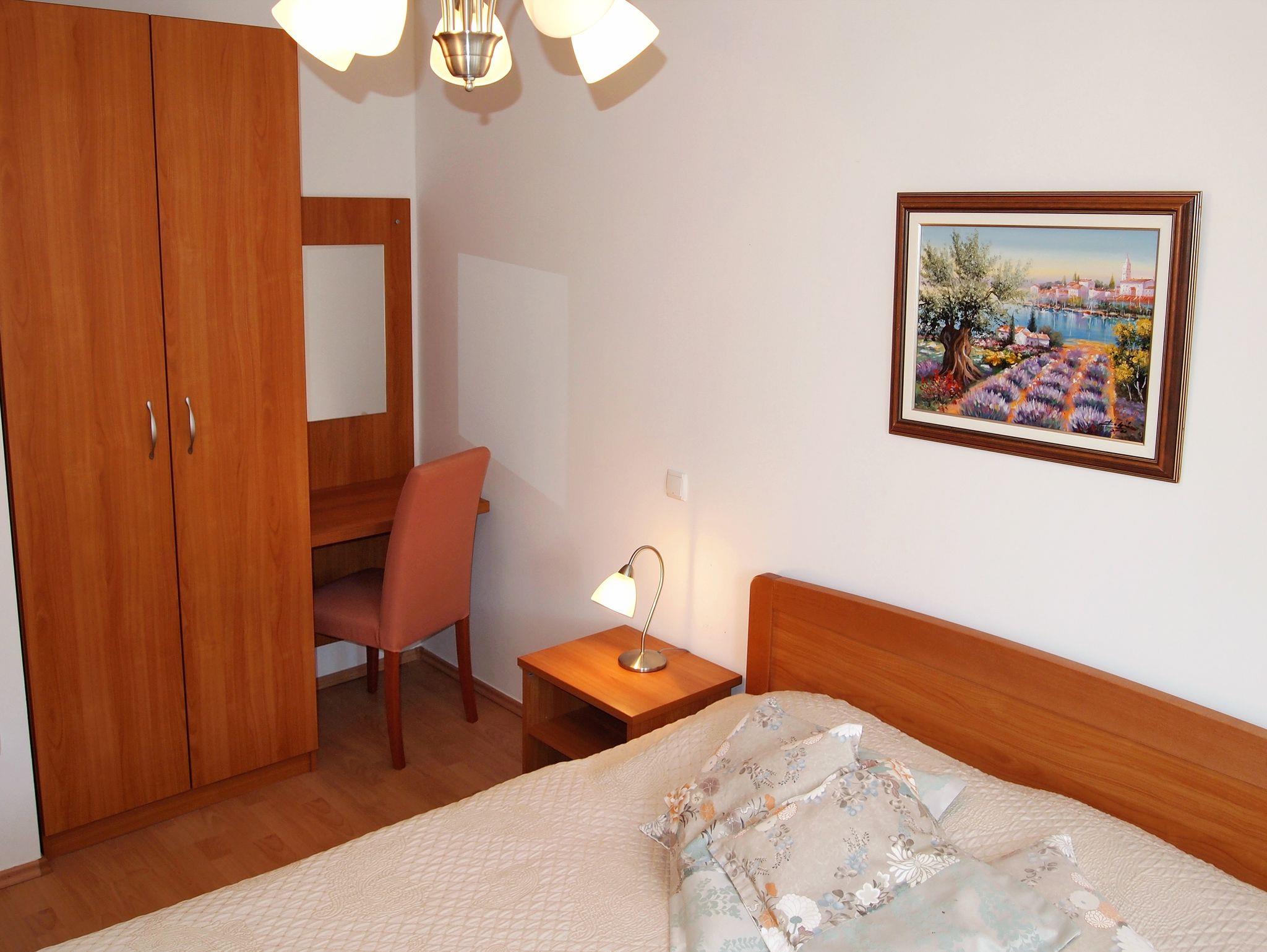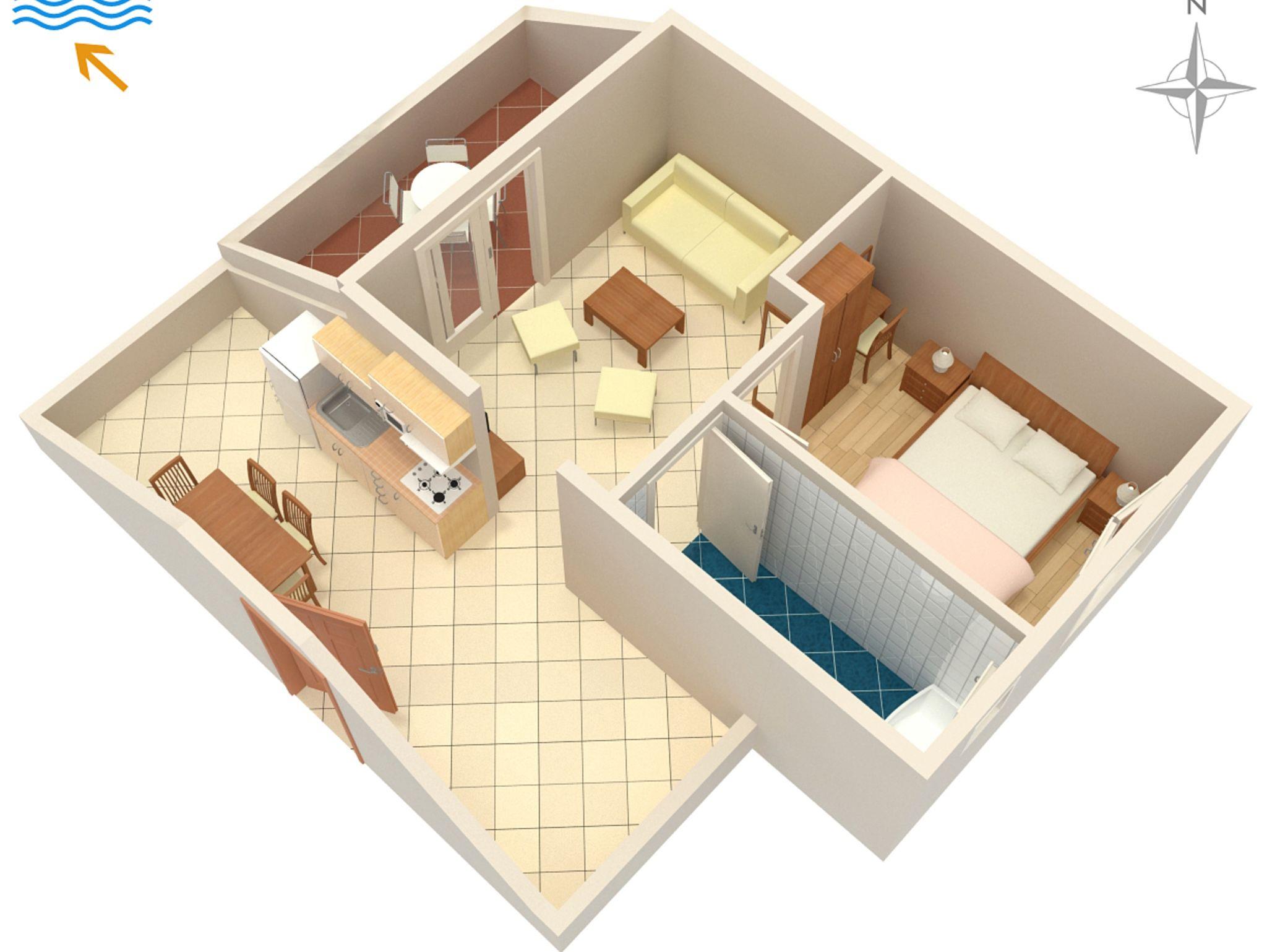 Ferienwohnung bietet Platz für 4 Gäste. Die Betten sind in Schlafzimmern, die es 1 gibt, und in Wohnzimmer, innerhalb einer Gesamtfläche von 42m2, angeordnet. Die Gäste haben eine eigene Terrasse zur Verfügung, auf der sie in warmen Sommernächten genießen können. Das Apartment bietet Meerblick. Es ist erlaubt, Speisen auf dem Gemeinschafts-Grill vorzubereiten. Während ihres Aufenthalts können Gäste das gemeinsam zur Nutzung stehende Schwimmbad benutzen. In der gebuchten Unterkunftseinheit zahlt man am Ort ein Depositum ( der Preis ist an der Internetseite angeführt ). IM PREIS INBEGRIFFEN: Endreinigung, Klimatisierung, Pool, Parkplatz, Internet, Föhn. VERBINDLICHE ZUSÄTZLICHE KOSTEN: Kurtaxe (Erwachsene 0,93 € - 1,90 € Nacht/Person, Kinderermäßigung 12 - 17 Jahre), Kaution (100,00 € Einmalzahlung). Die Verfügbarkeit zusätzlicher Dienstleistungen in Ihrem reservierten Termin und die Preise derselben (falls nicht aufgeführt) müssen im Voraus überprüft werden. Zusätzliche Dienstleistungen die in der Zahlungsaufforderung nicht aufgeführt sind werden direkt beim Vermieter bezahlt, angenommen der Gast nutzt auch diese.