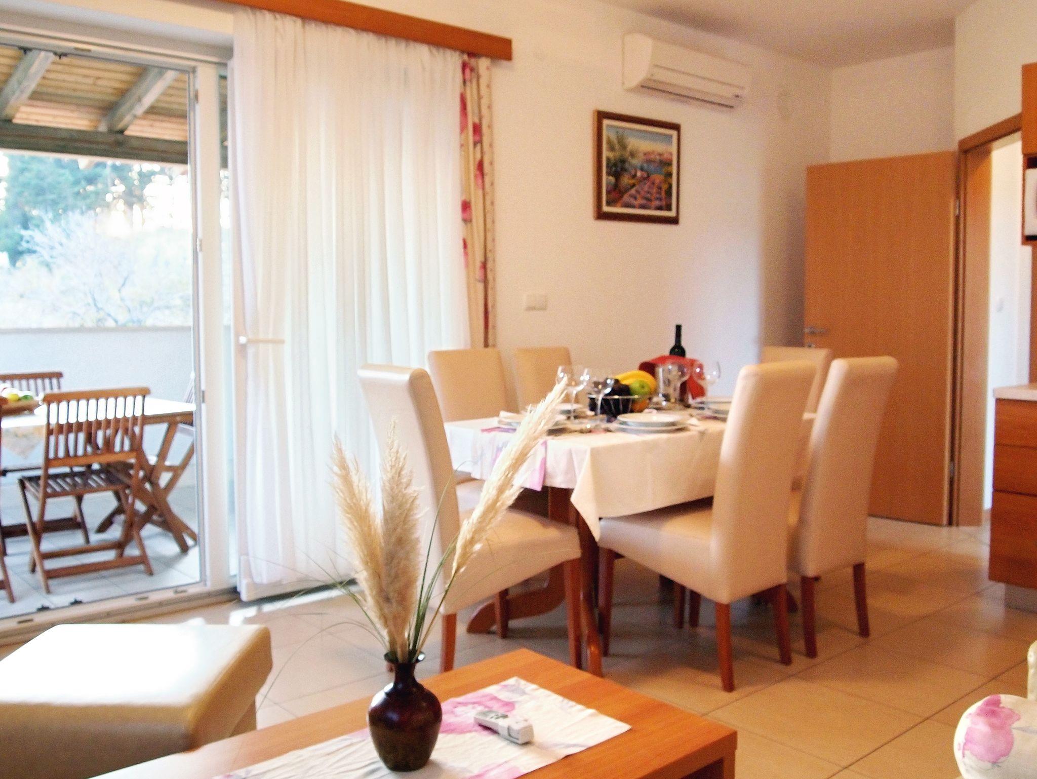 Ferienwohnung bietet Platz für 6 Gäste. Die Betten sind in Schlafzimmern, die es 2 gibt, und in Wohnzimmer, innerhalb einer Gesamtfläche von 59m2, angeordnet. Die Gäste haben eine eigene Terrasse zur Verfügung, auf der sie in warmen Sommernächten genießen können. Das Apartment bietet Meerblick. Es ist erlaubt, Speisen auf dem Gemeinschafts-Grill vorzubereiten. Während ihres Aufenthalts können Gäste das gemeinsam zur Nutzung stehende Schwimmbad benutzen. In der gebuchten Unterkunftseinheit zahlt man am Ort ein Depositum ( der Preis ist an der Internetseite angeführt ). IM PREIS INBEGRIFFEN: Endreinigung, Klimatisierung, Pool, Parkplatz, Internet, Föhn. VERBINDLICHE ZUSÄTZLICHE KOSTEN: Kurtaxe (Erwachsene 0,93 € - 1,90 € Nacht/Person, Kinderermäßigung 12 - 17 Jahre), Kaution (100,00 € Einmalzahlung). Die Verfügbarkeit zusätzlicher Dienstleistungen in Ihrem reservierten Termin und die Preise derselben (falls nicht aufgeführt) müssen im Voraus überprüft werden. Zusätzliche Dienstleistungen die in der Zahlungsaufforderung nicht aufgeführt sind werden direkt beim Vermieter bezahlt, angenommen der Gast nutzt auch diese.