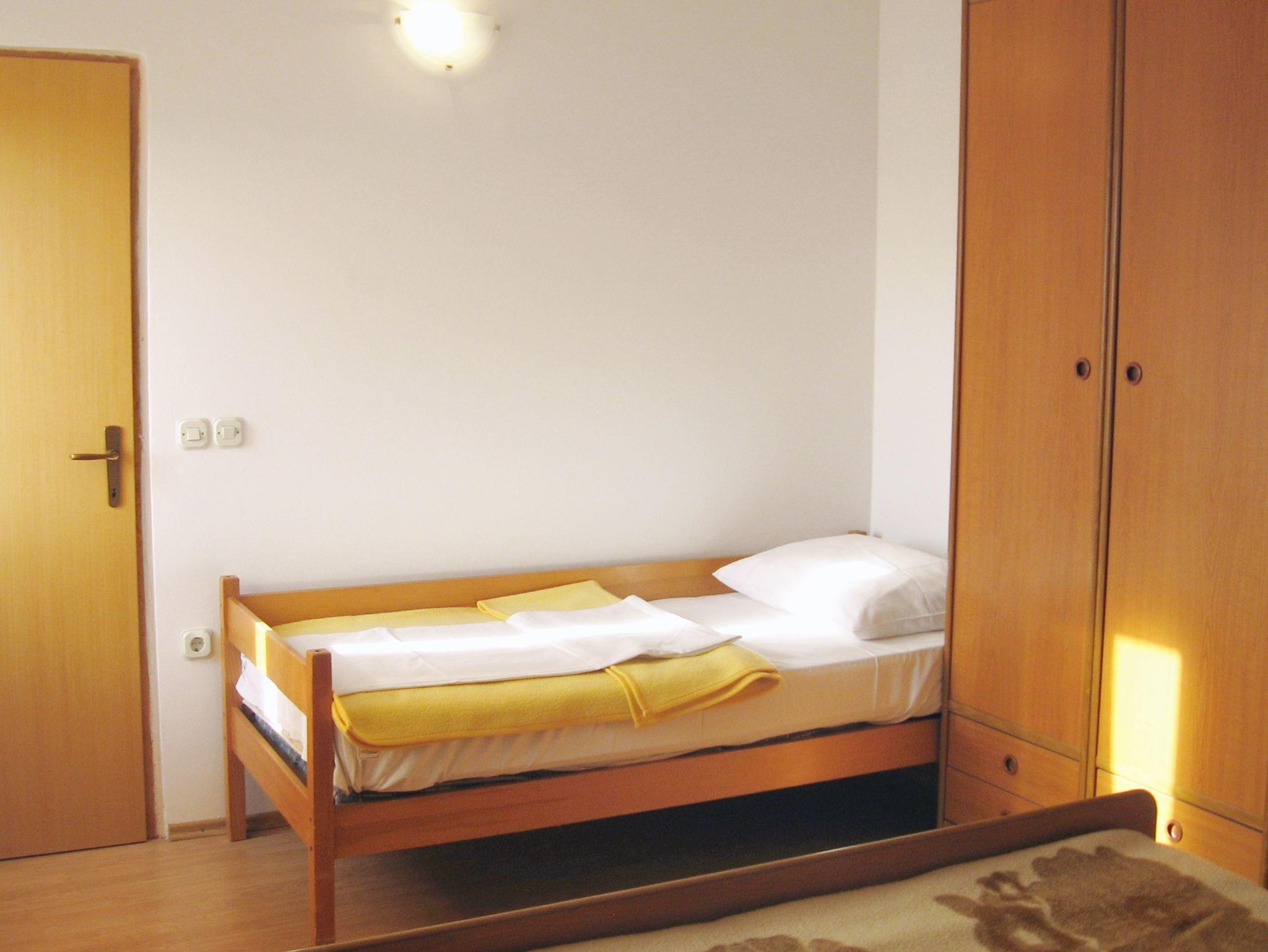 Ferienwohnung bietet Platz für 3 Gäste. Die Betten sind in Schlafzimmern, die es 1 gibt, innerhalb einer Gesamtfläche von 40m2, angeordnet. Die Gäste haben eine eigene Terrasse zur Verfügung, auf der sie in warmen Sommernächten genießen können. Das Apartment bietet Meerblick. Es ist erlaubt, Speisen auf dem Gemeinschafts-Grill vorzubereiten. Während ihres Aufenthalts können Gäste das gemeinsam zur Nutzung stehende Schwimmbad benutzen. IM PREIS INBEGRIFFEN: Kurtaxe, Endreinigung, Pool, Parkplatz, Internet, Föhn, Liegestühle. VERBINDLICHE ZUSÄTZLICHE KOSTEN: Aufzahlung für Kurzaufenthalte (prozentualer Zuschlag pro Nächtigungsanzahl: 30% - 1, 20% - 2, 10% - 3). UNVERBINDLICHE ZUSÄTZLICHE KOSTEN: Klimatisierung (5,00 € pro Nacht), Wäschewaschen (5,00 € Waschen), Bootsanlegeplatz (5,00 € pro Nacht). Die Verfügbarkeit zusätzlicher Dienstleistungen in Ihrem reservierten Termin und die Preise derselben (falls nicht aufgeführt) müssen im Voraus überprüft werden. Zusätzliche Dienstleistungen die in der Zahlungsaufforderung nicht aufgeführt sind werden direkt beim Vermieter bezahlt, angenommen der Gast nutzt auch diese.