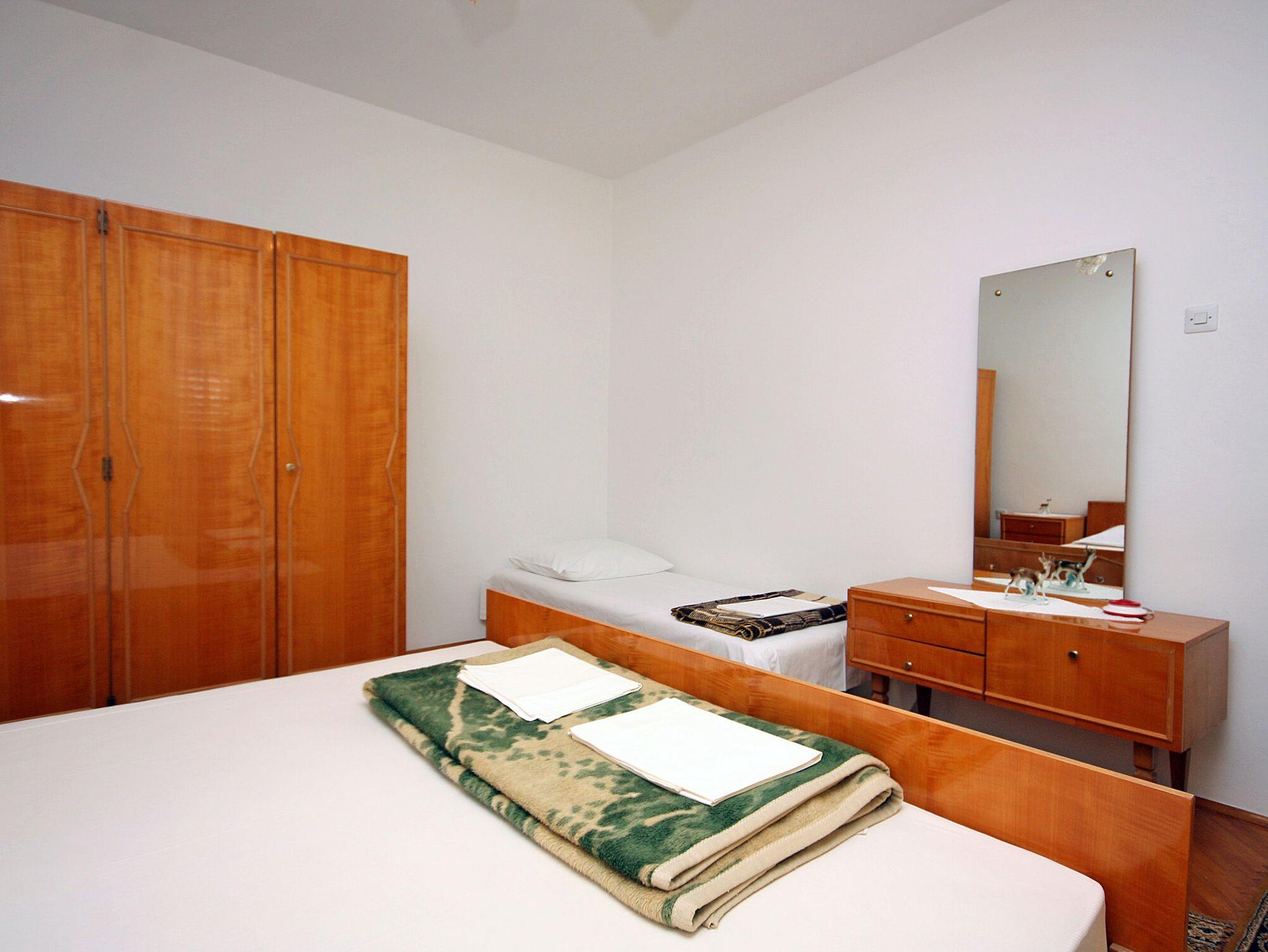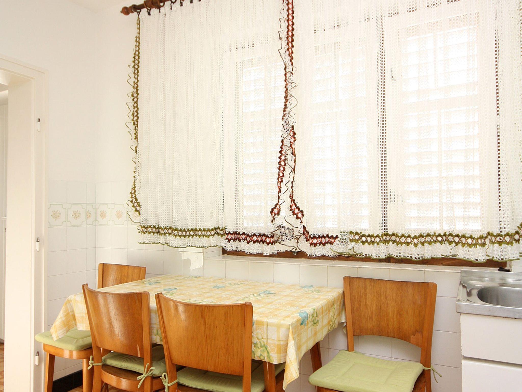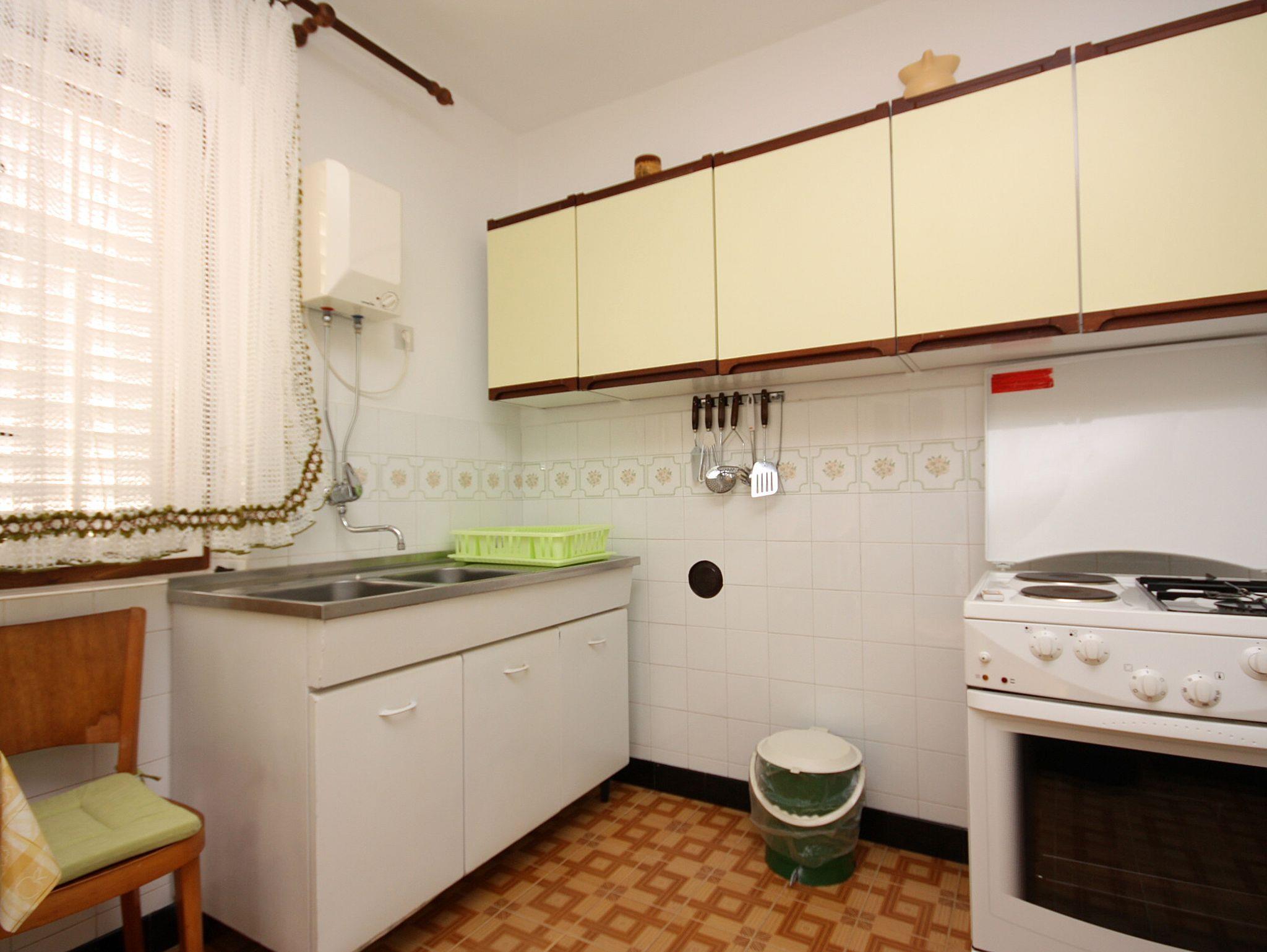 Ferienwohnung bietet Platz für 4 Gäste. Die Betten sind in Schlafzimmern, die es 2 gibt, innerhalb einer Gesamtfläche von 68m2, angeordnet. Die Gäste haben eine eigene Terrasse zur Verfügung, auf der sie in warmen Sommernächten genießen können. Das Apartment bietet Meerblick. Es ist erlaubt, Speisen auf dem Gemeinschafts-Grill vorzubereiten. IM PREIS INBEGRIFFEN: Kurtaxe, Endreinigung, Parkplatz, Internet, Bügeleisen, Föhn, tragbarer Grill. VERBINDLICHE ZUSÄTZLICHE KOSTEN: Aufzahlung für Kurzaufenthalte (prozentualer Zuschlag pro Nächtigungsanzahl: 30% - 1, 20% - 2, 10% - 3). UNVERBINDLICHE ZUSÄTZLICHE KOSTEN: Klimatisierung (1,00 € pro Stunde). Die Verfügbarkeit zusätzlicher Dienstleistungen in Ihrem reservierten Termin und die Preise derselben (falls nicht aufgeführt) müssen im Voraus überprüft werden. Zusätzliche Dienstleistungen die in der Zahlungsaufforderung nicht aufgeführt sind werden direkt beim Vermieter bezahlt, angenommen der Gast nutzt auch diese.
